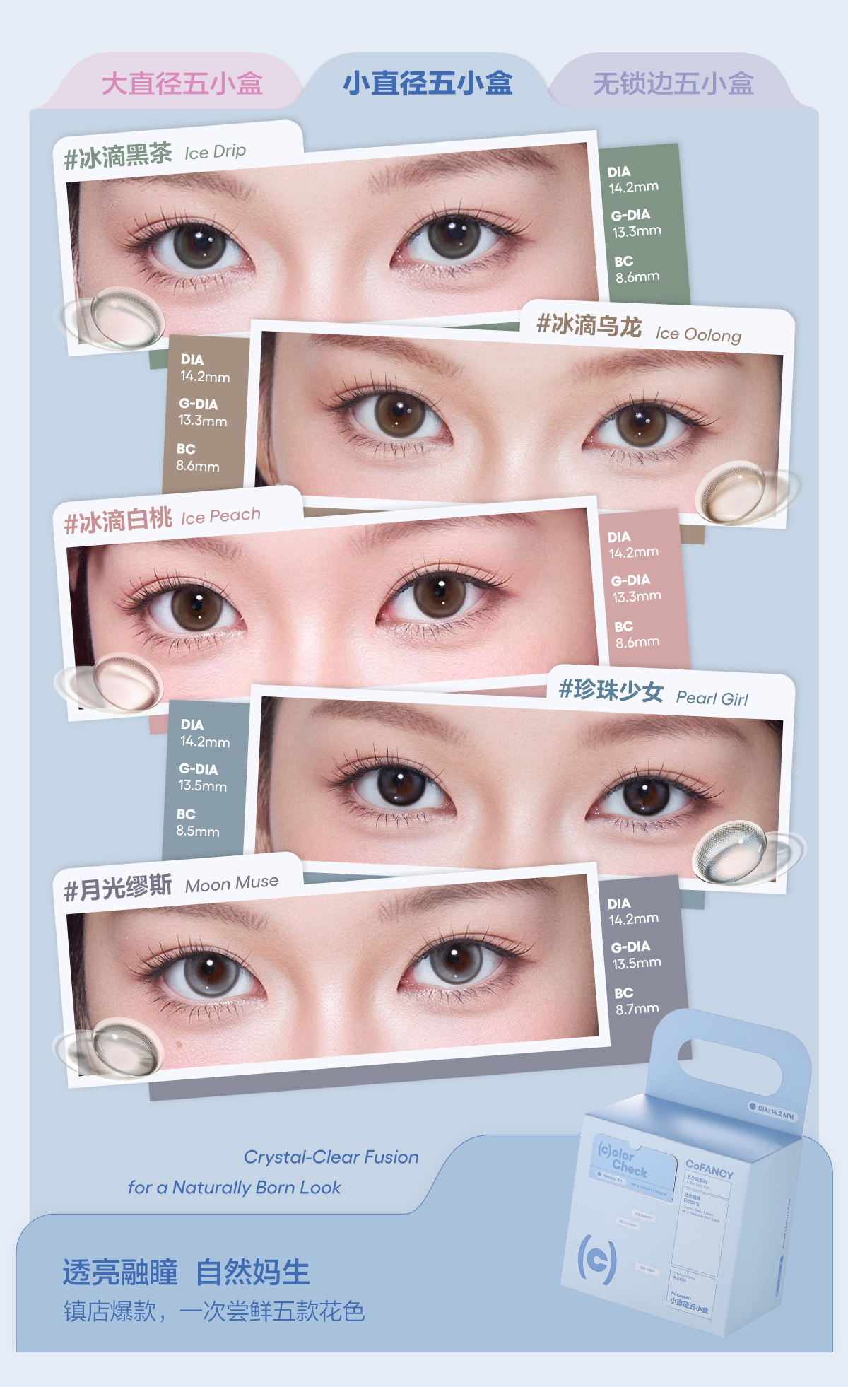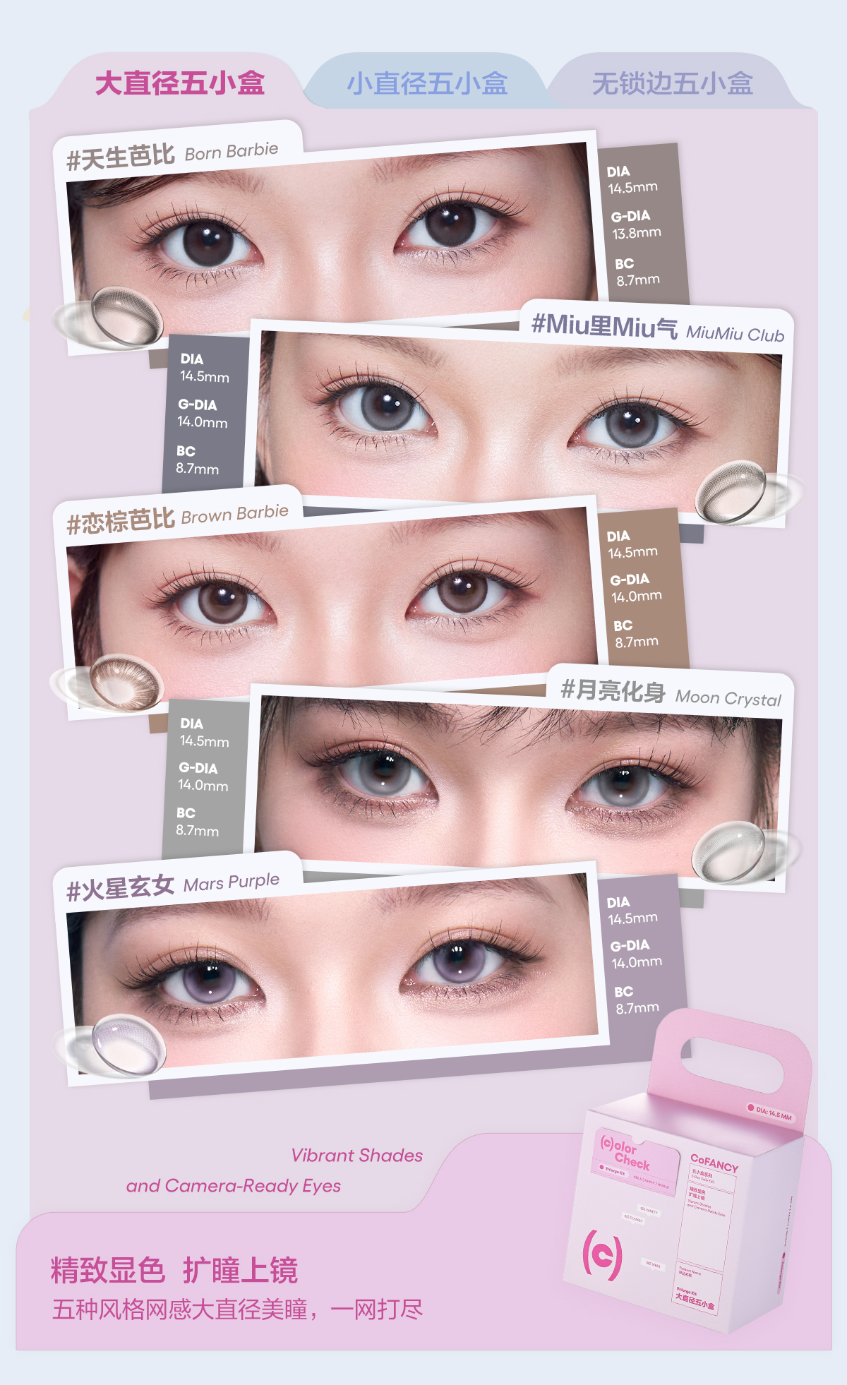 【一盒五色日抛】COFANCY可糖五小盒美瞳高光日抛联名芭比大直径10片隐形眼镜【下单即赠美瞳佩戴器】