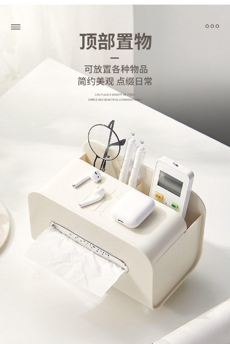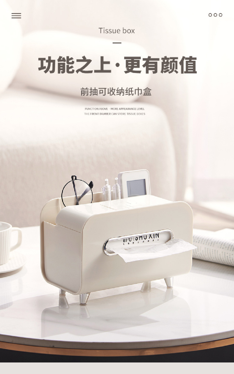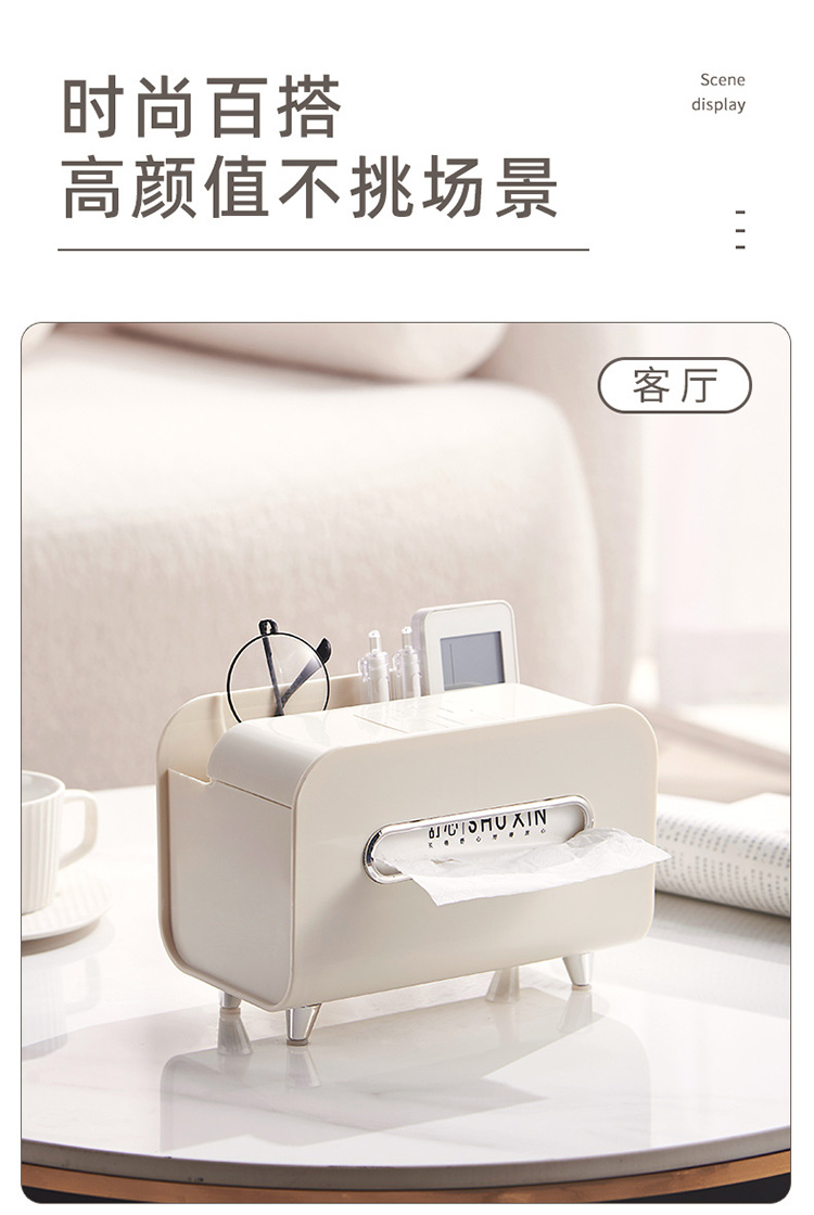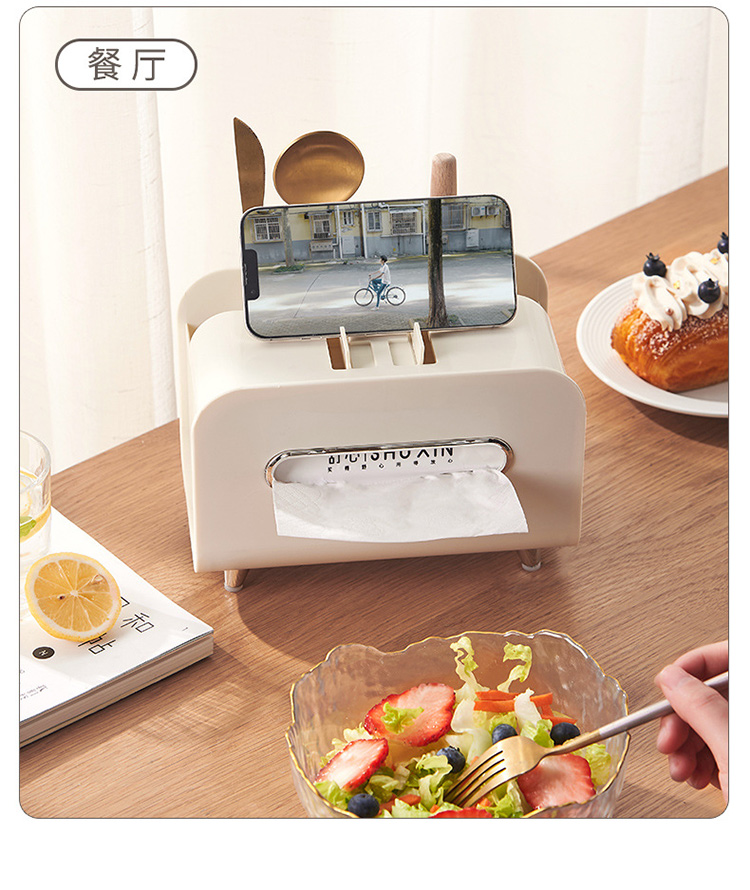 【奶油风纸巾盒】桌面轻奢风收纳盒抽纸盒 家用客厅茶几多功能遥控器手机支架