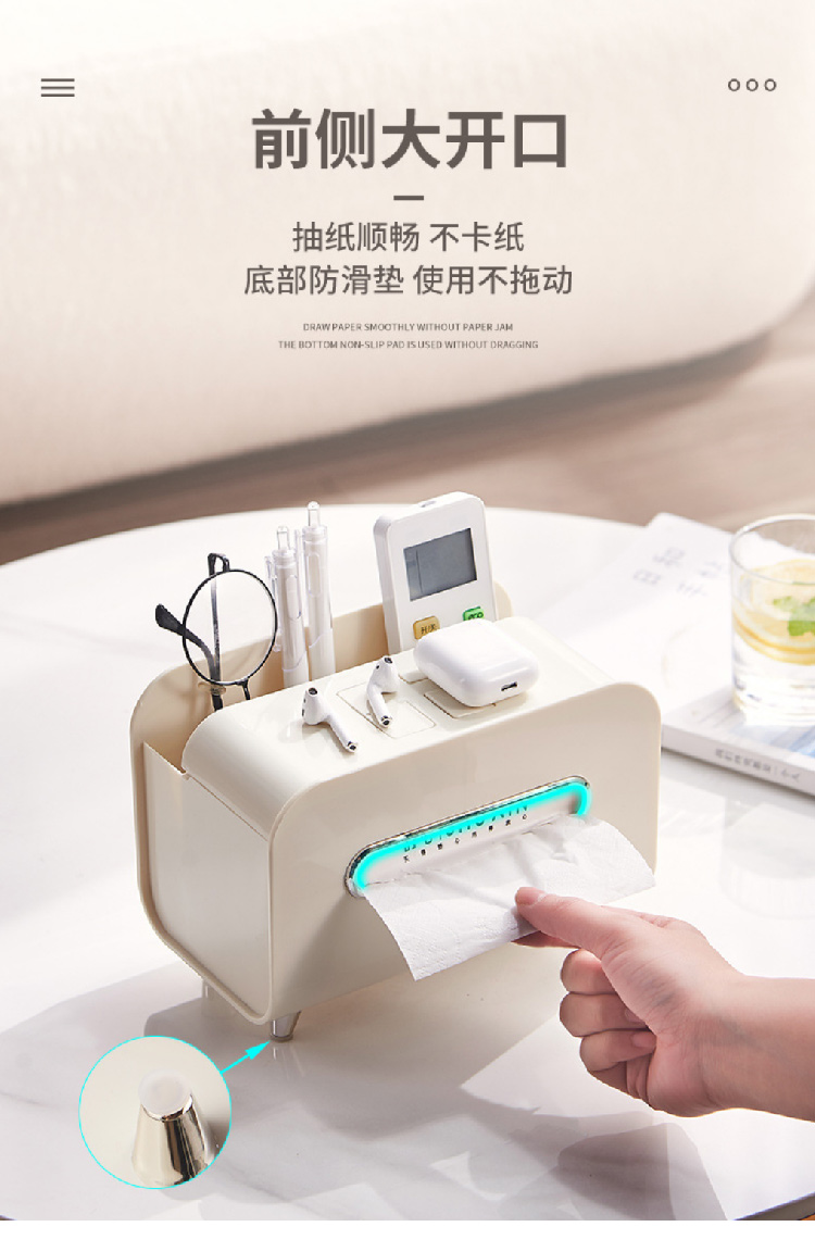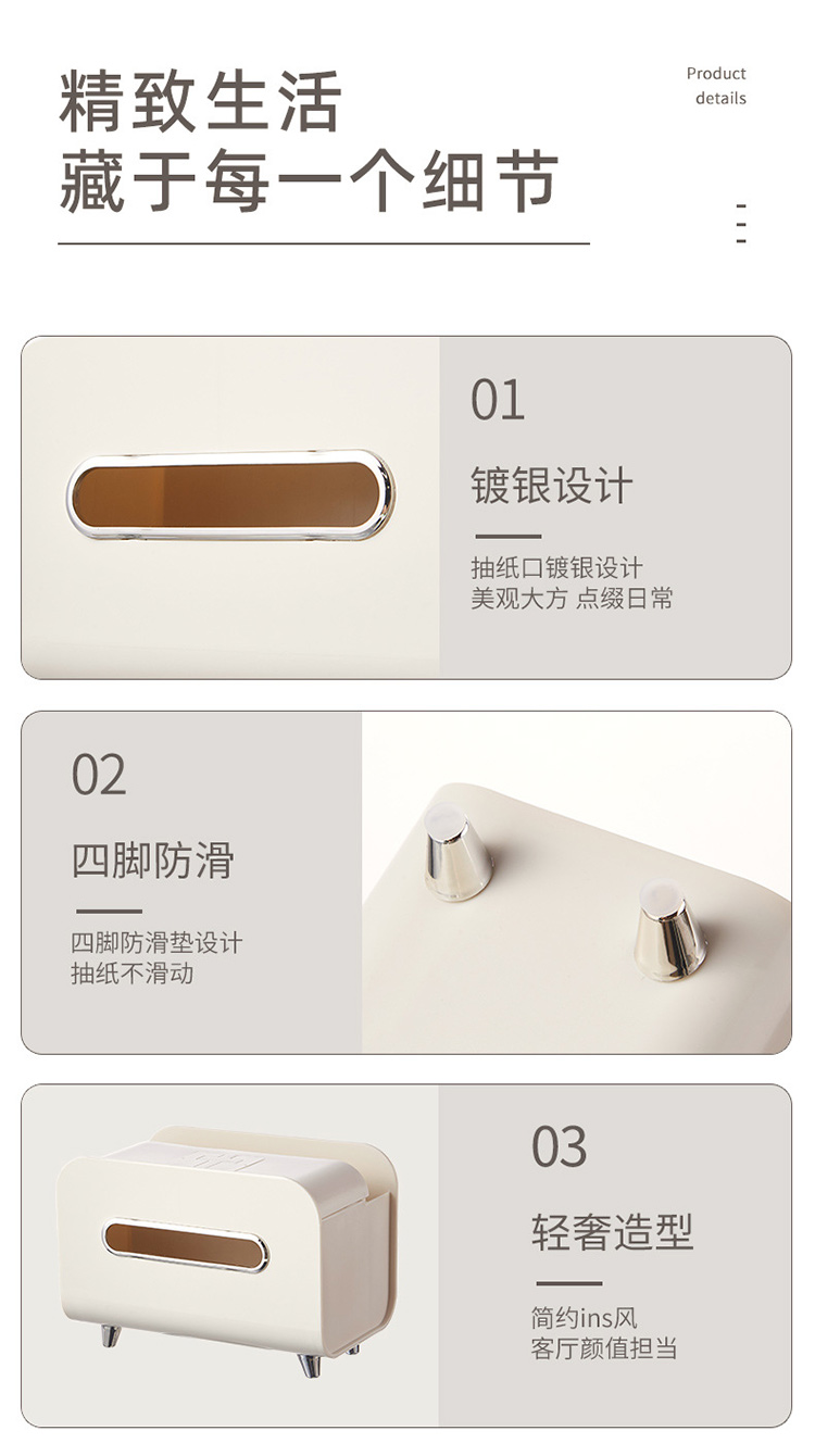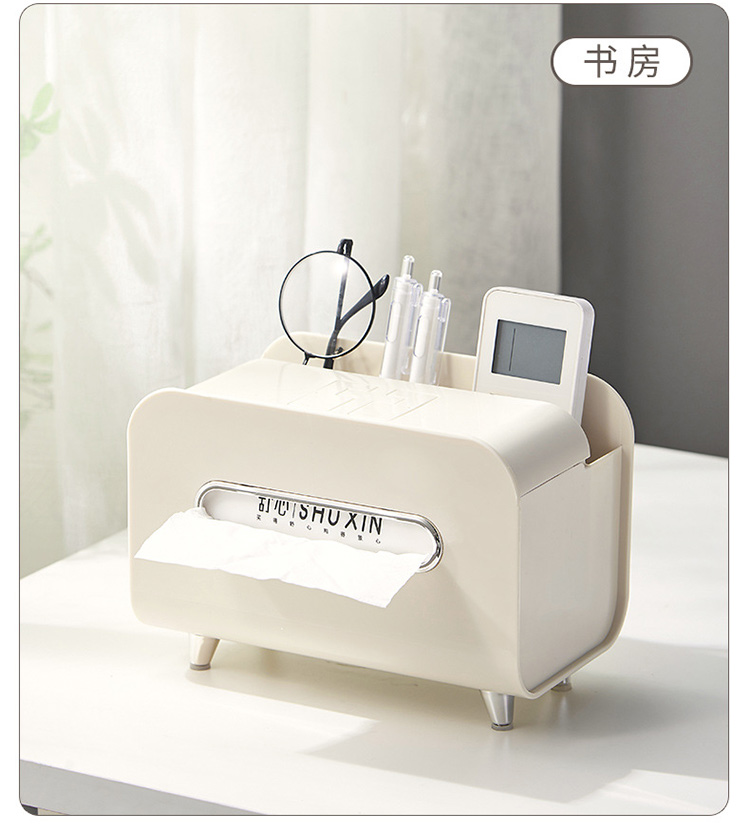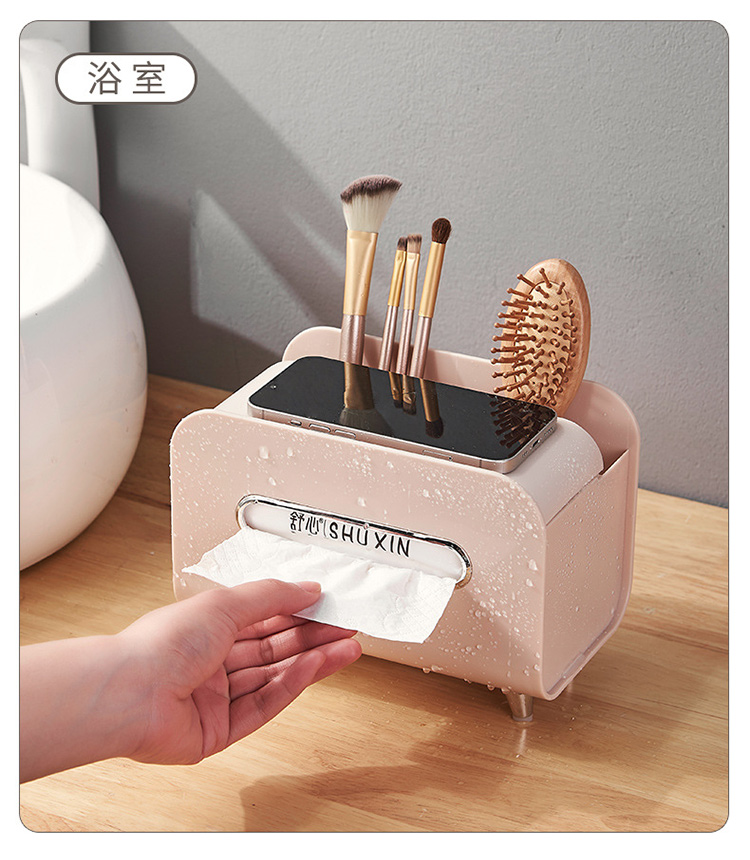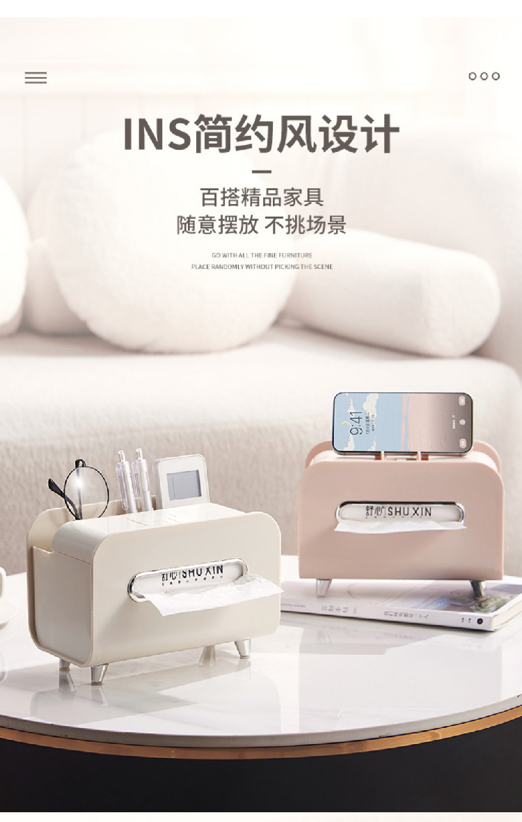 【奶油风纸巾盒】桌面轻奢风收纳盒抽纸盒 家用客厅茶几多功能遥控器手机支架