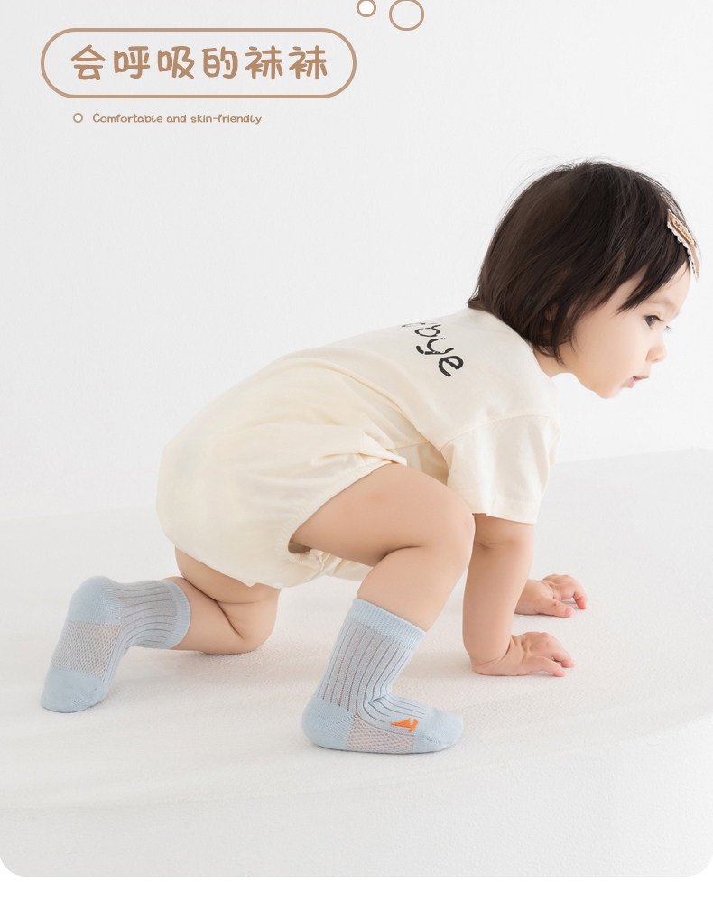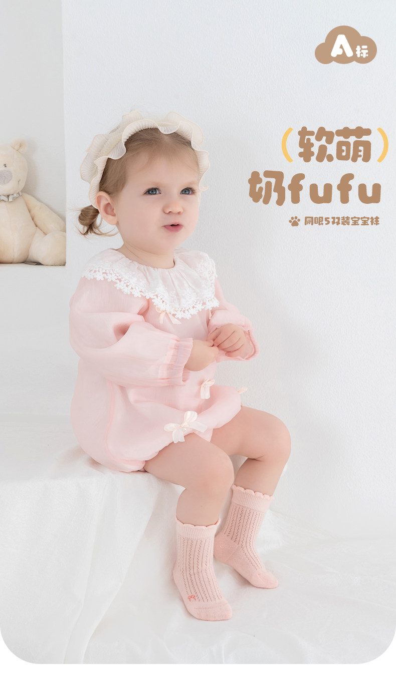 宝宝袜子春夏季薄款纯棉婴儿女宝一岁儿童a类夏天网眼不勒腿中筒