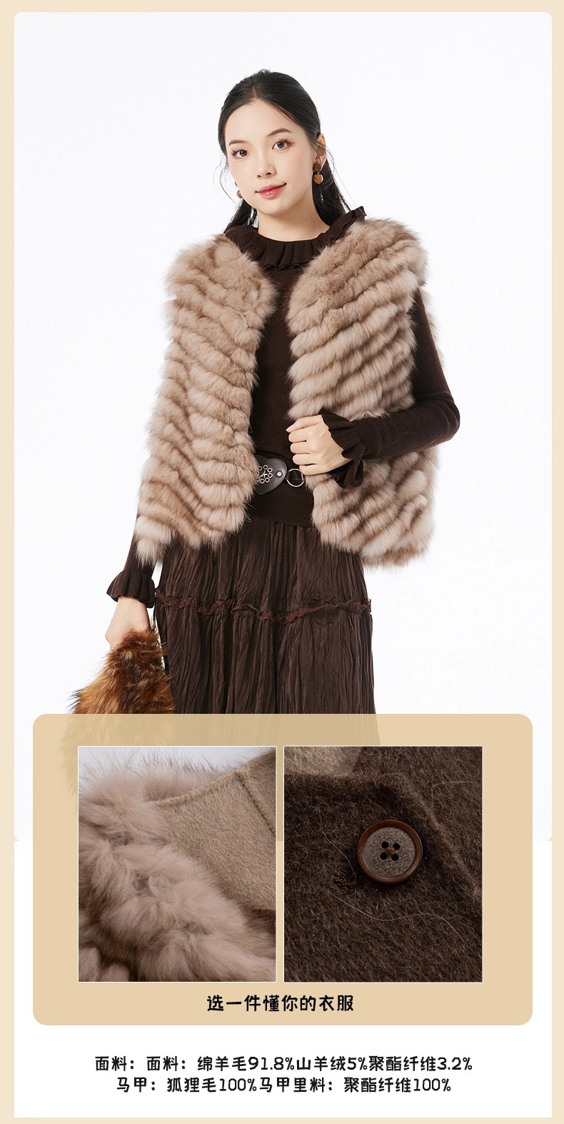 【门店同款】ENJOY冬季“暖冬知性”浮翠流光狐狸毛马甲大衣 167144559