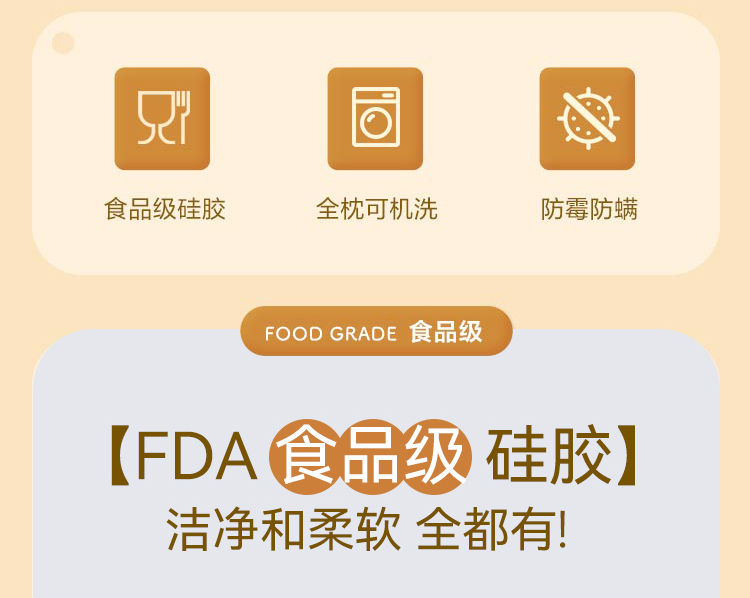 【品牌直发】加倍生活 A类防螨防霉可清洗儿童硅胶枕 新款枕头枕芯 食品级硅胶 全枕可机洗可晾晒