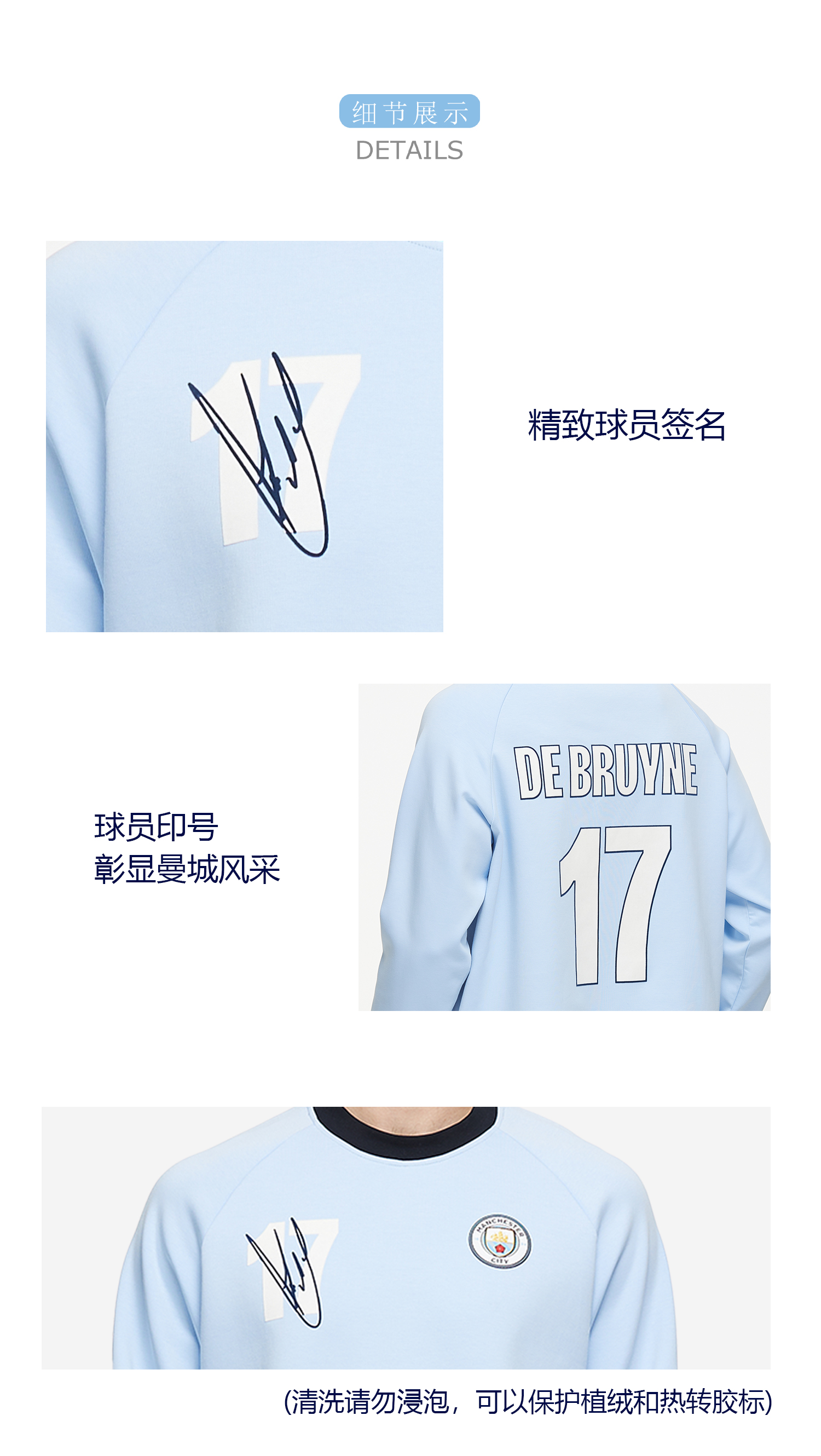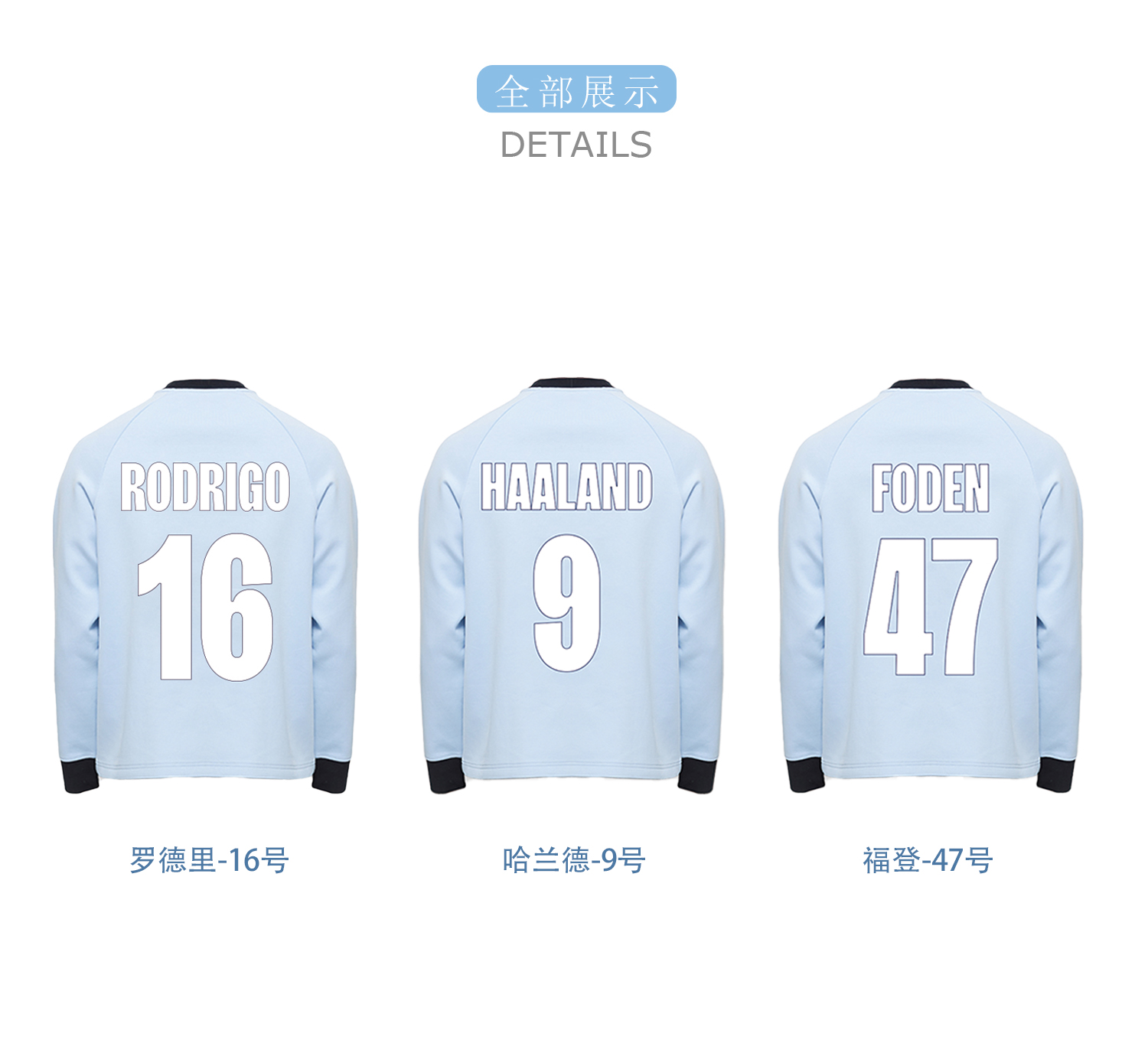 【官方正版】曼城俱乐部 | 蓝色圆领卫衣球员印号印签哈兰德