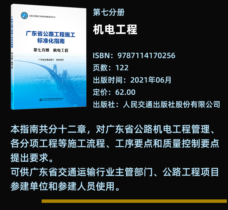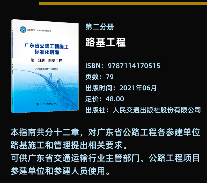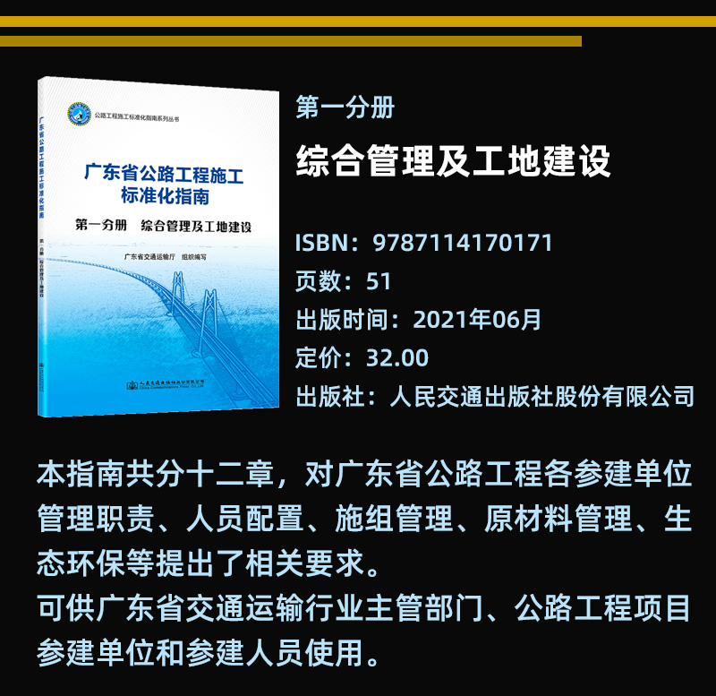 书名:2021新书 广东省公路工程施工标准化指南 全7册套装 广东省交通运输厅