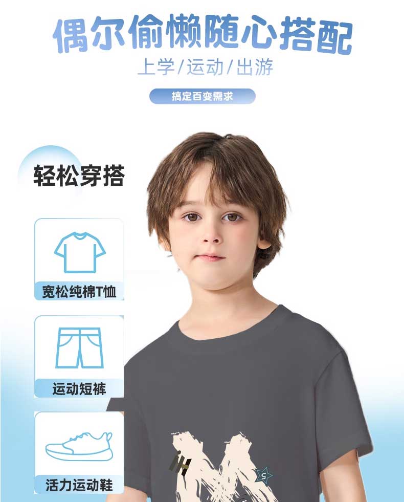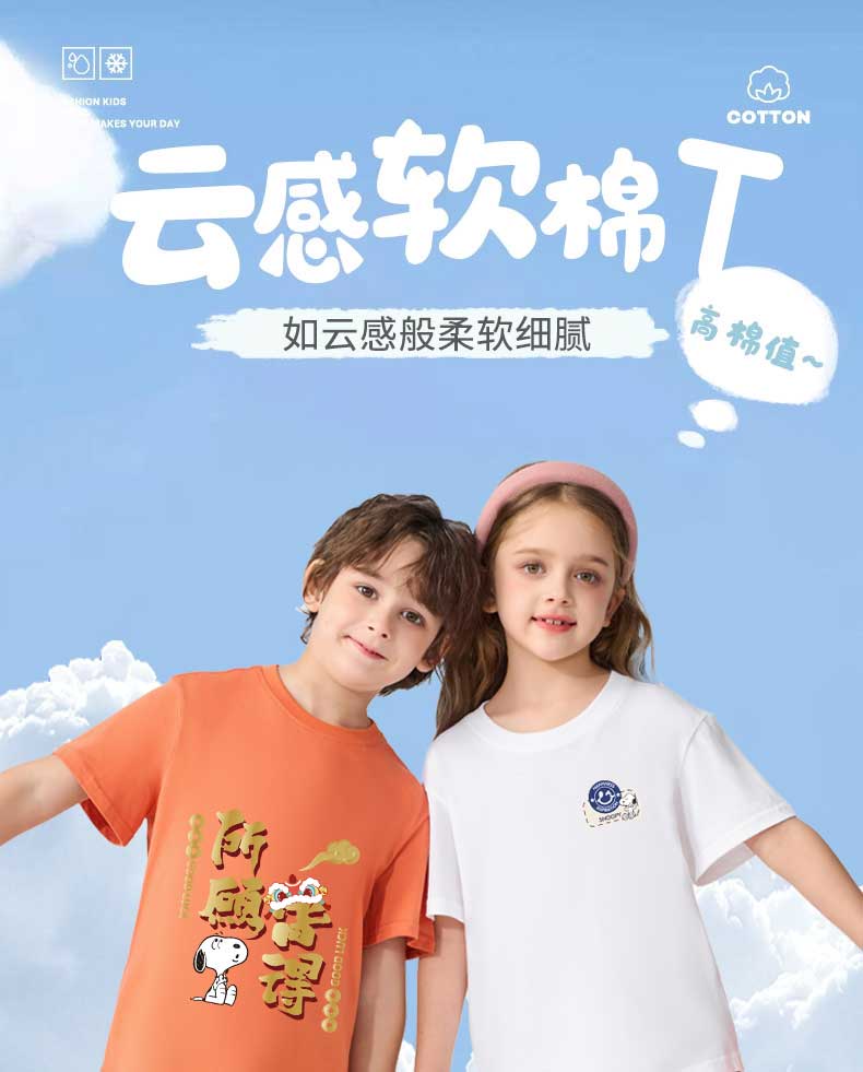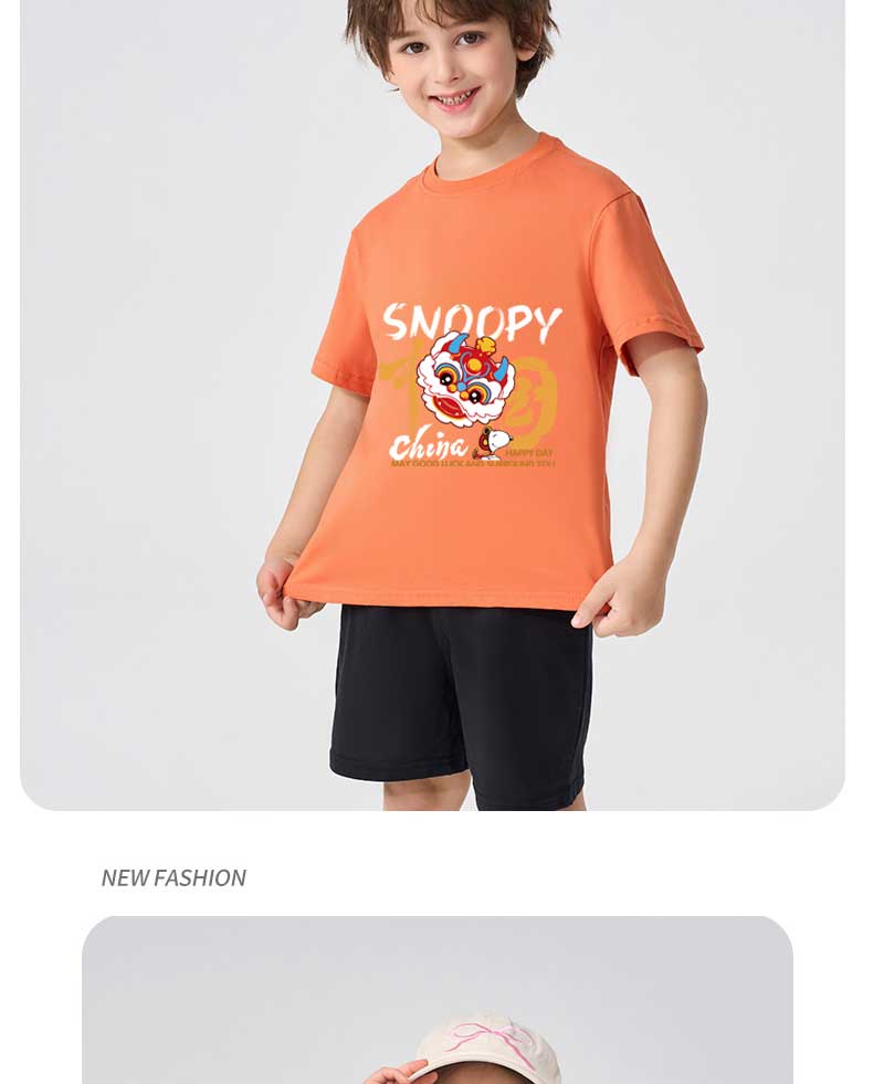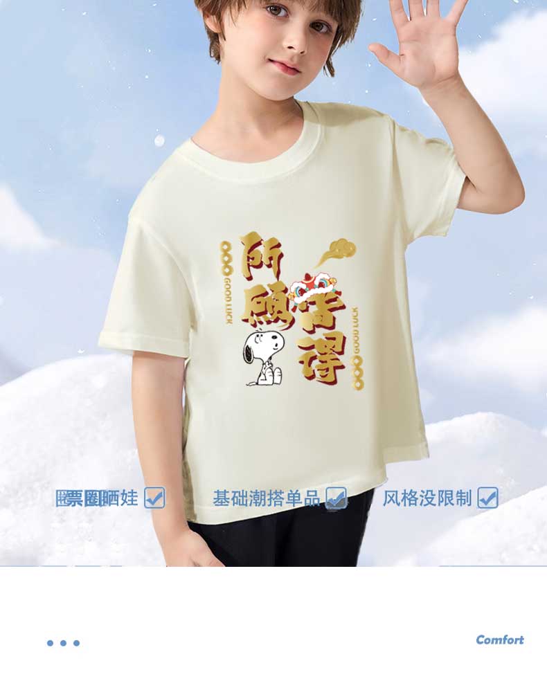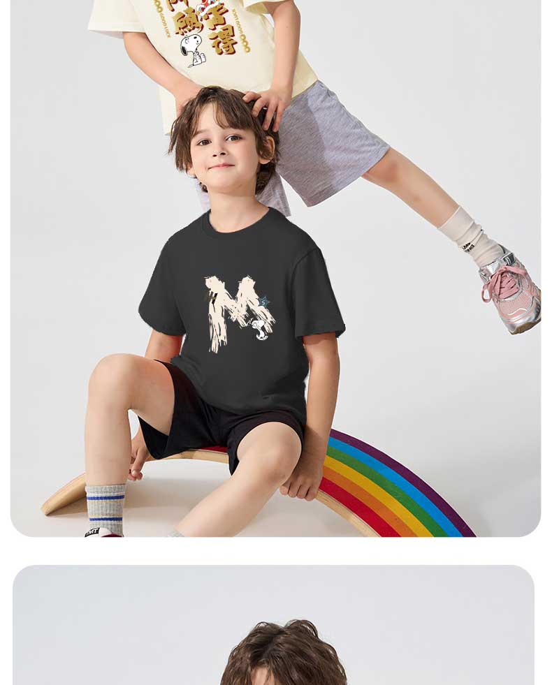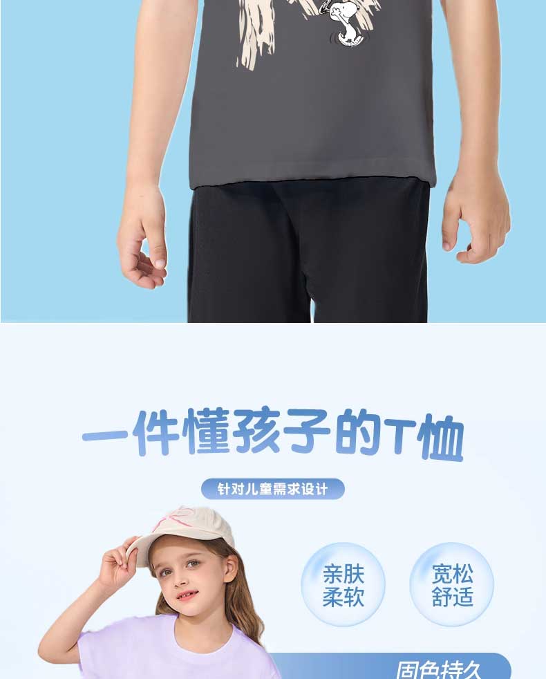 史努比2025儿童纯棉夏季时尚休闲宽松男童女童圆领中大童短袖T恤