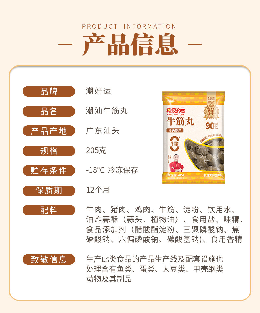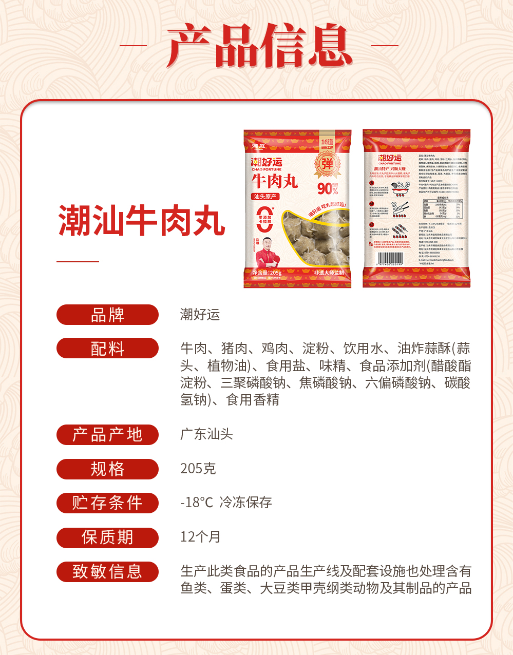 【规格】潮好运牛肉丸205g*4+潮好运牛筋丸205g*4(3.2斤)+8包调料