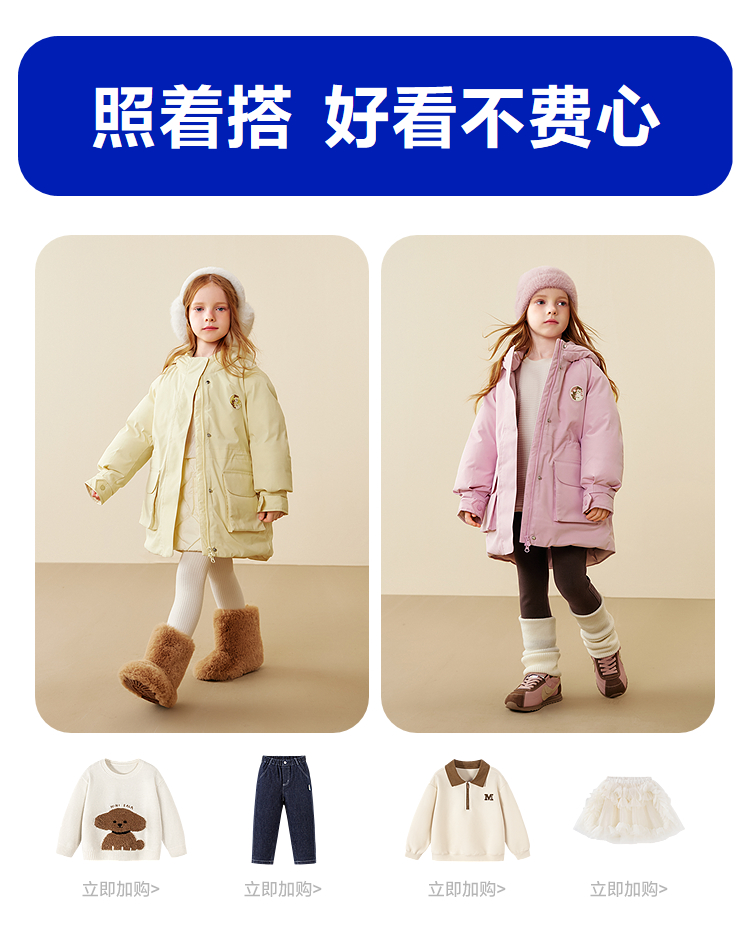 [真心绒]迷你巴拉女童羽绒服保暖防风儿童加长蓄热里布外套2025冬