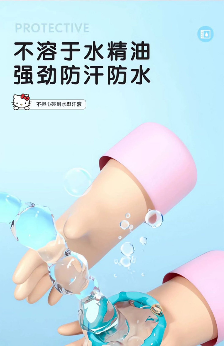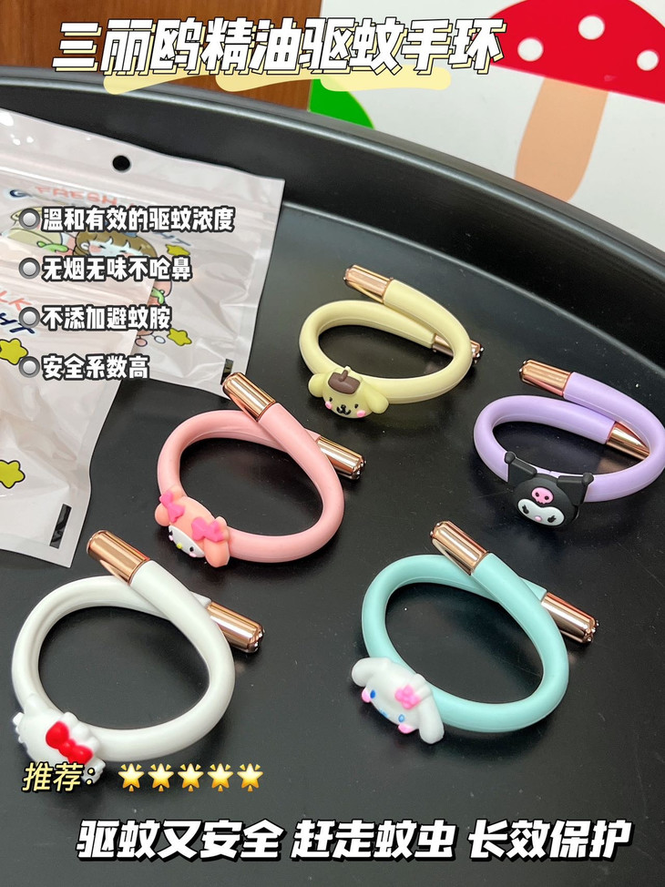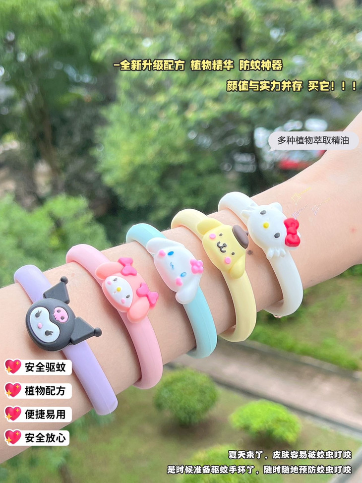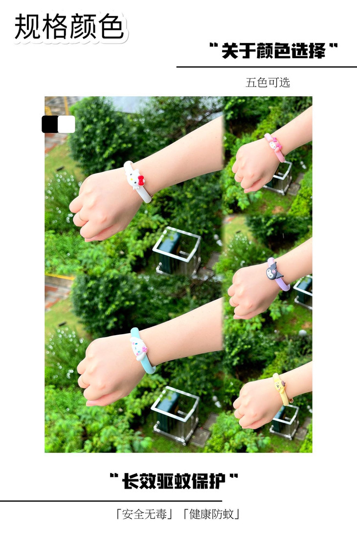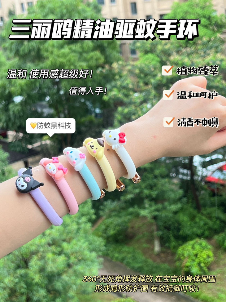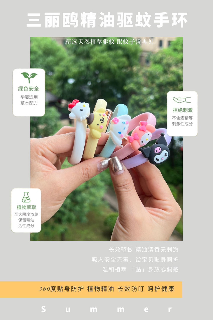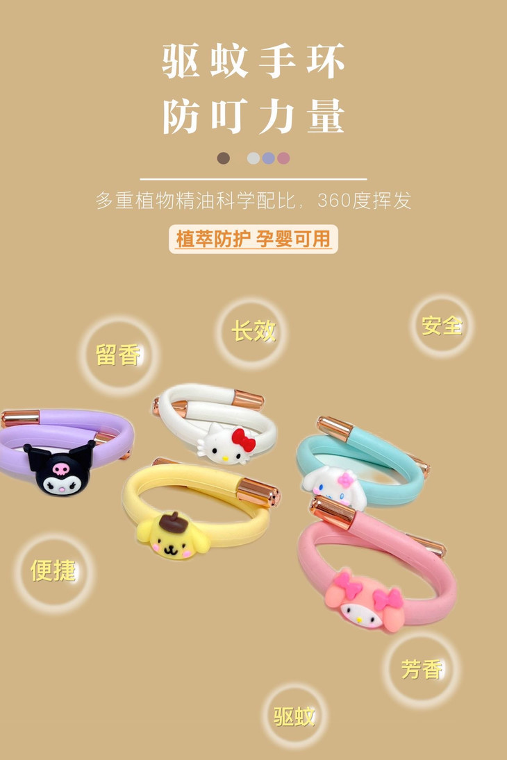 三丽鸥精油驱蚊手环 防叮更健康 纯植物提取不含避蚊胺 所提取各种植物精粹均对人体无害 真正的健康防叮