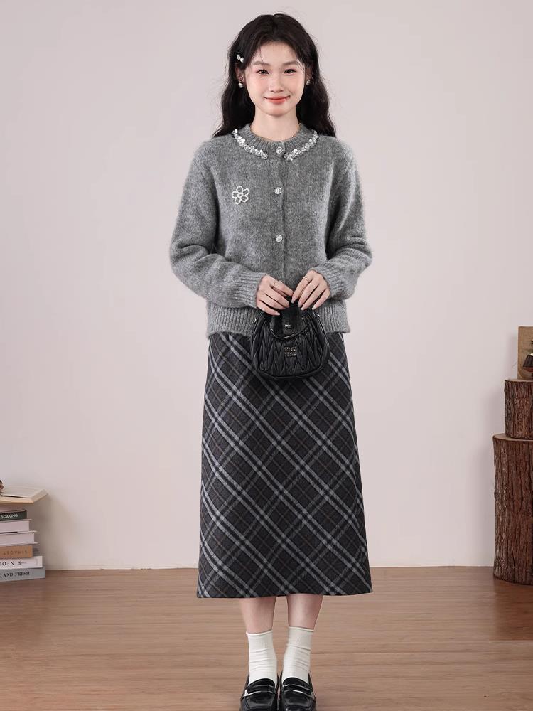日常通勤可以搭格纹半裙一起穿