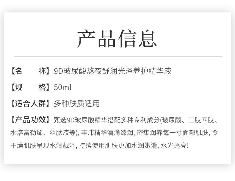 9D玻尿酸熬夜舒润补水保湿精华液 面部护理大容量原液护肤品批发