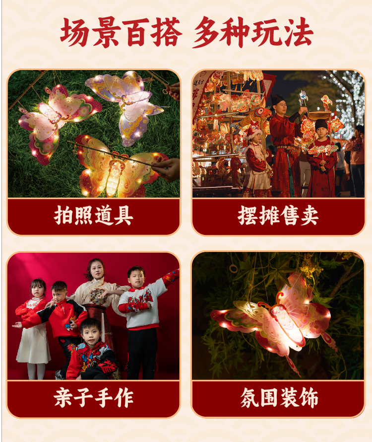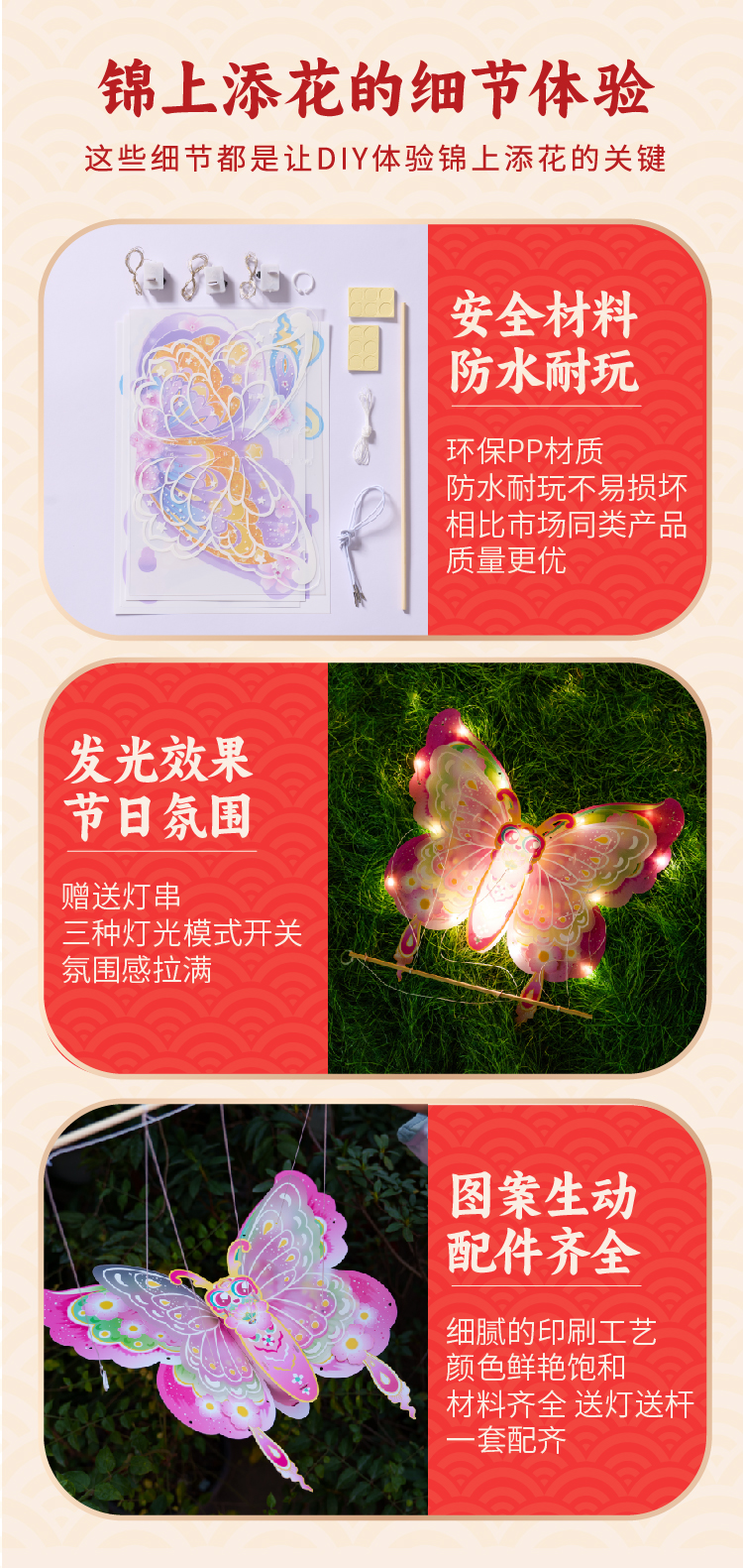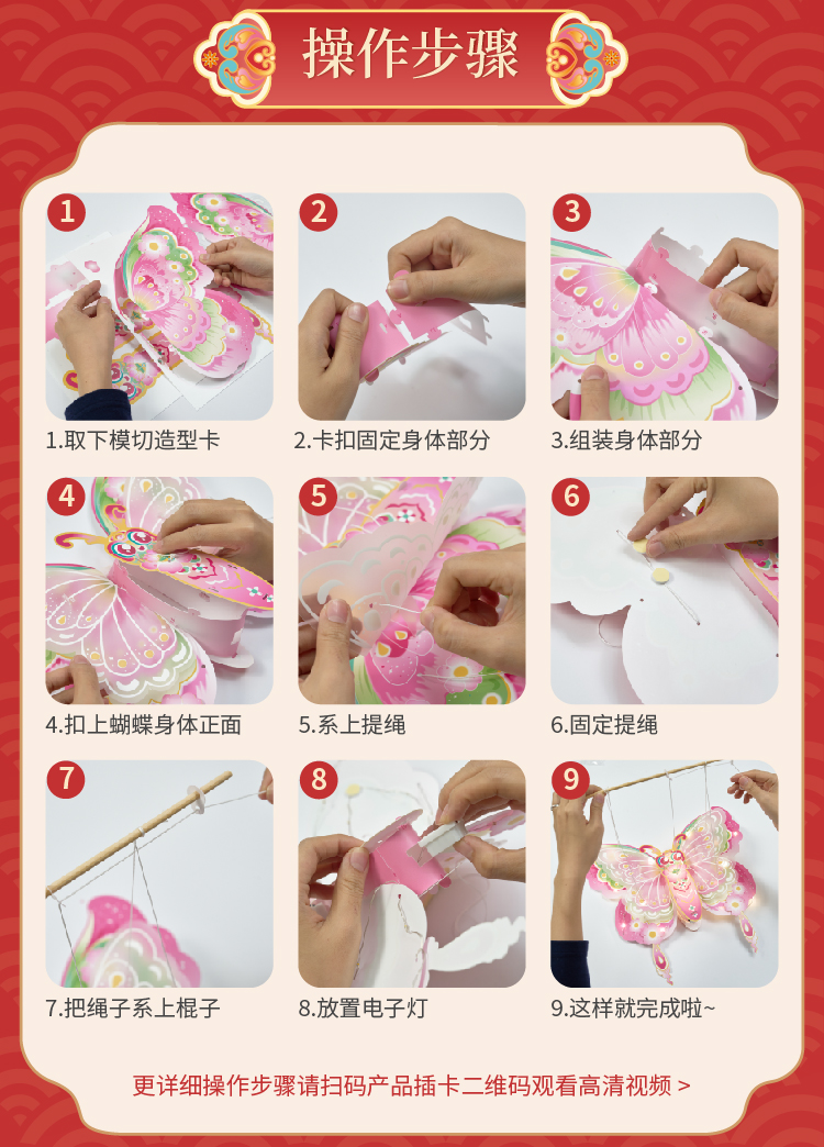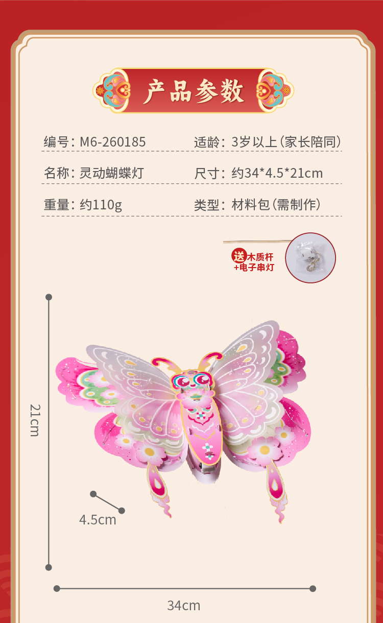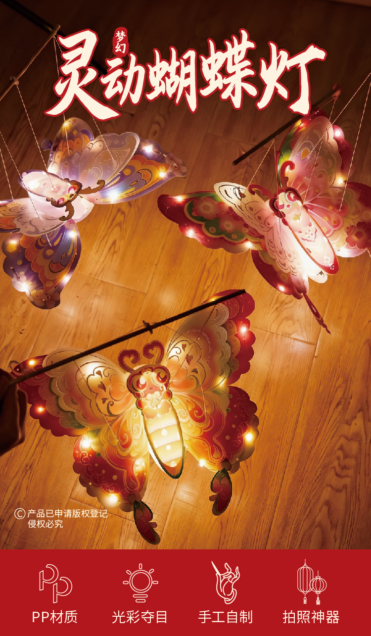户外春天灵动蝴蝶灯笼手工diy儿童制作材料包幼儿园花灯拍照神器