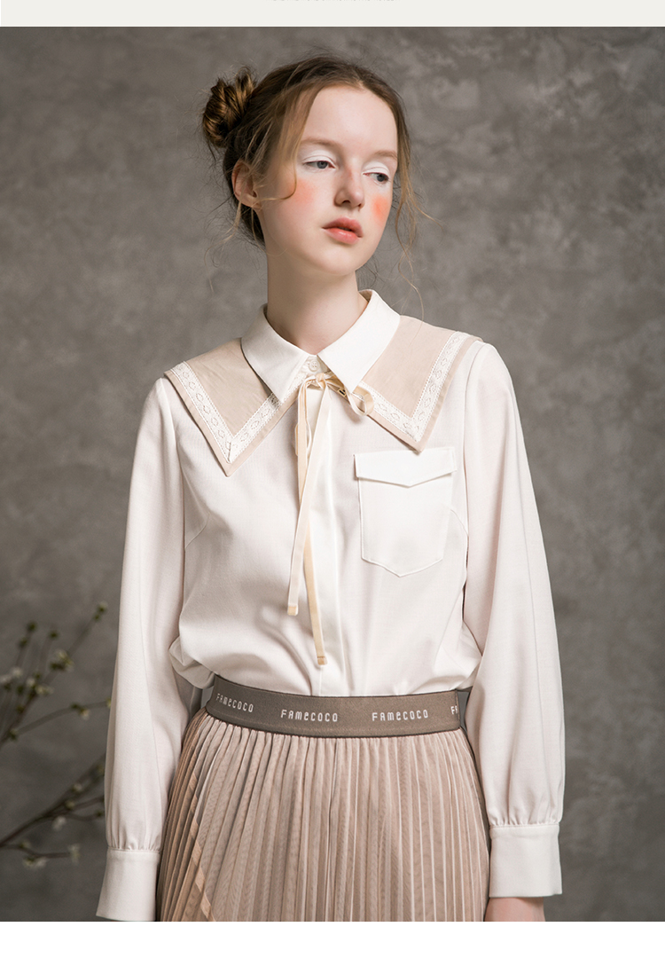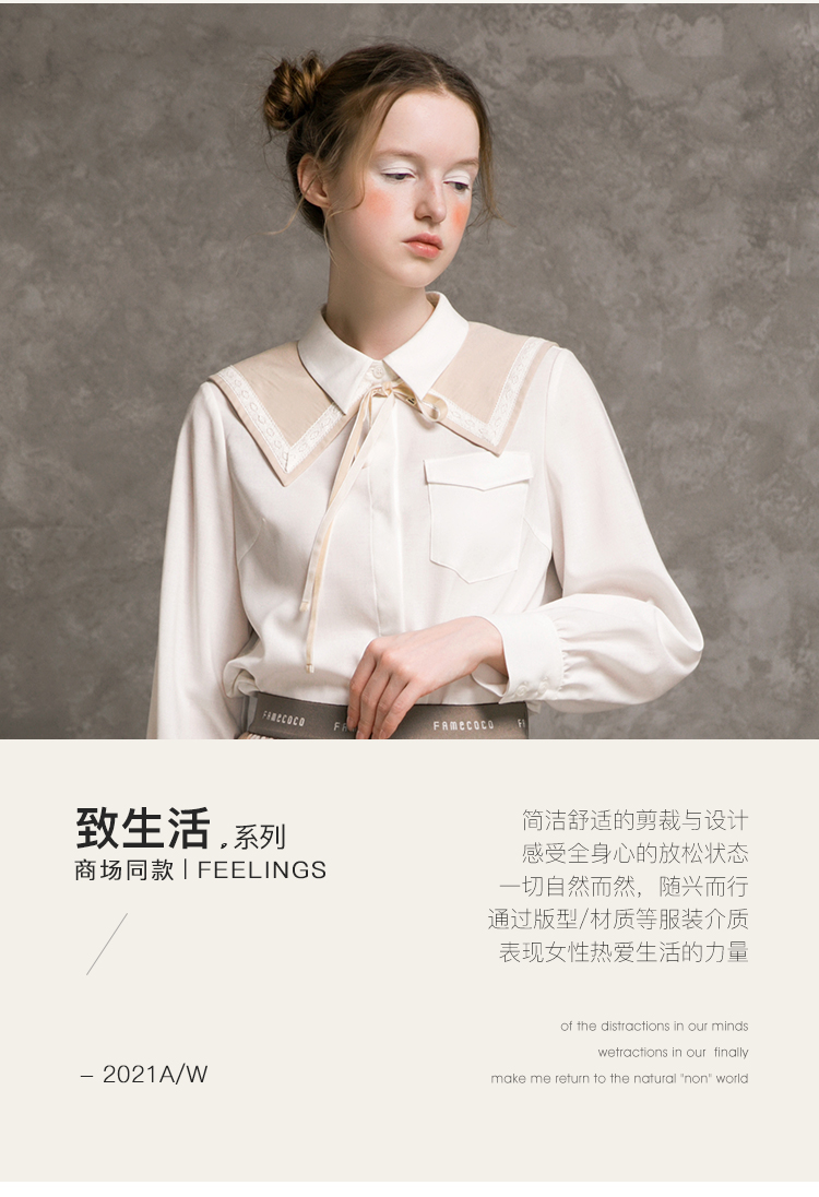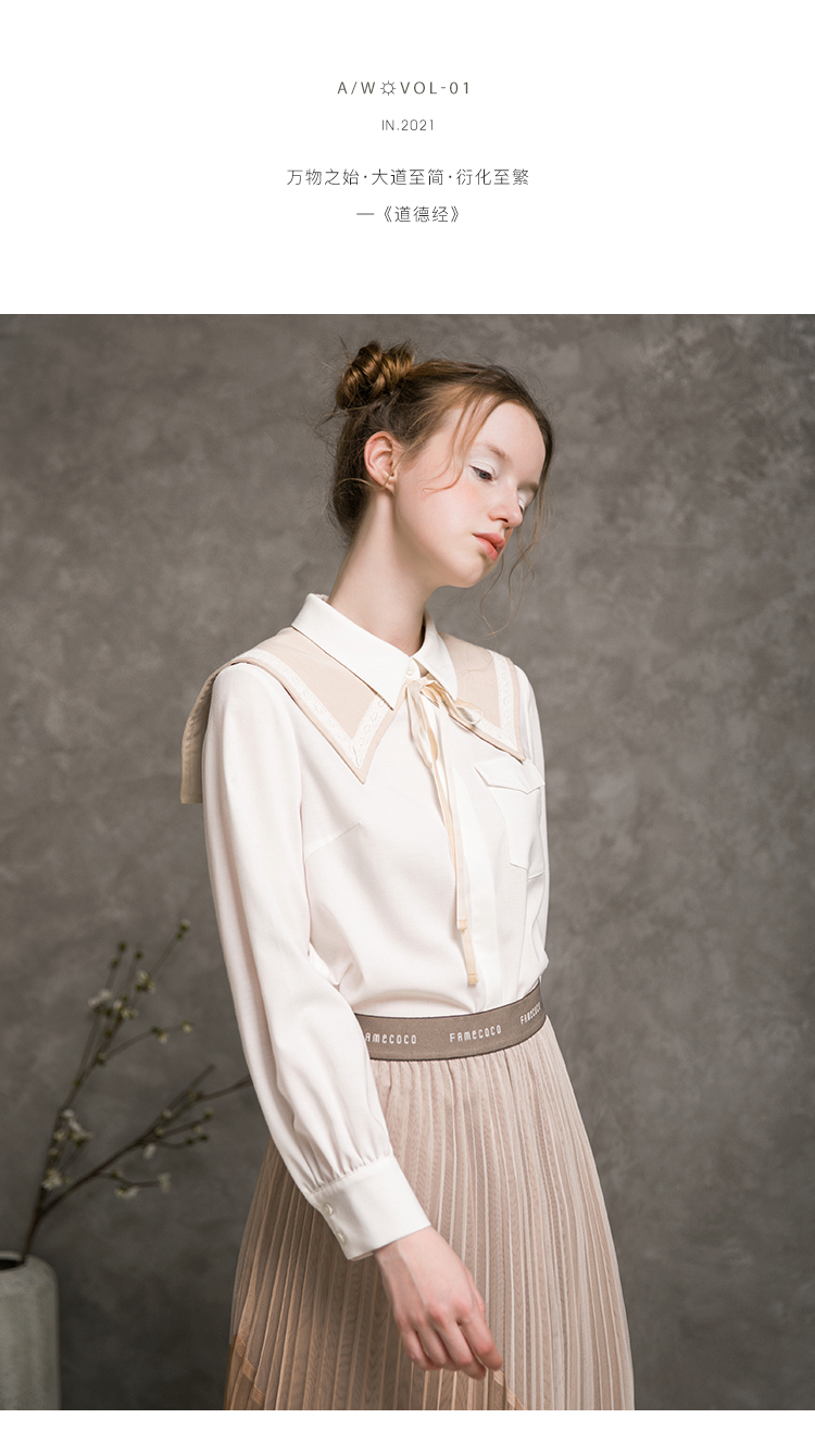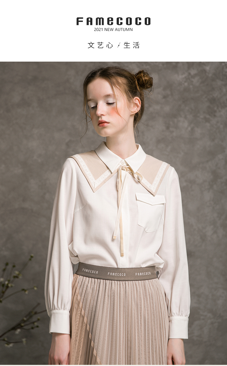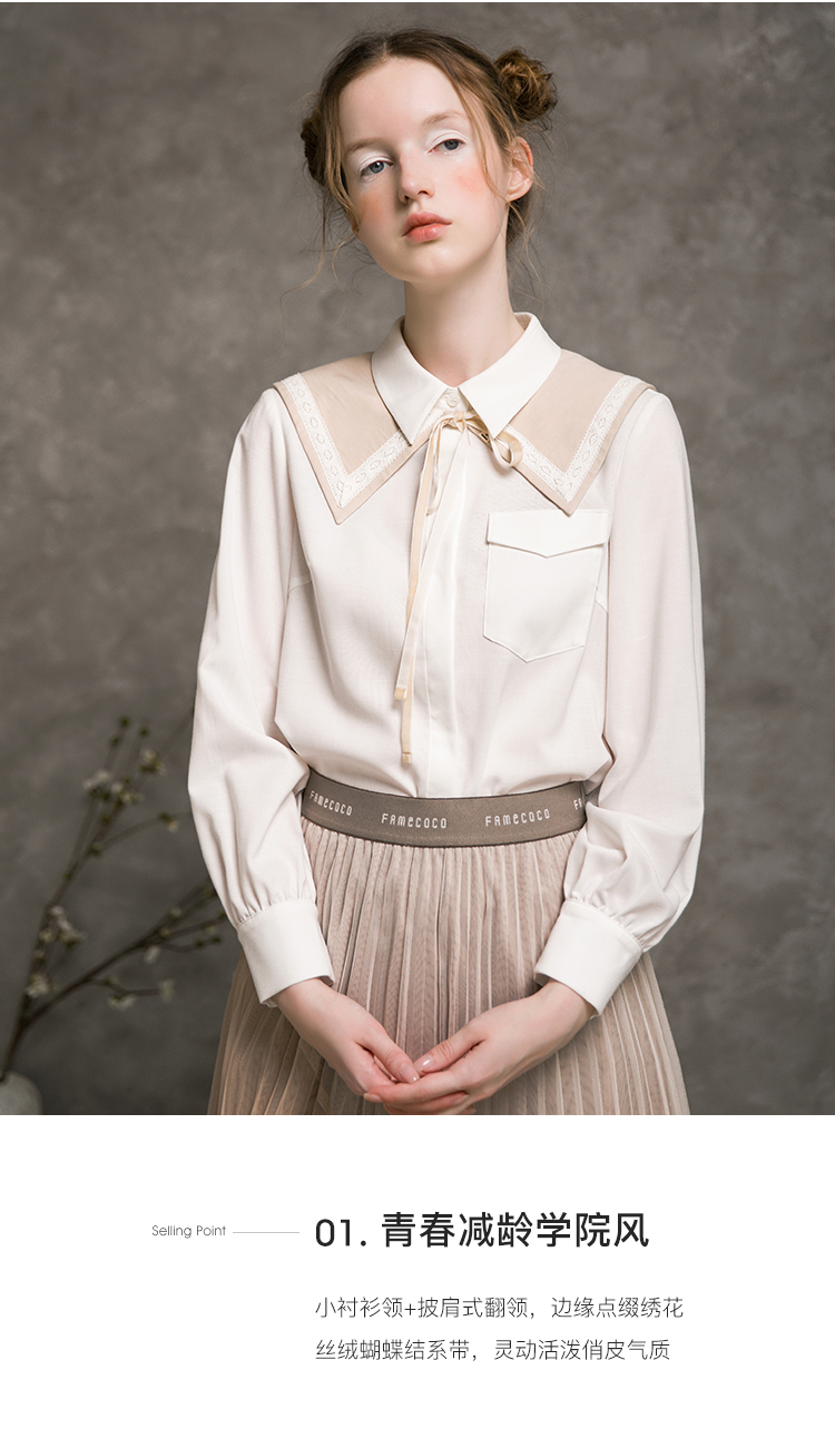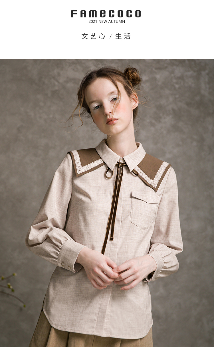 famecoco范可儿女士衬衫秋季文艺绣花百搭开衫衬衣F216BH006