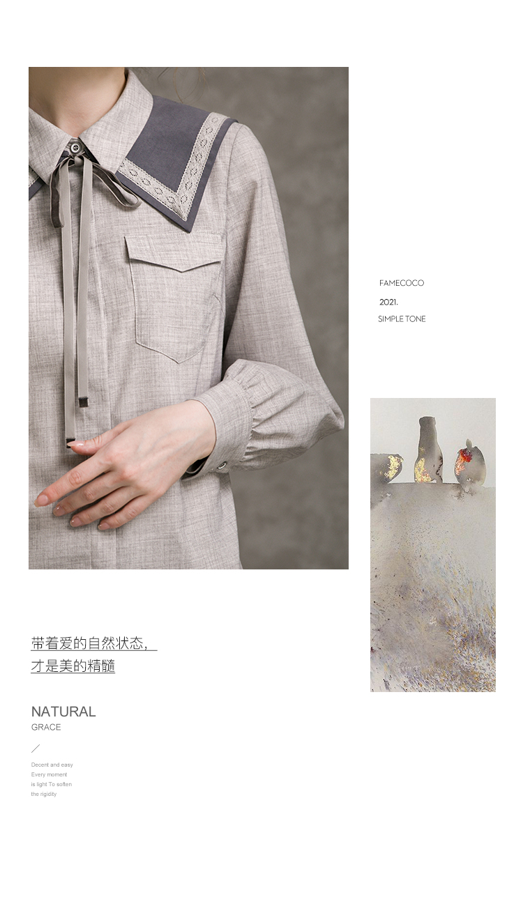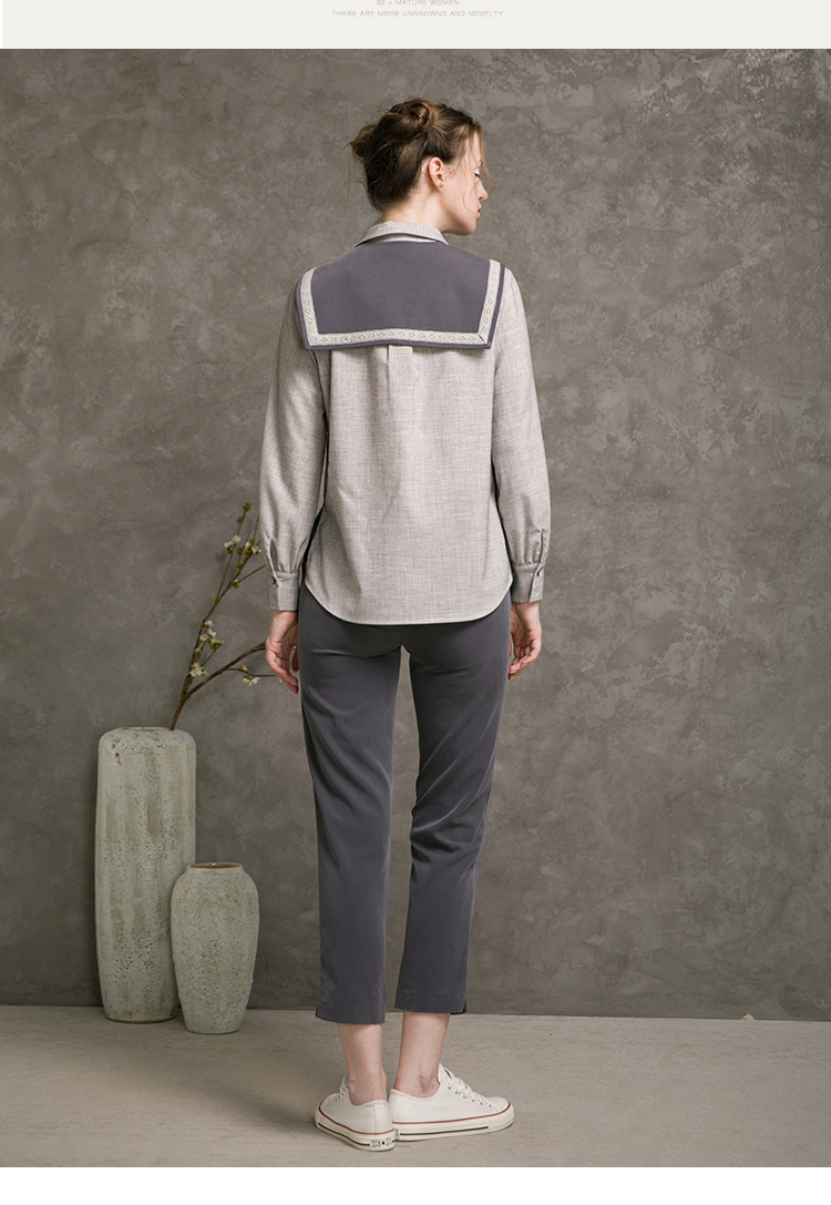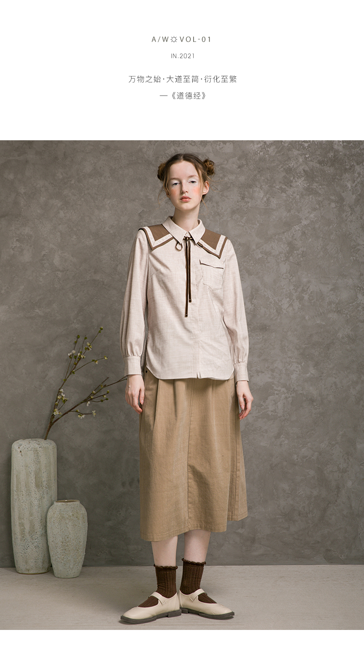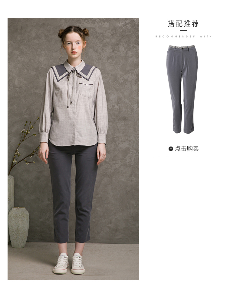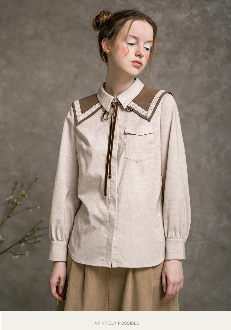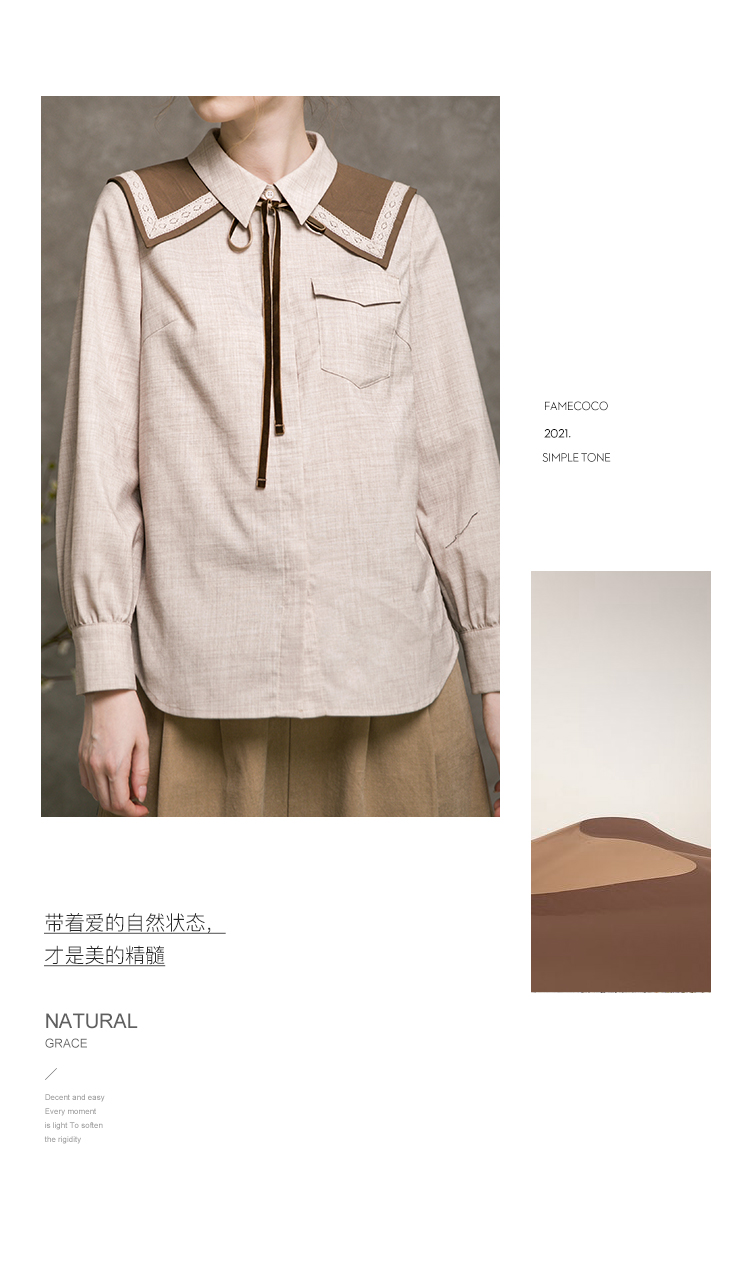 famecoco范可儿女士衬衫秋季文艺绣花百搭开衫衬衣F216BH006