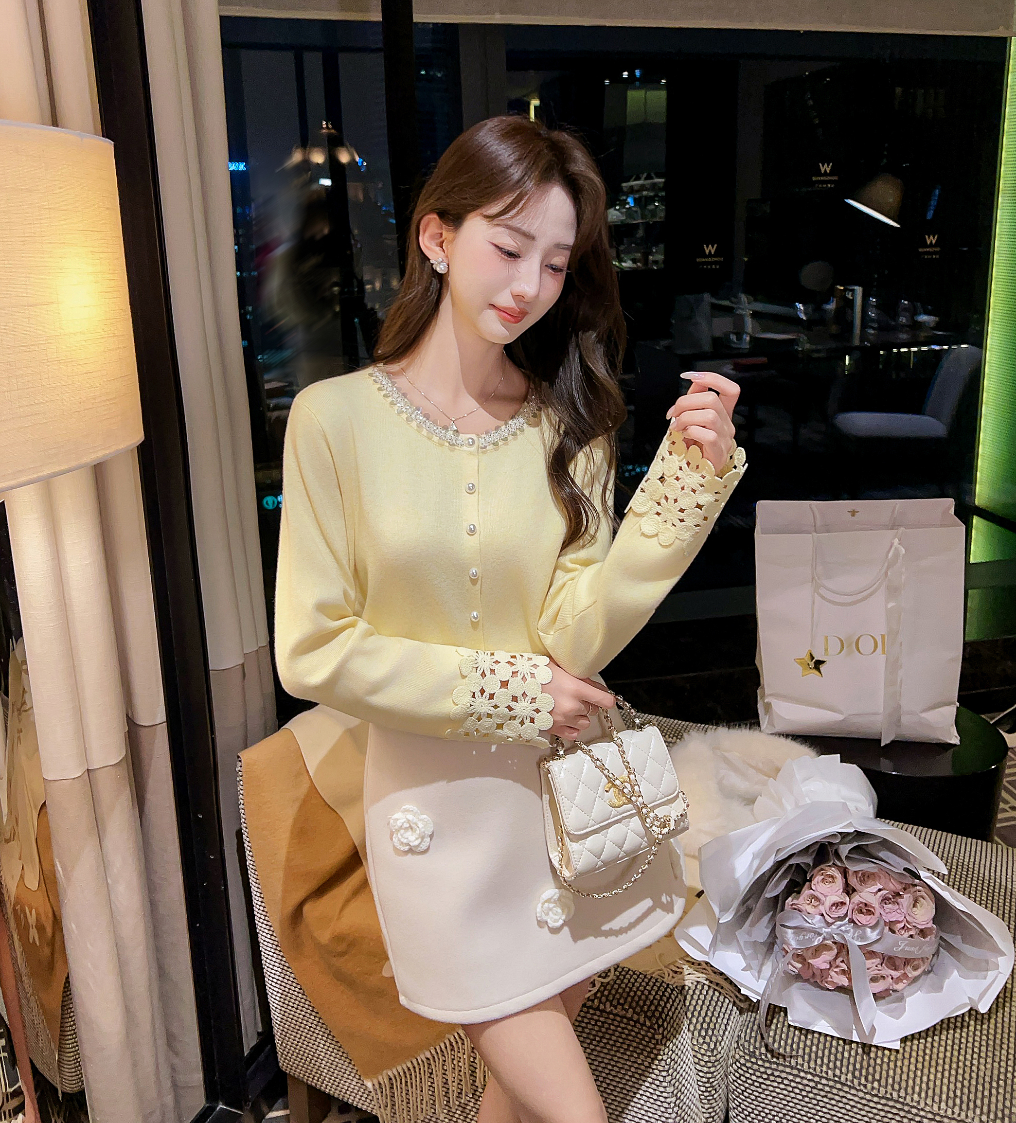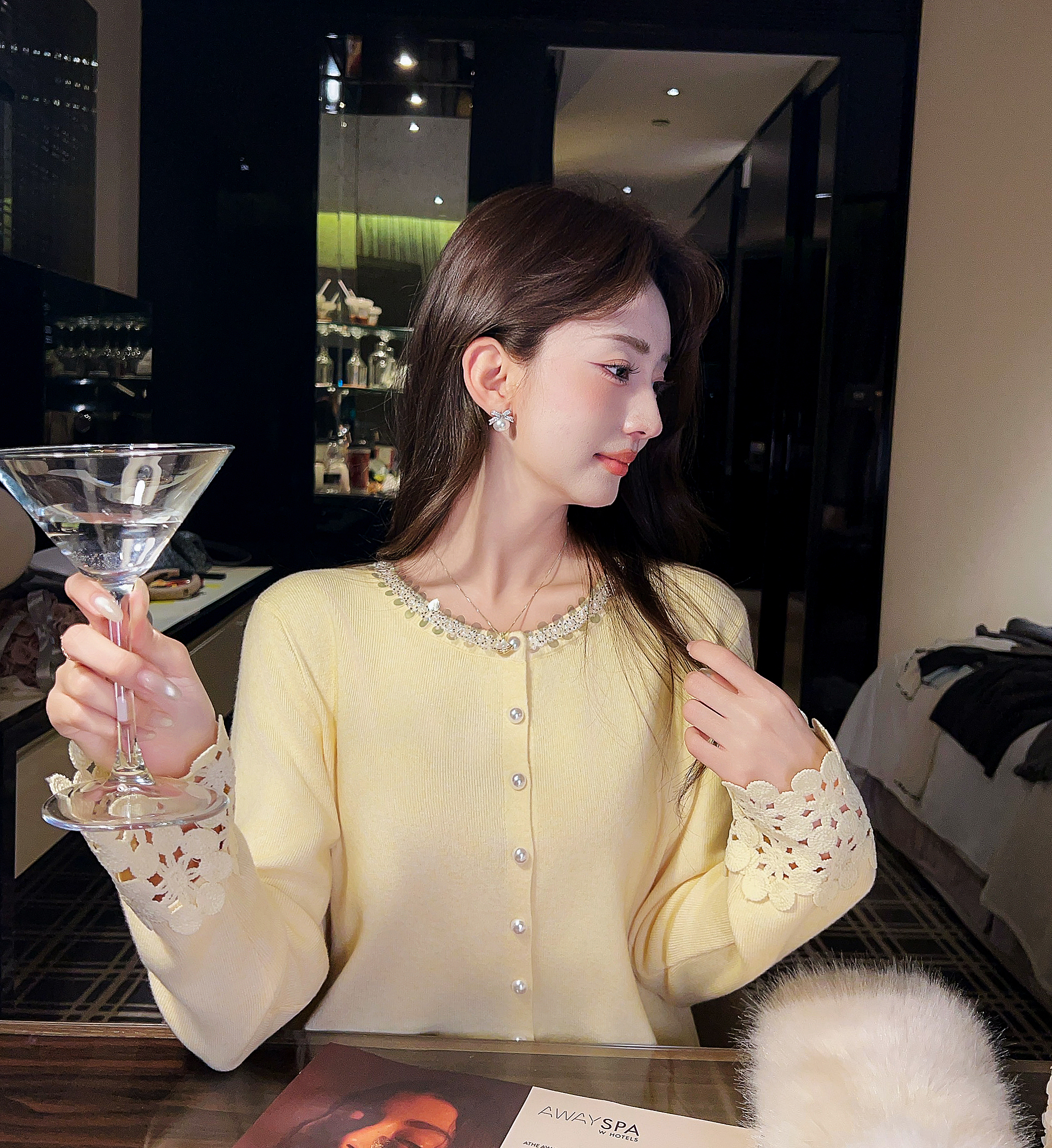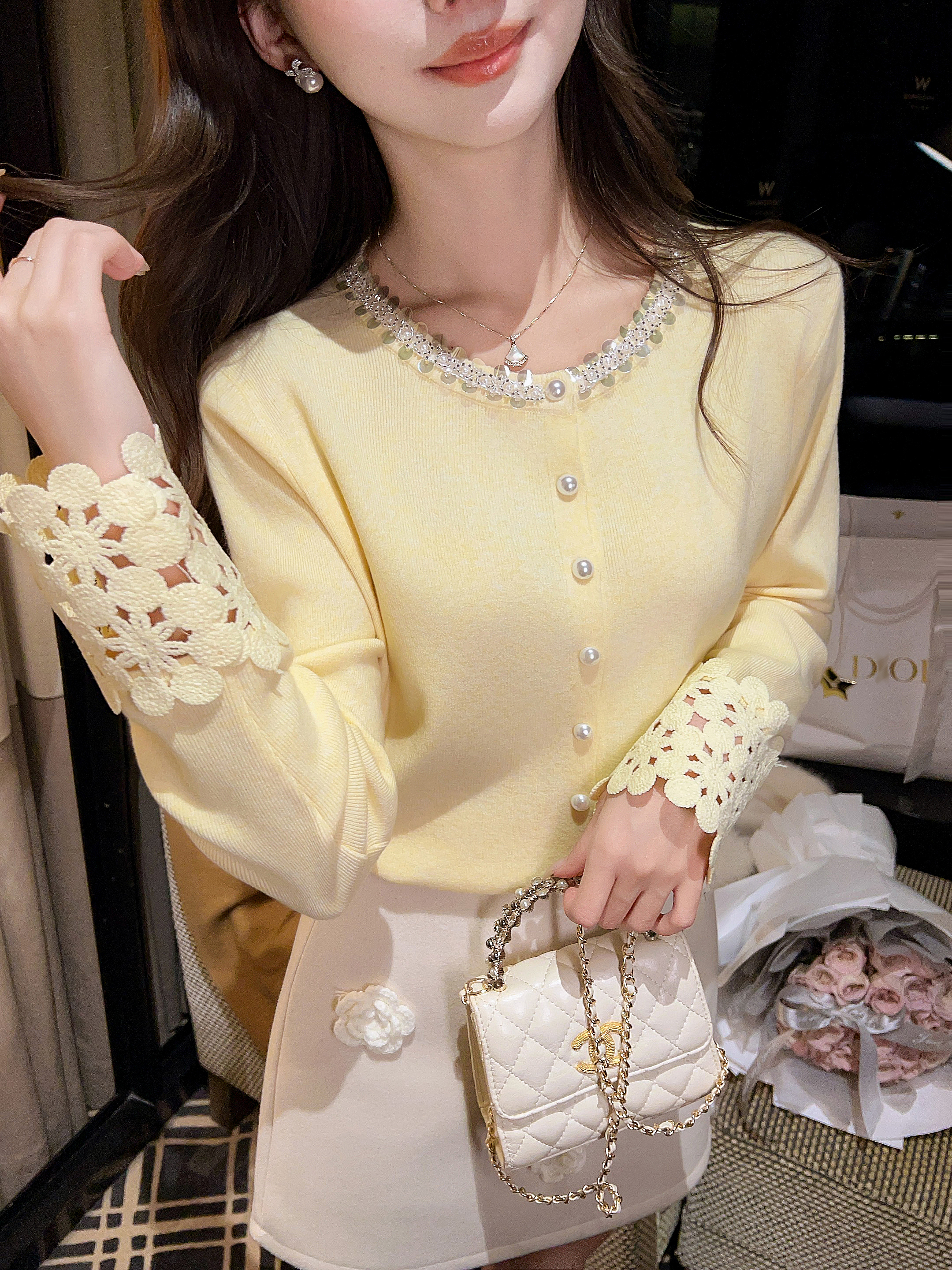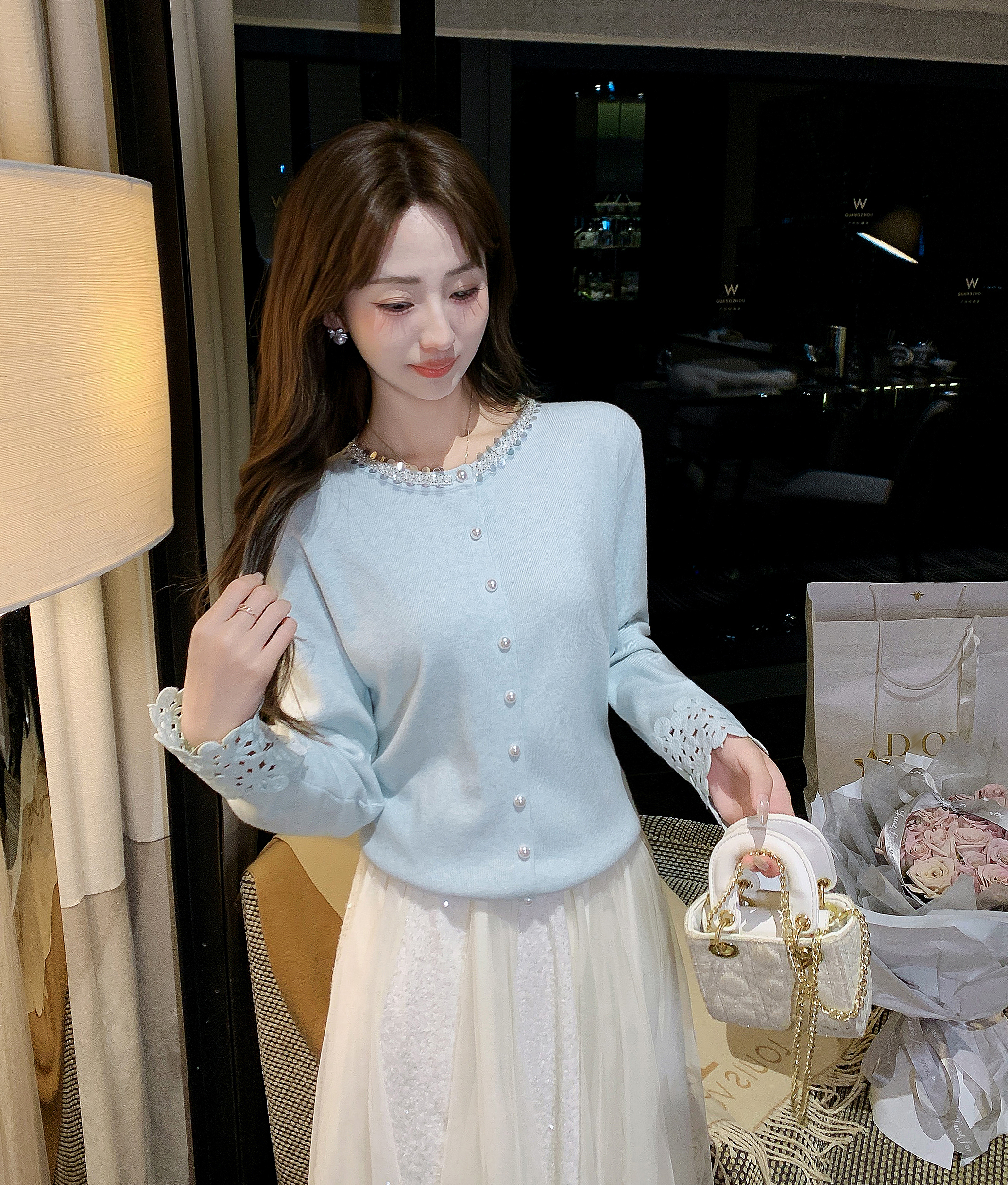 张心子【miu系千金】miu系减龄少女镂空手袖亮片开衫上衣 U2602021