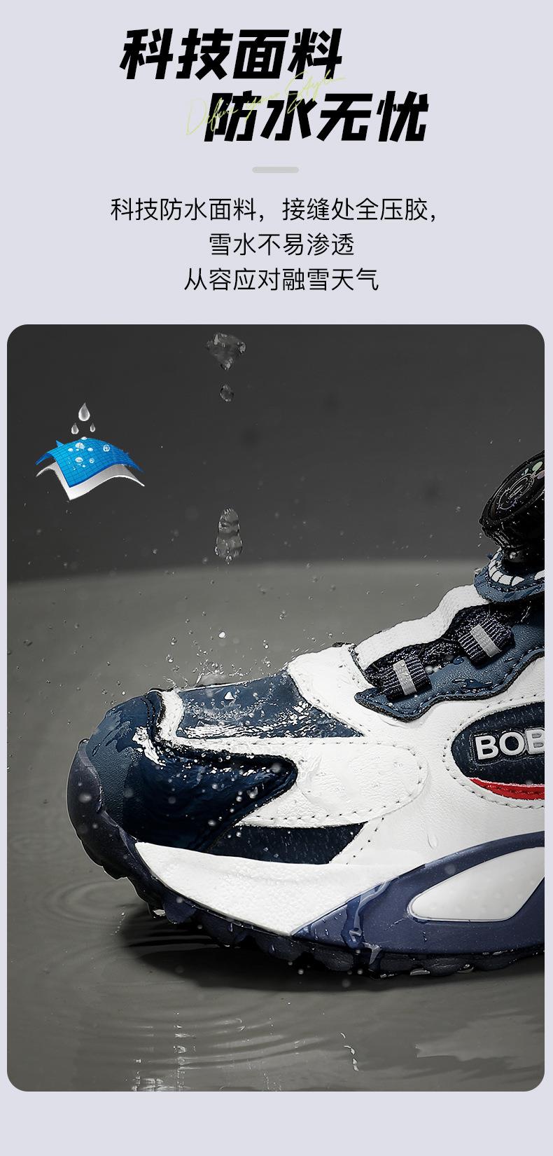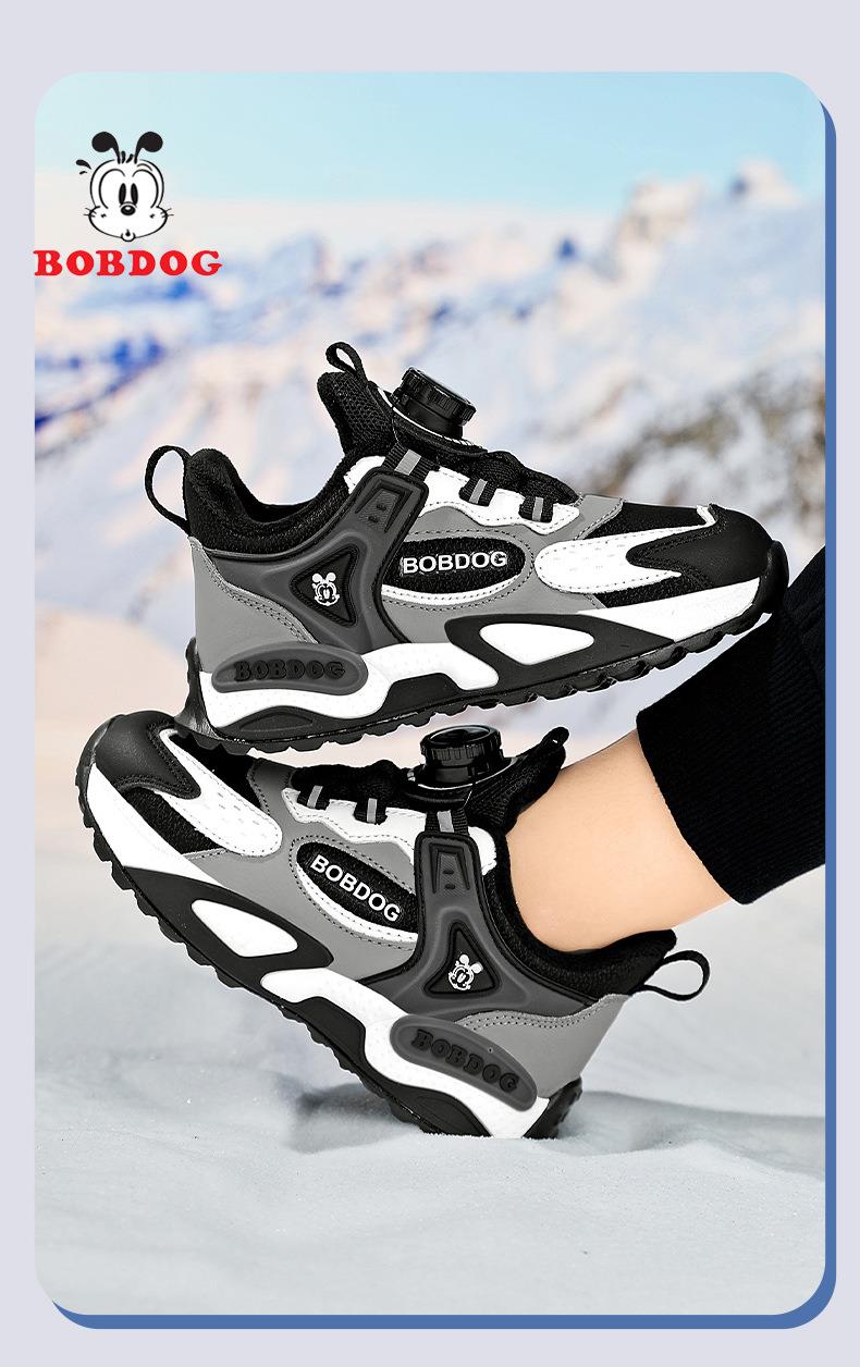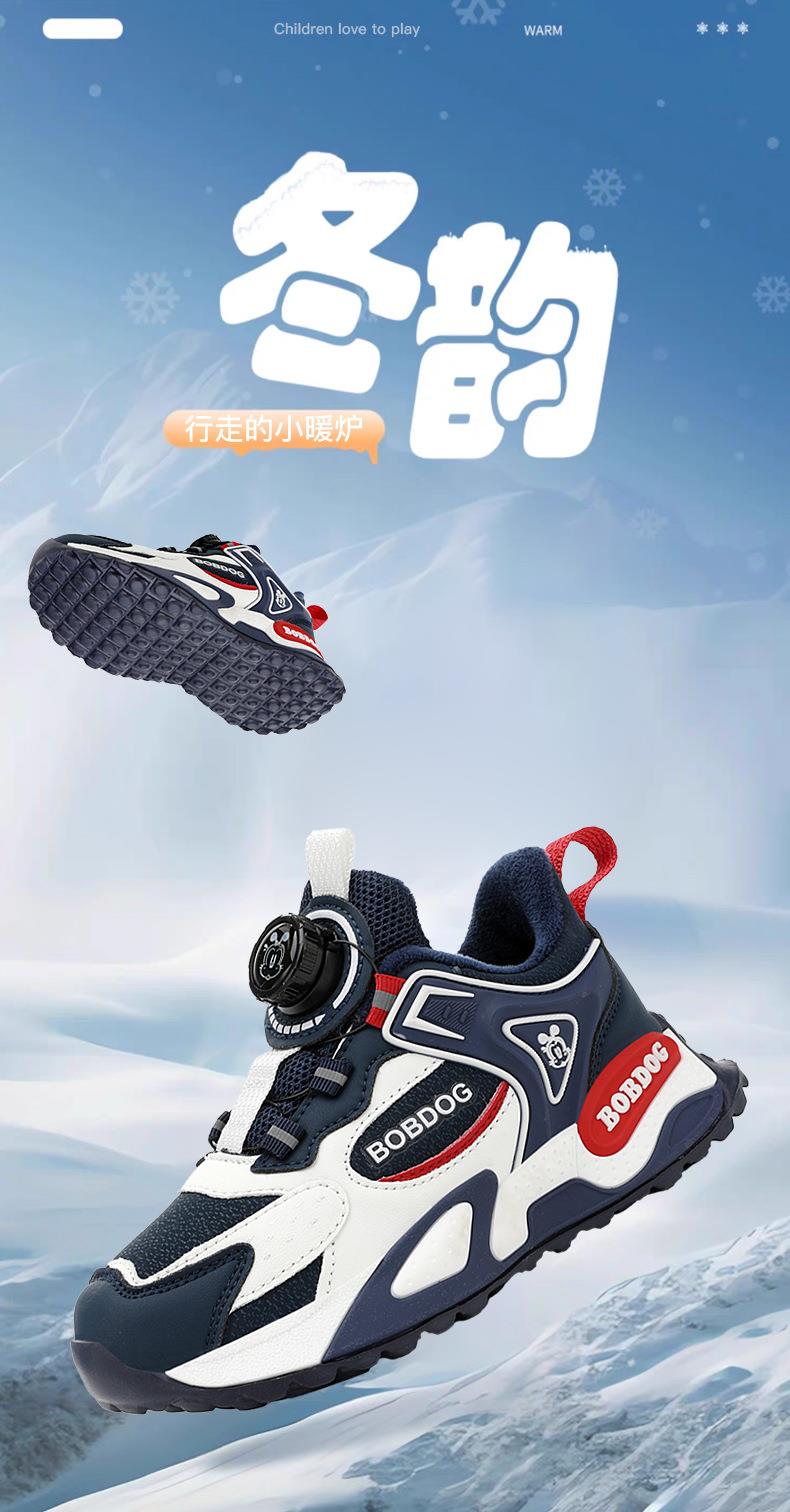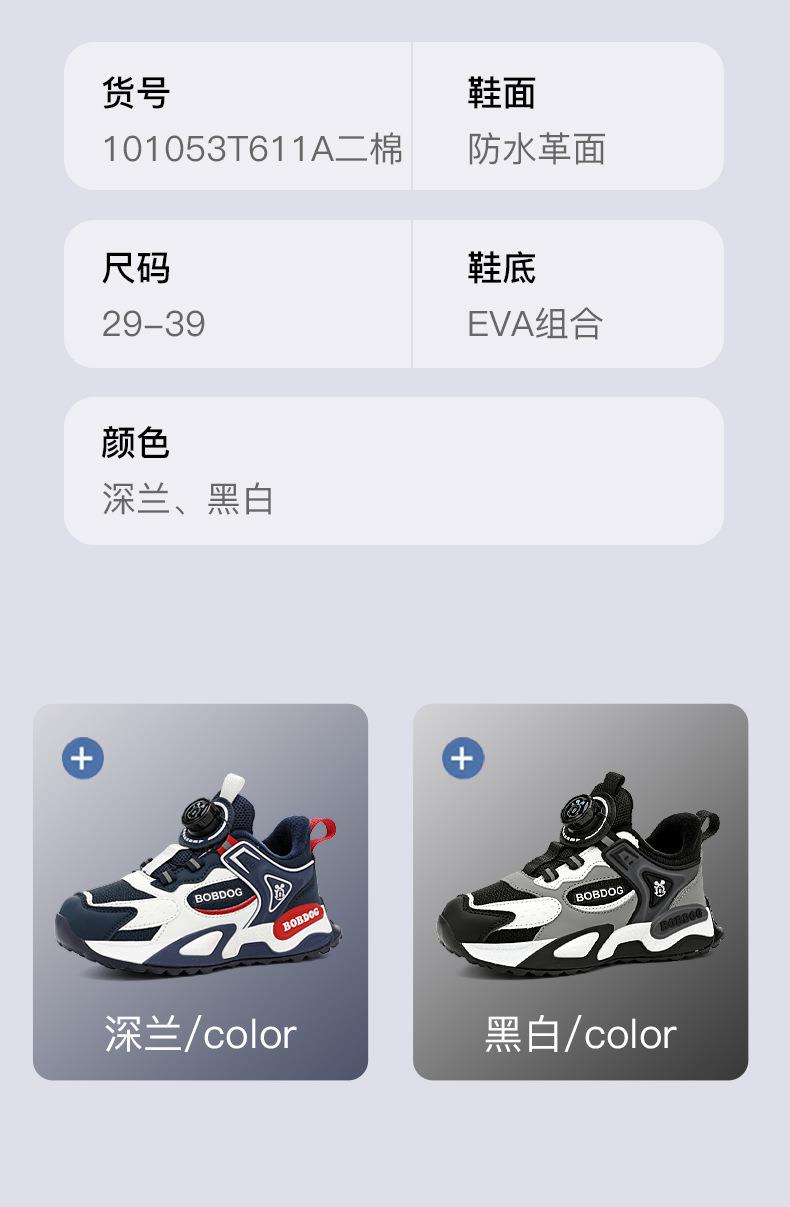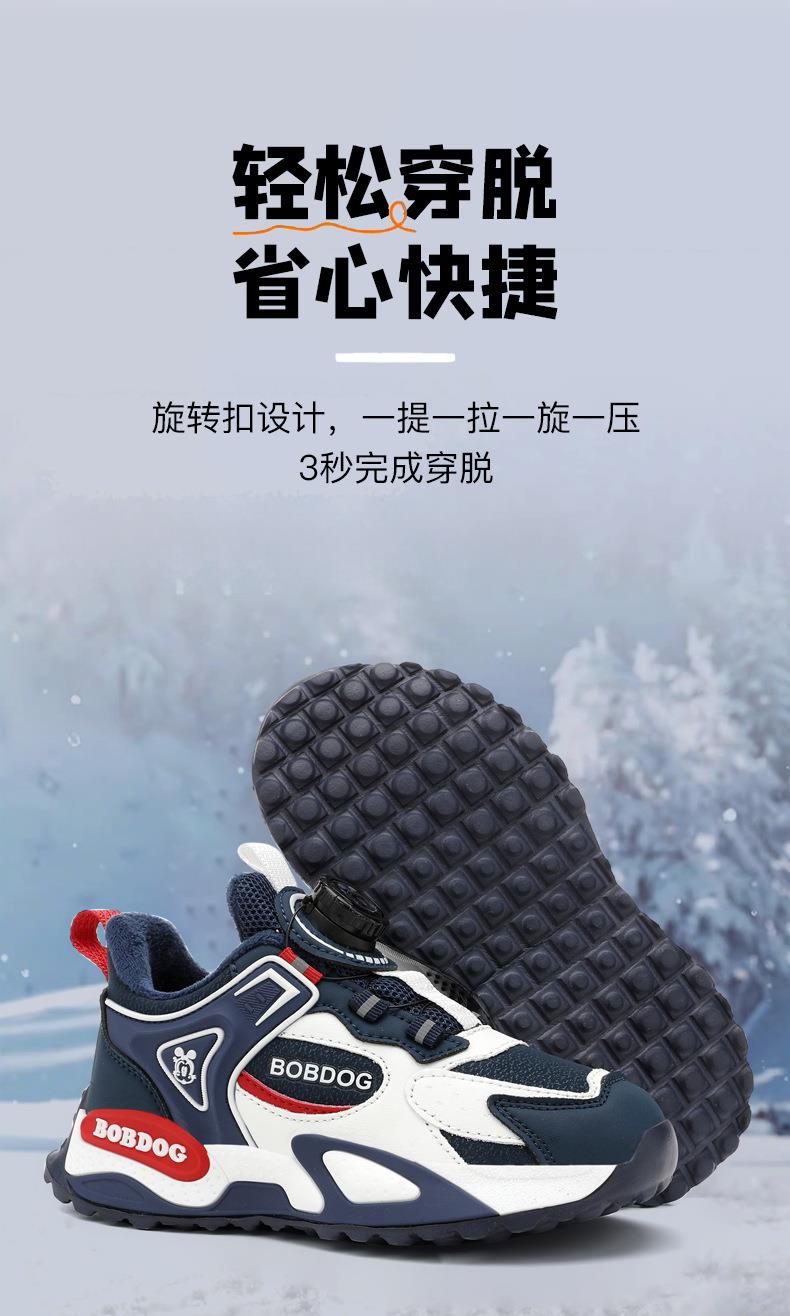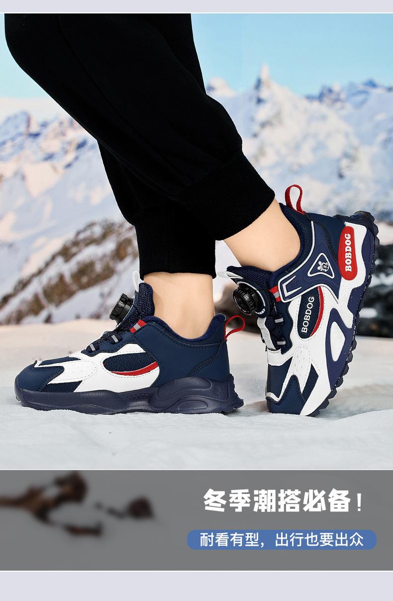 巴布豆男童棉鞋2025冬季加绒保暖儿童运动鞋新款防水皮面二棉跑鞋