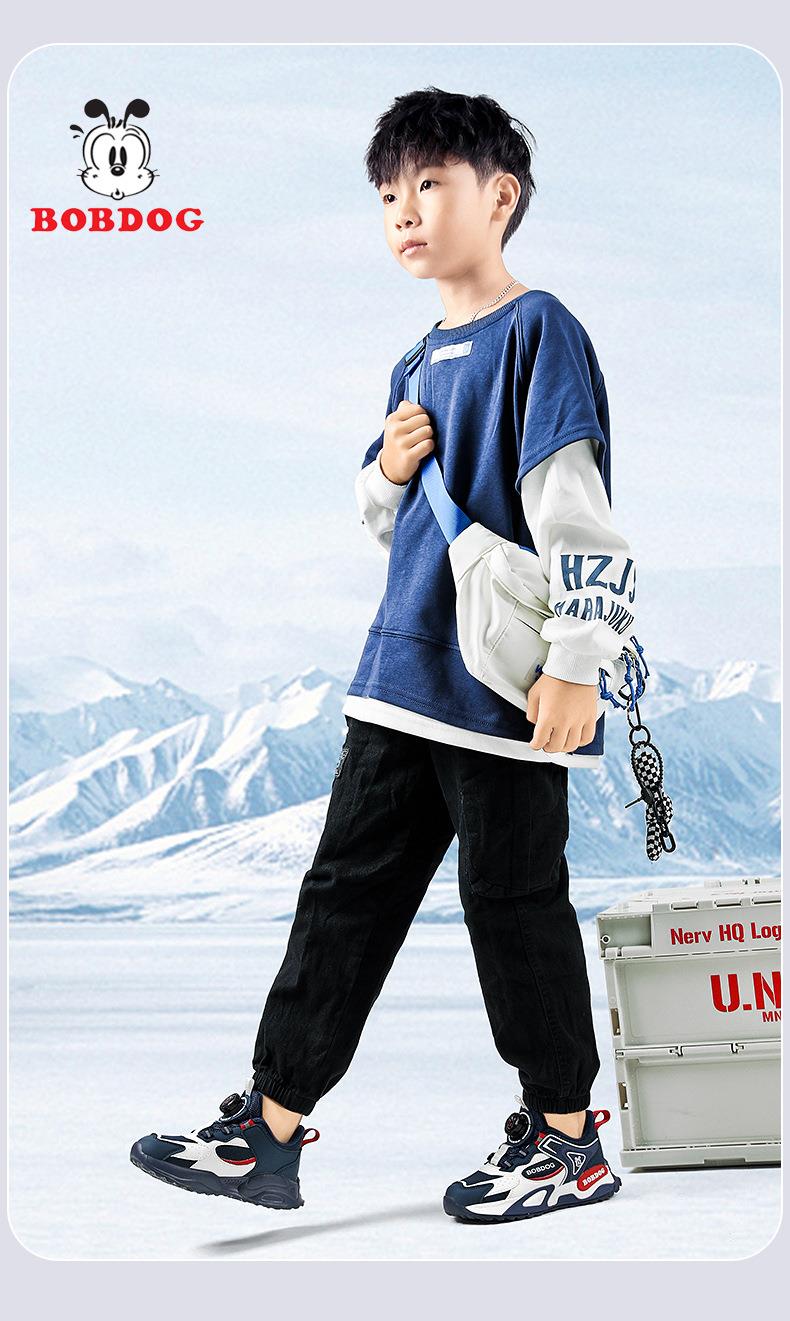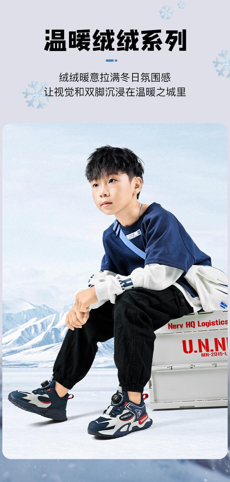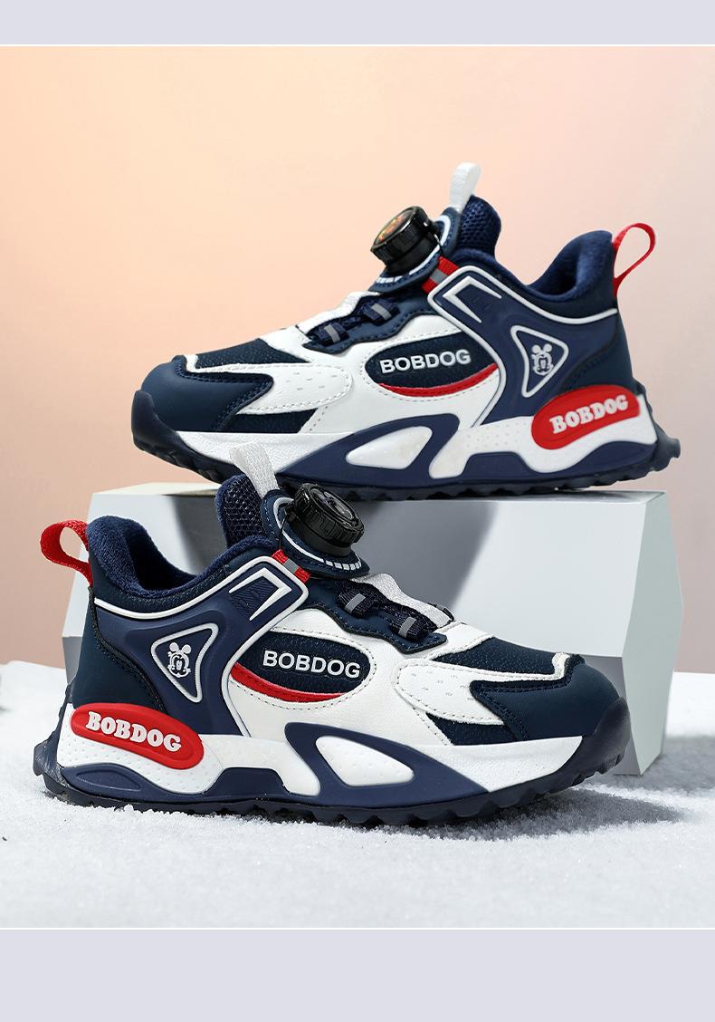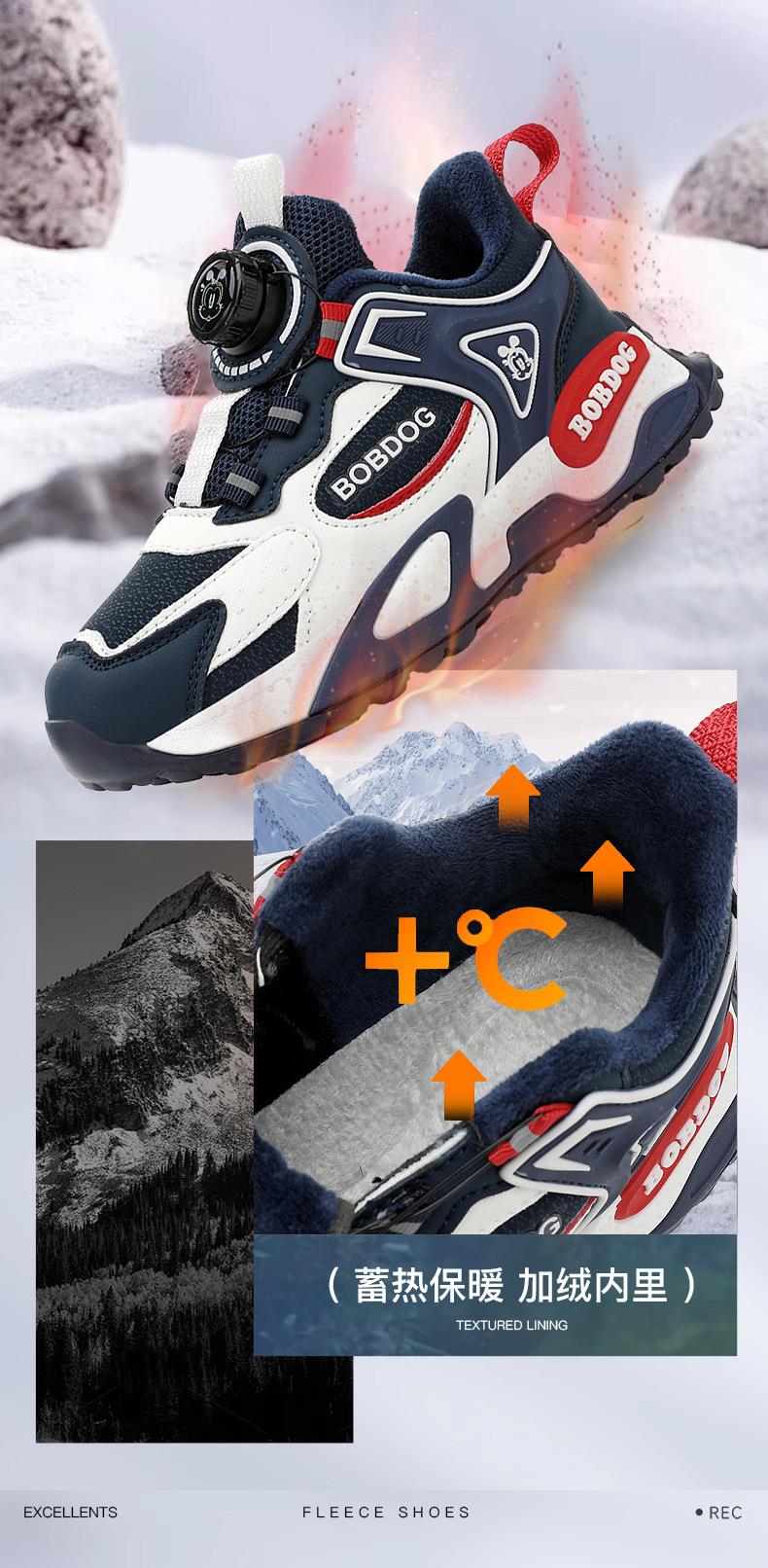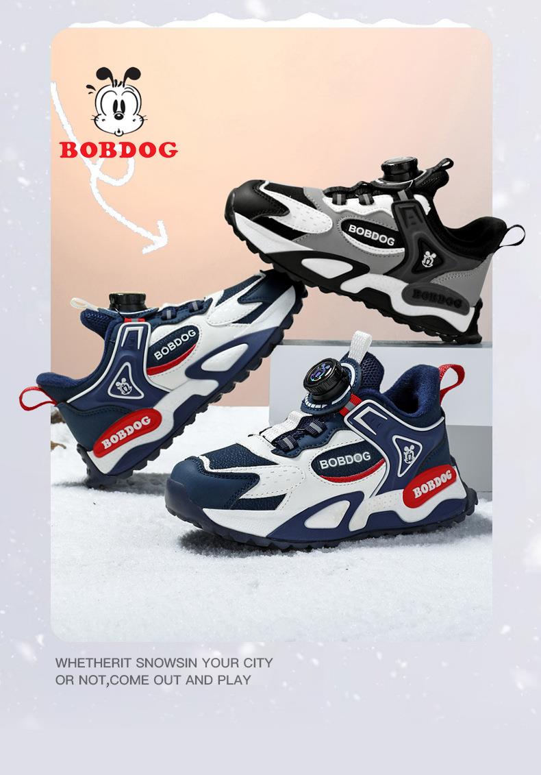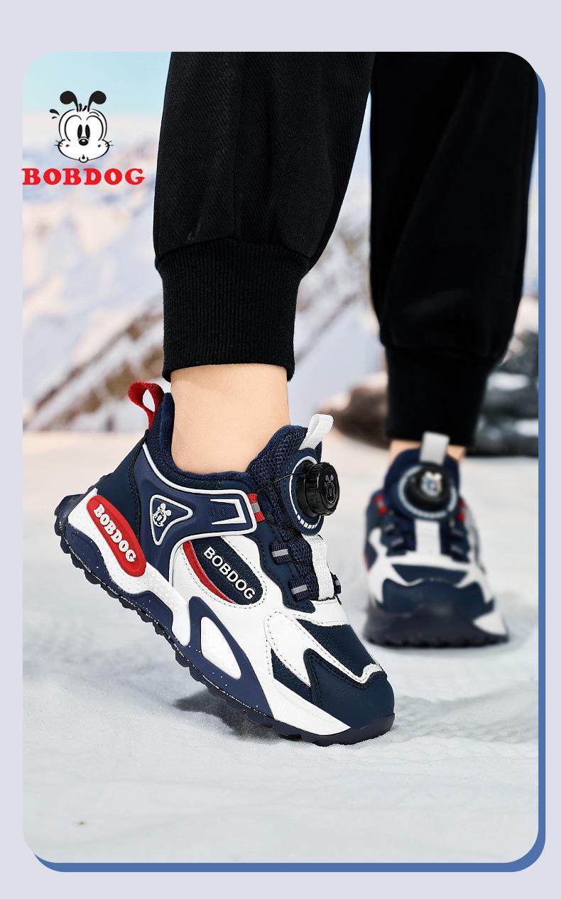 巴布豆男童棉鞋2025冬季加绒保暖儿童运动鞋新款防水皮面二棉跑鞋