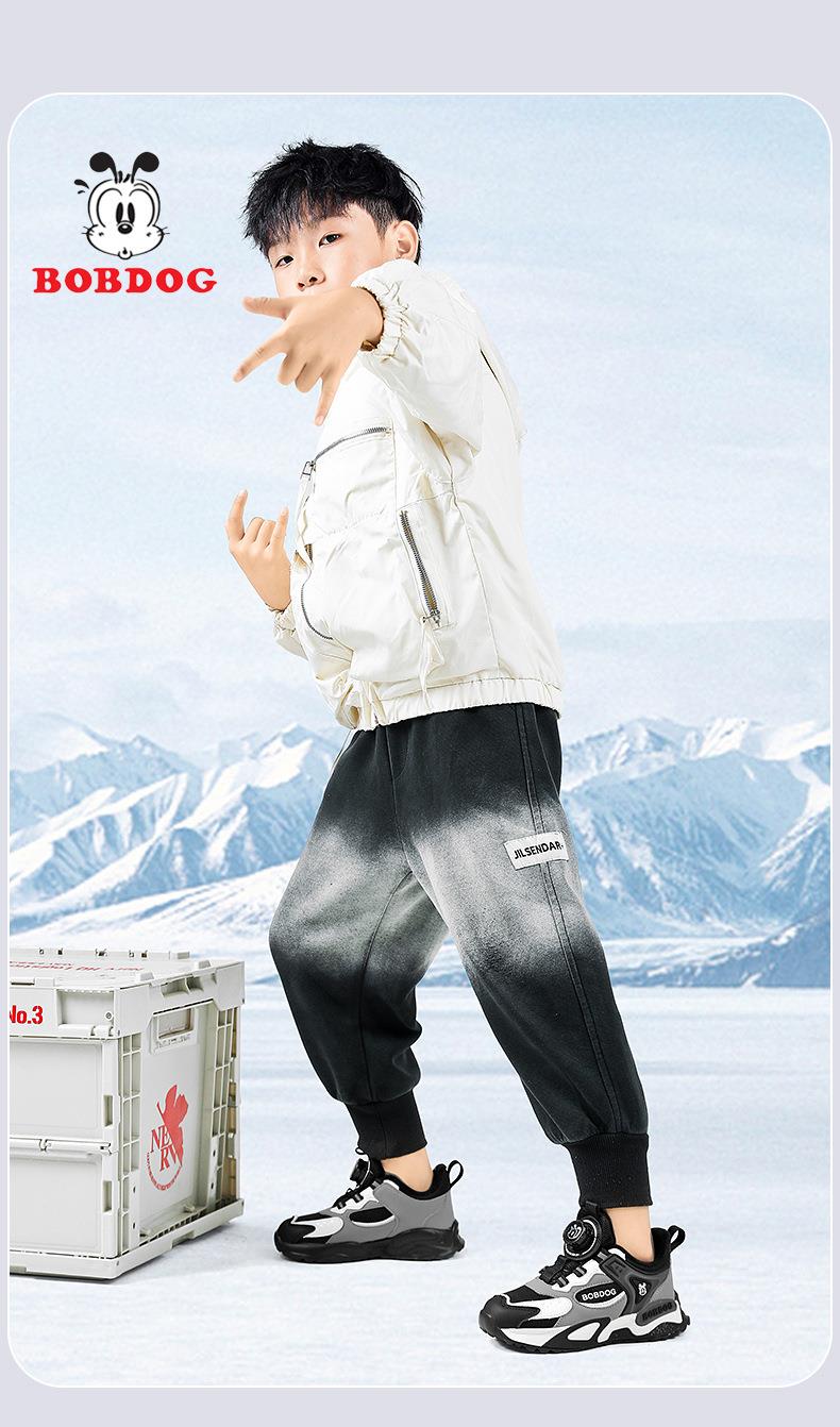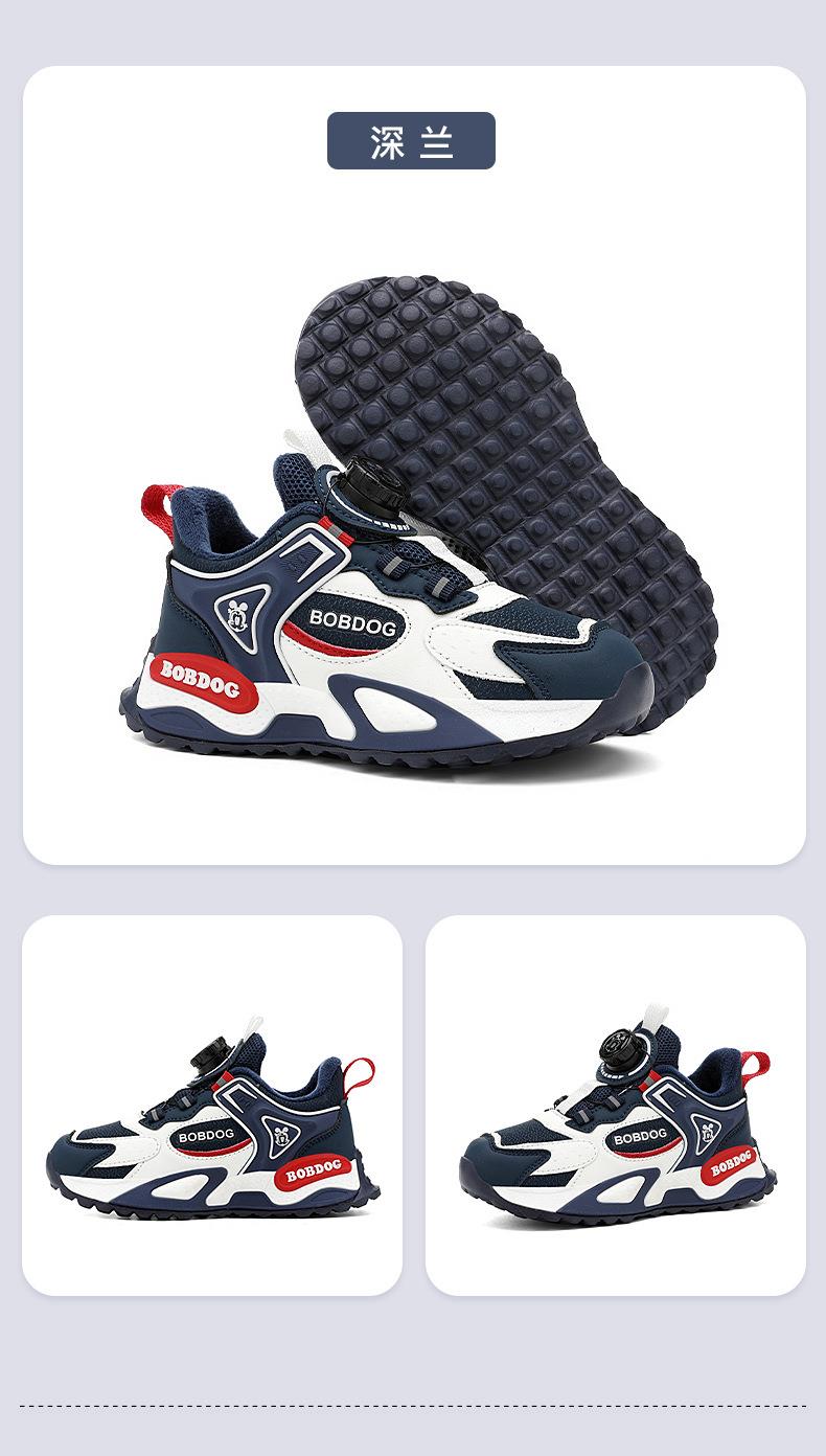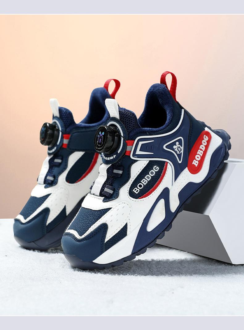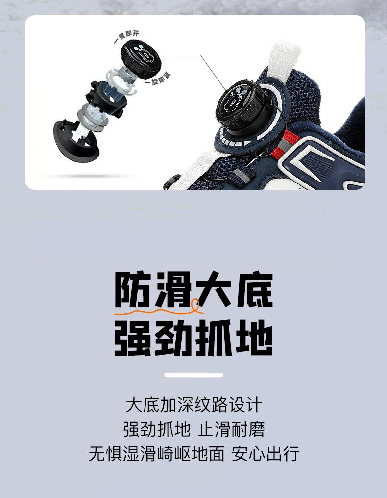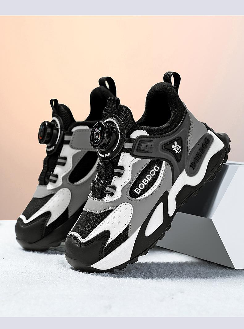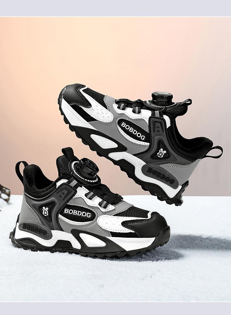 巴布豆男童棉鞋2025冬季加绒保暖儿童运动鞋新款防水皮面二棉跑鞋