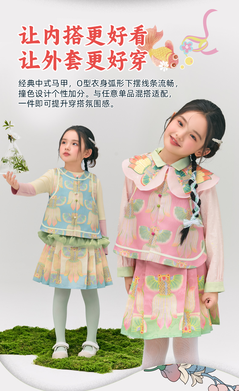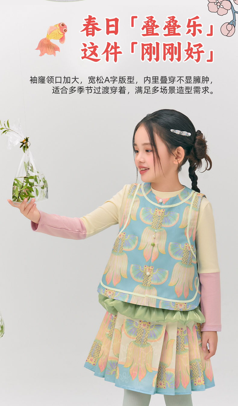 年衣童装女童2025春装马甲新款女孩新中式国风儿童唐装浮光跃金中式马甲