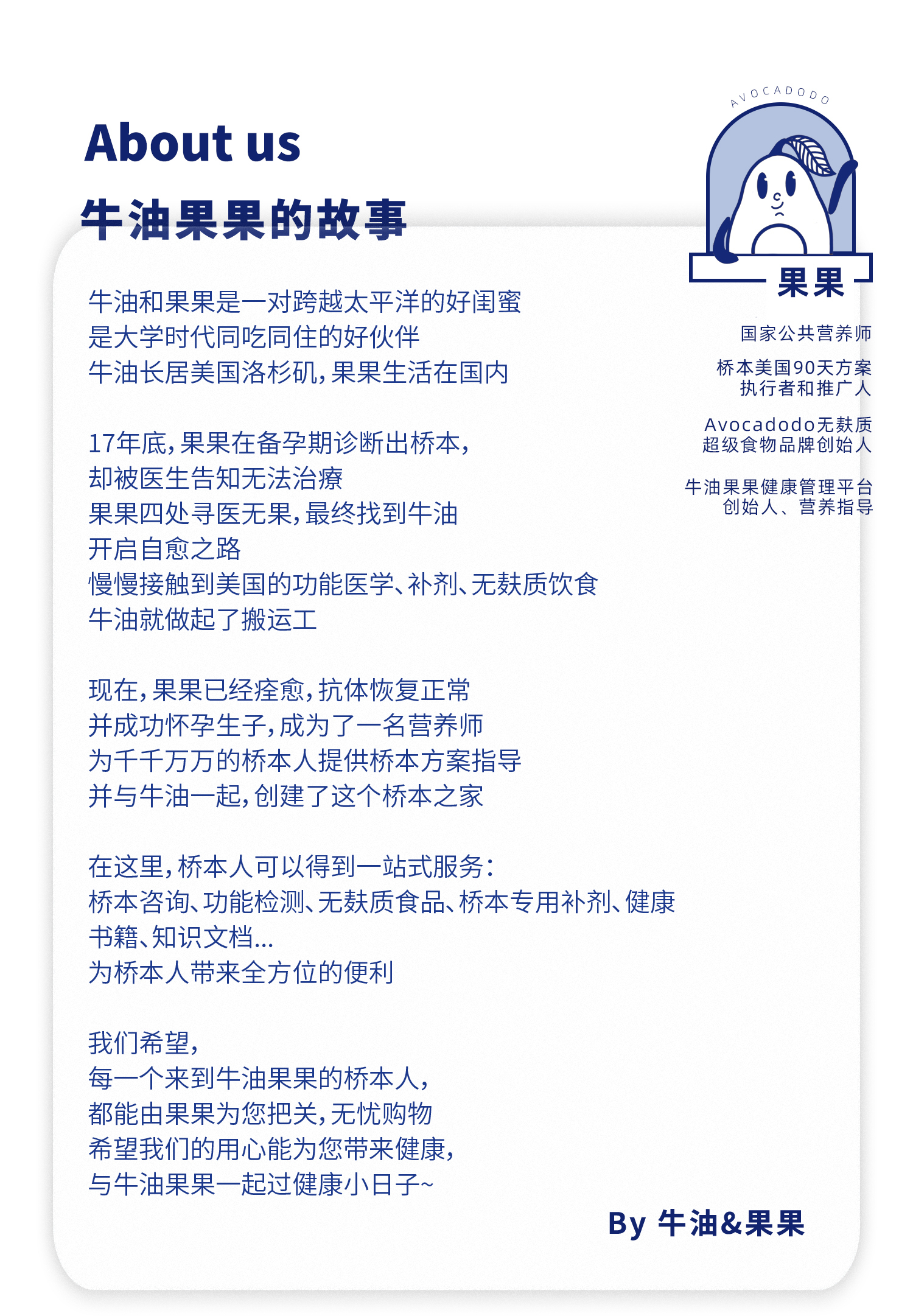 - 牛油果果健康管理有机食品旗舰店是为桥本甲状腺炎患者服务的小天地,大家可以在这里买到无麸质食品,忌口替代品,还有90天疗程需要的补剂。
