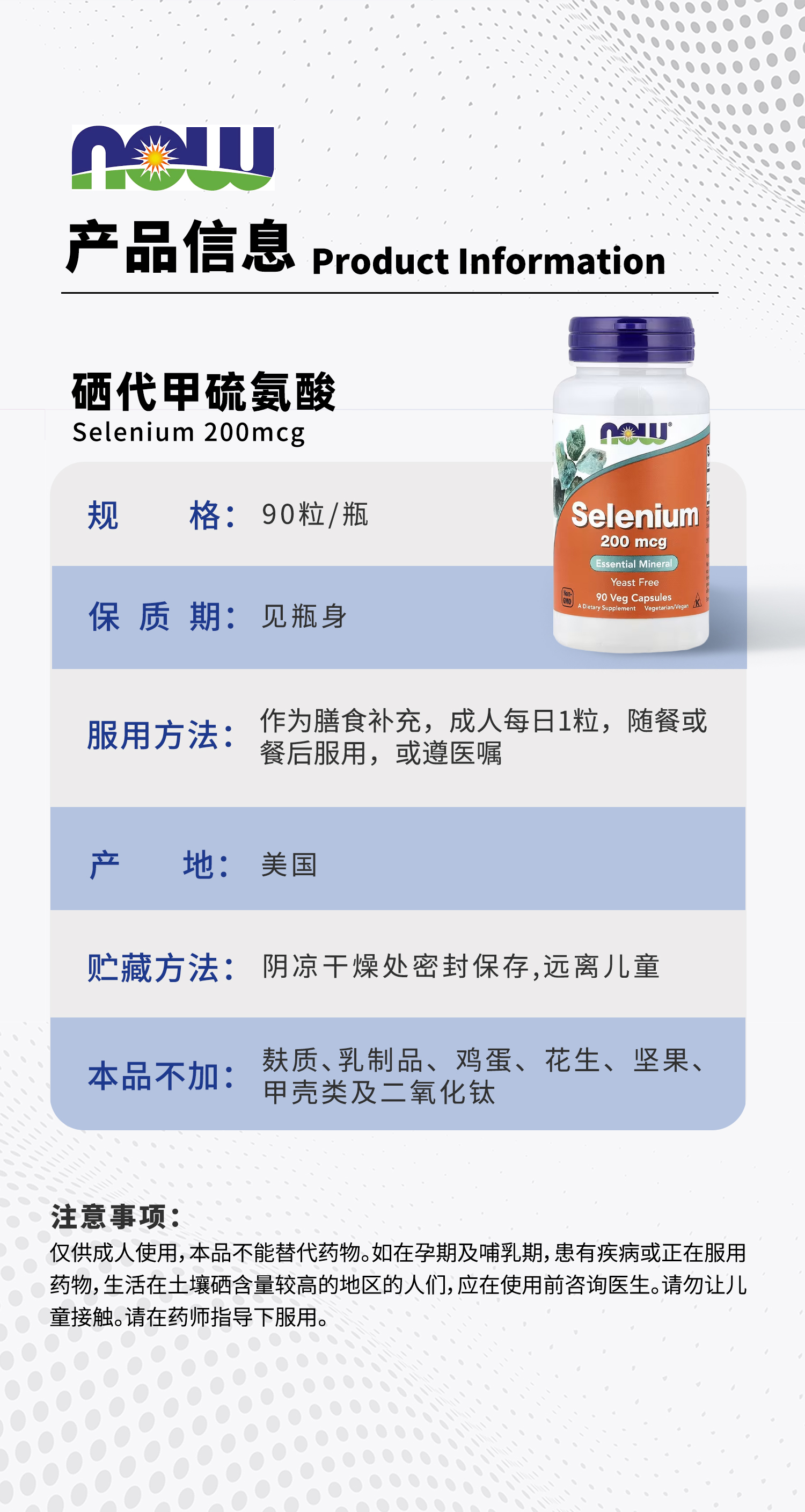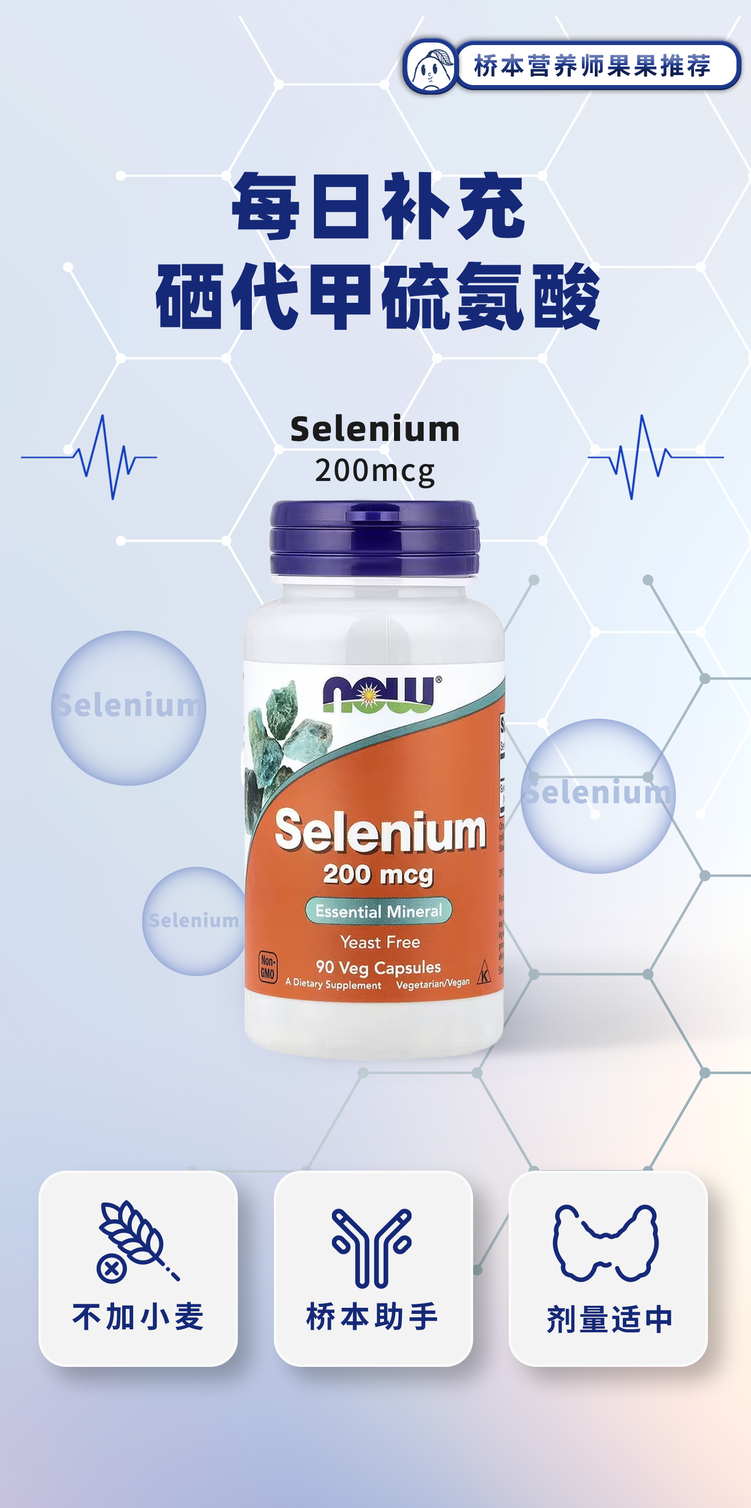 保税仓Now诺奥硒代甲硫氨酸200mcg 90粒牛油果果桥本甲状90天