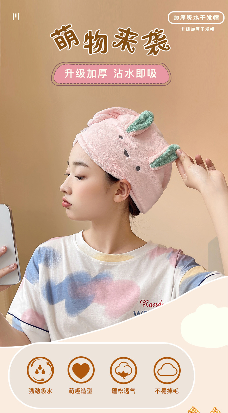 【YW】无忧购19元2件韩国兔耳朵干发帽卡通浴帽吸水少女可爱速干卡通成人洗头发毛巾2002(截单后3-5天发货)