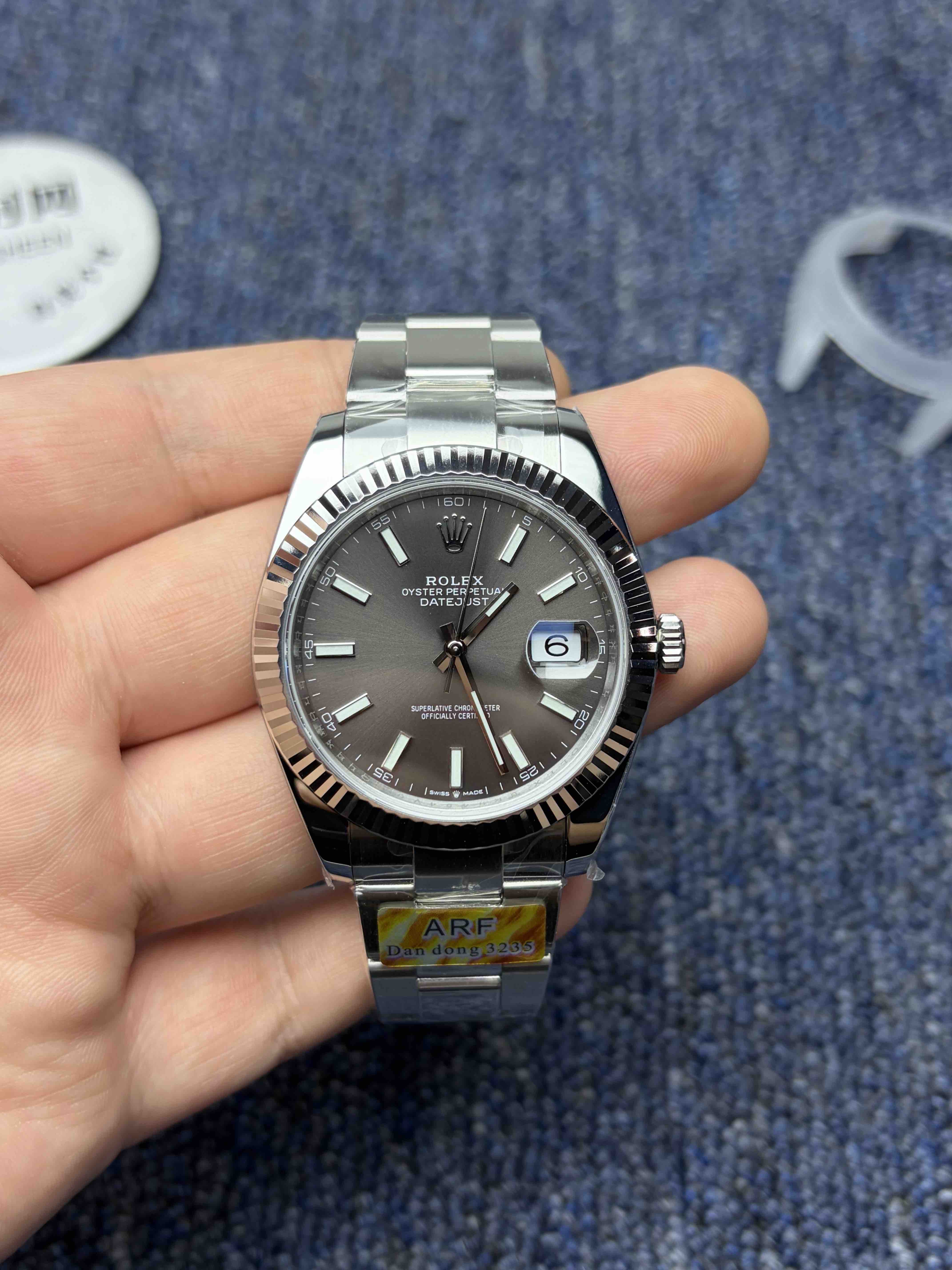 ARF劳力士日志型41mm 水泥灰 灰盘 丹东3235机 板带 三珠链 904L钢 男士腕表