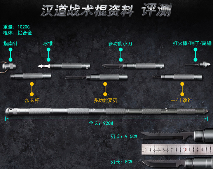 汉道【防卫战术棍】防身武器野外生存装备多功能户外刀具军工刀军刀