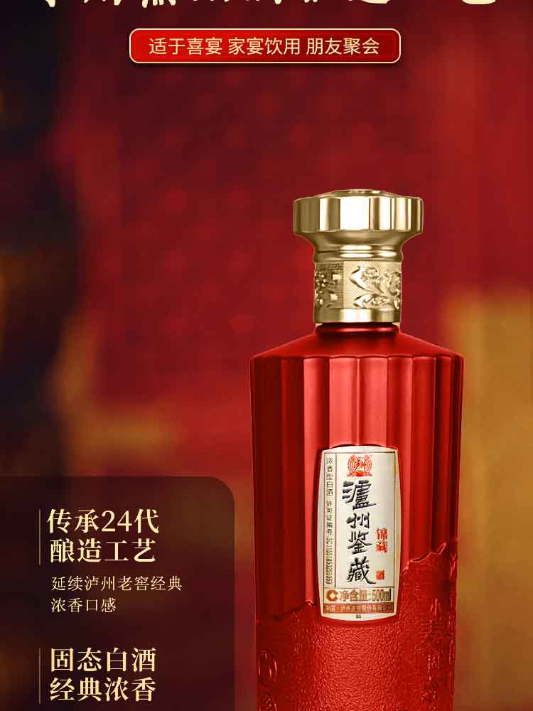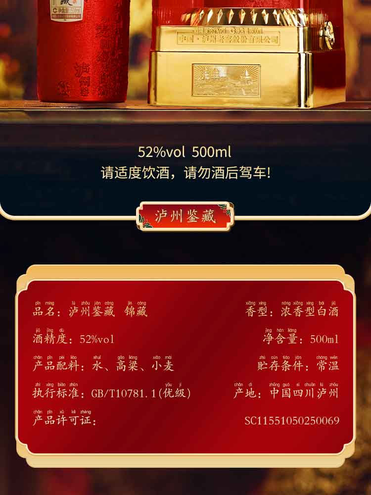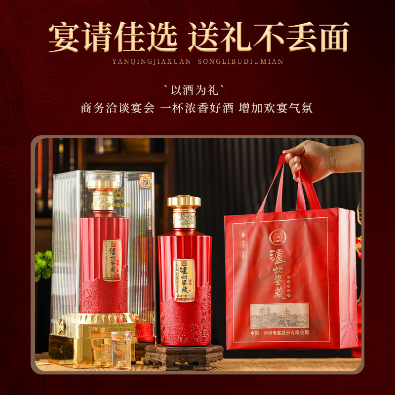 泸州老窖股份出品 泸州鉴藏酒锦藏 52度浓香型白酒500ml*6瓶(整箱装配三个礼品袋)