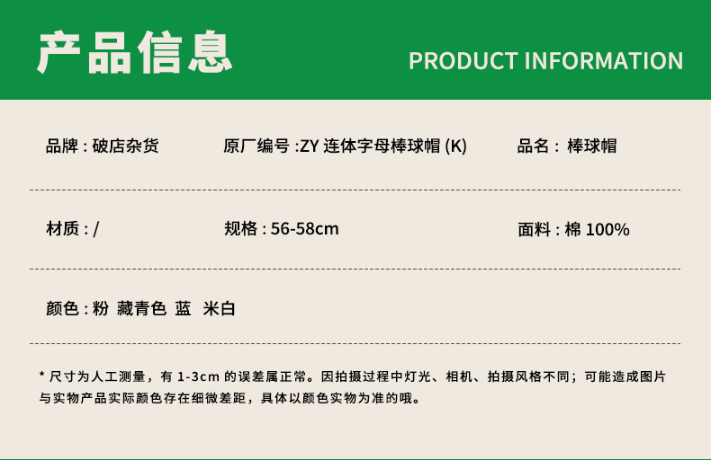 ZY连体字母棒球帽-纪念日百货门店同款169146531