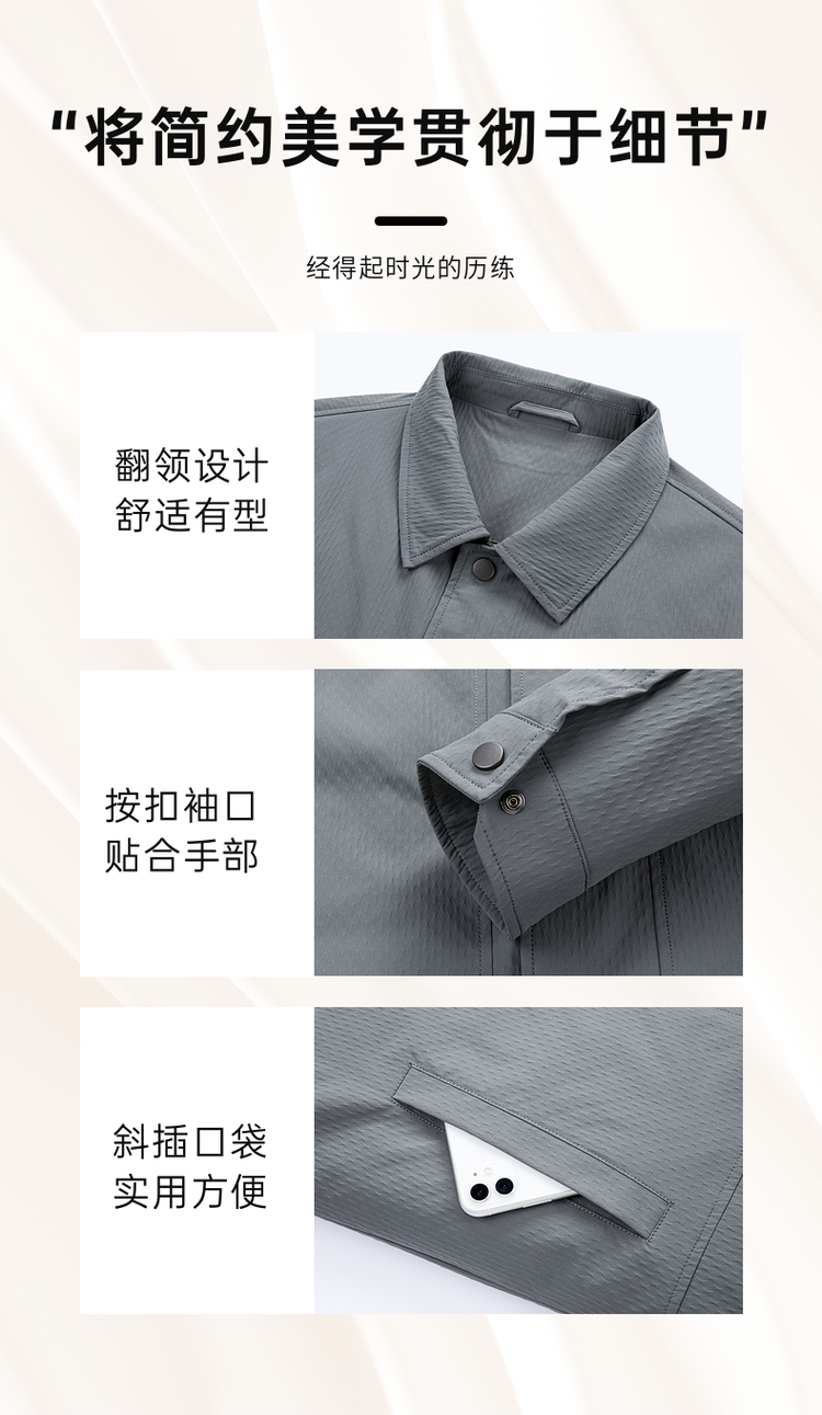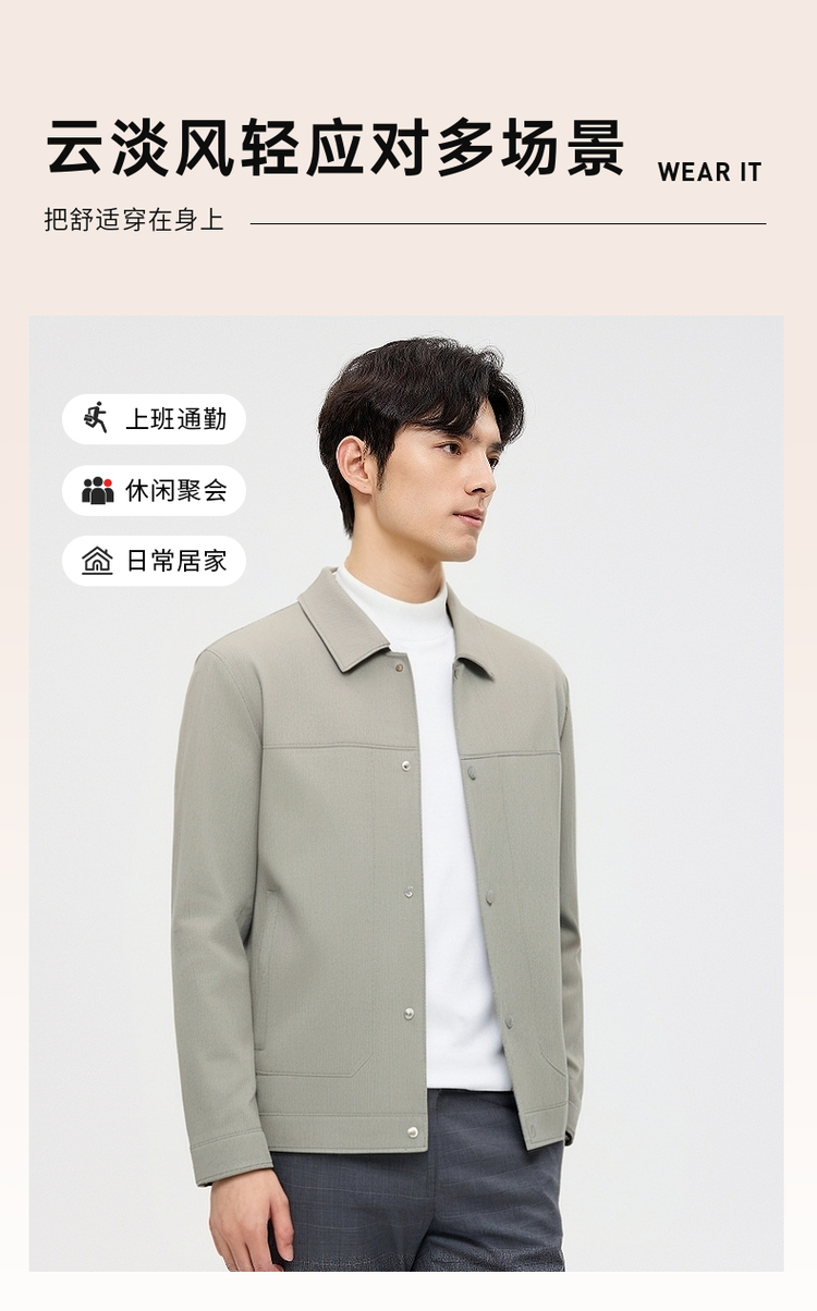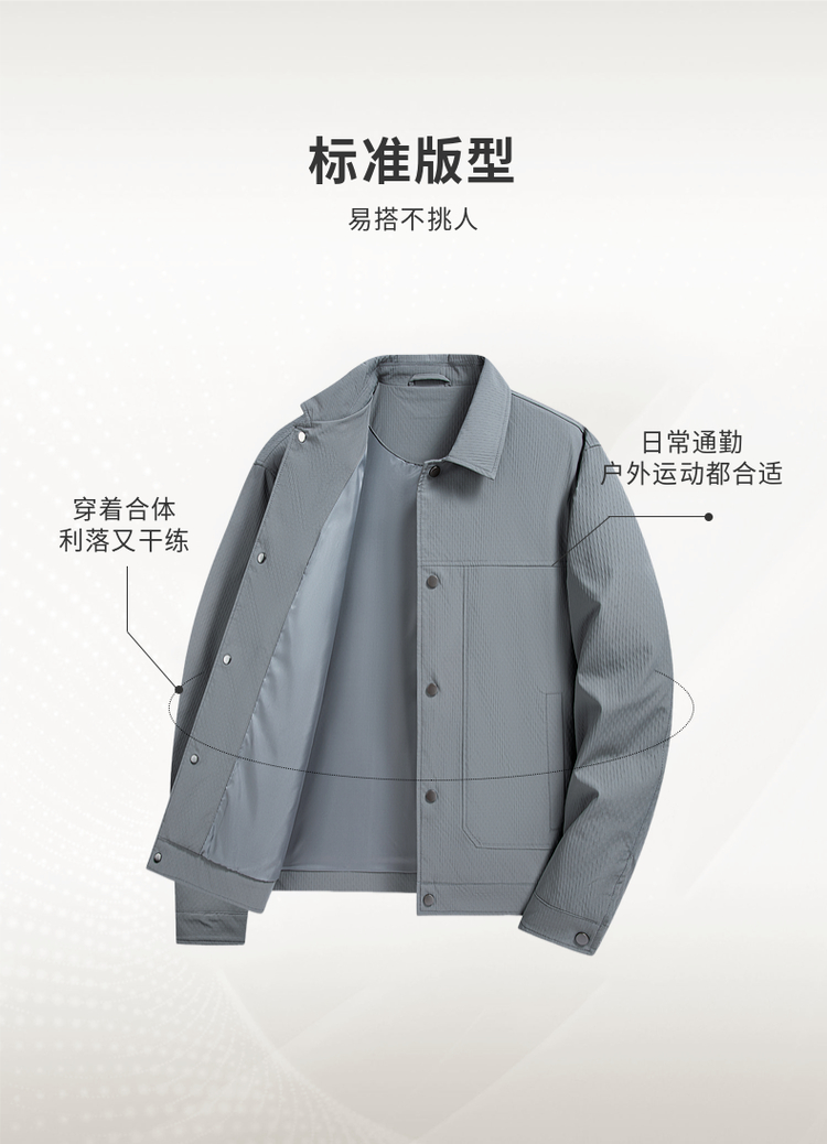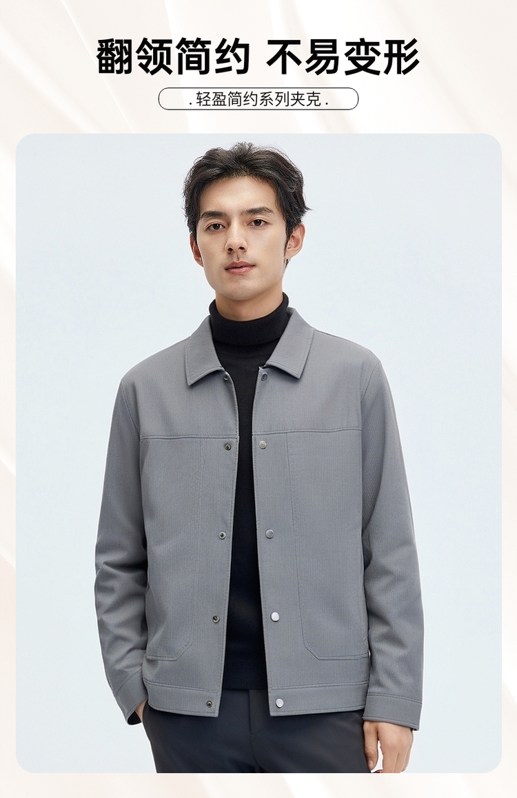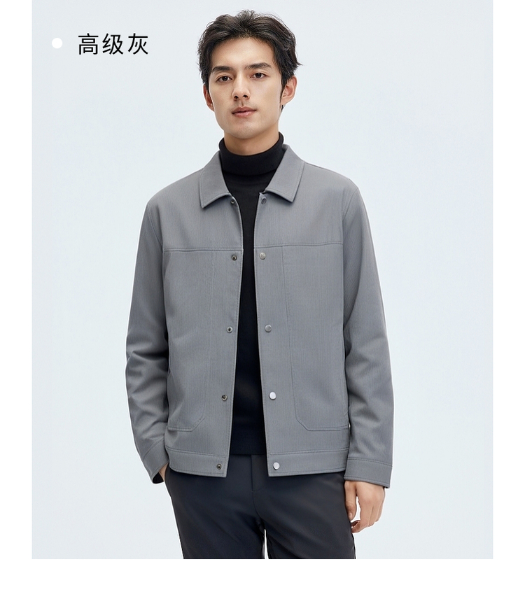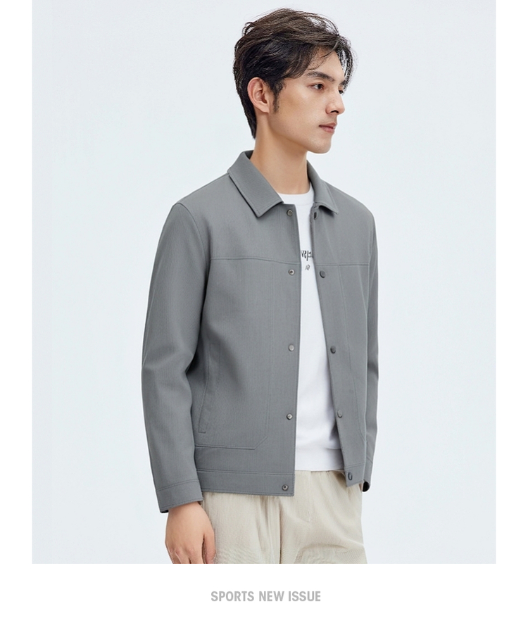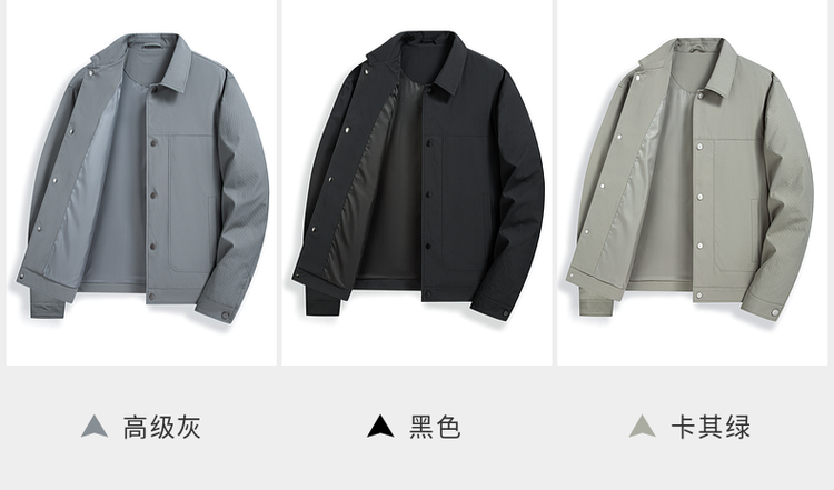 圣得西男士纯色简约夹克2025春秋新款宽松休闲百搭翻领外套青年