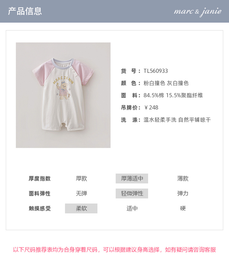 【A类】马克珍妮快乐小熊女童凉感插肩连体衣2026年夏装新款560933