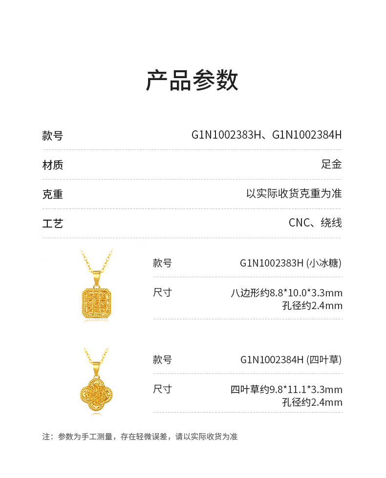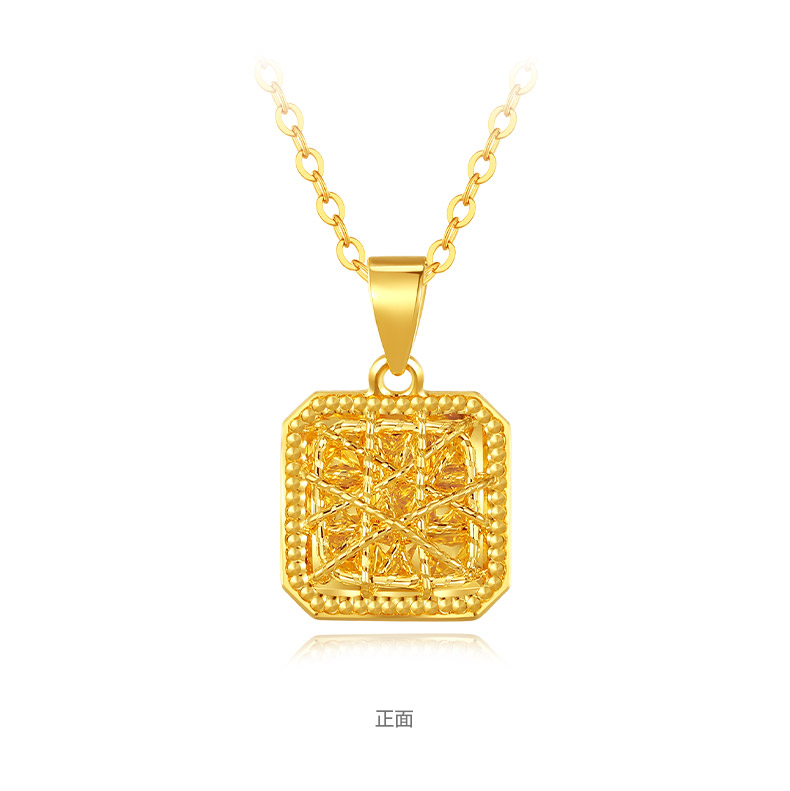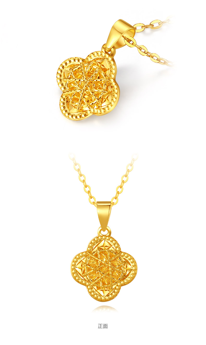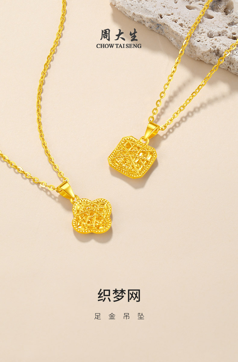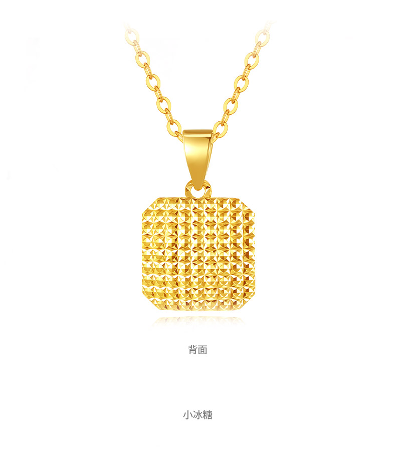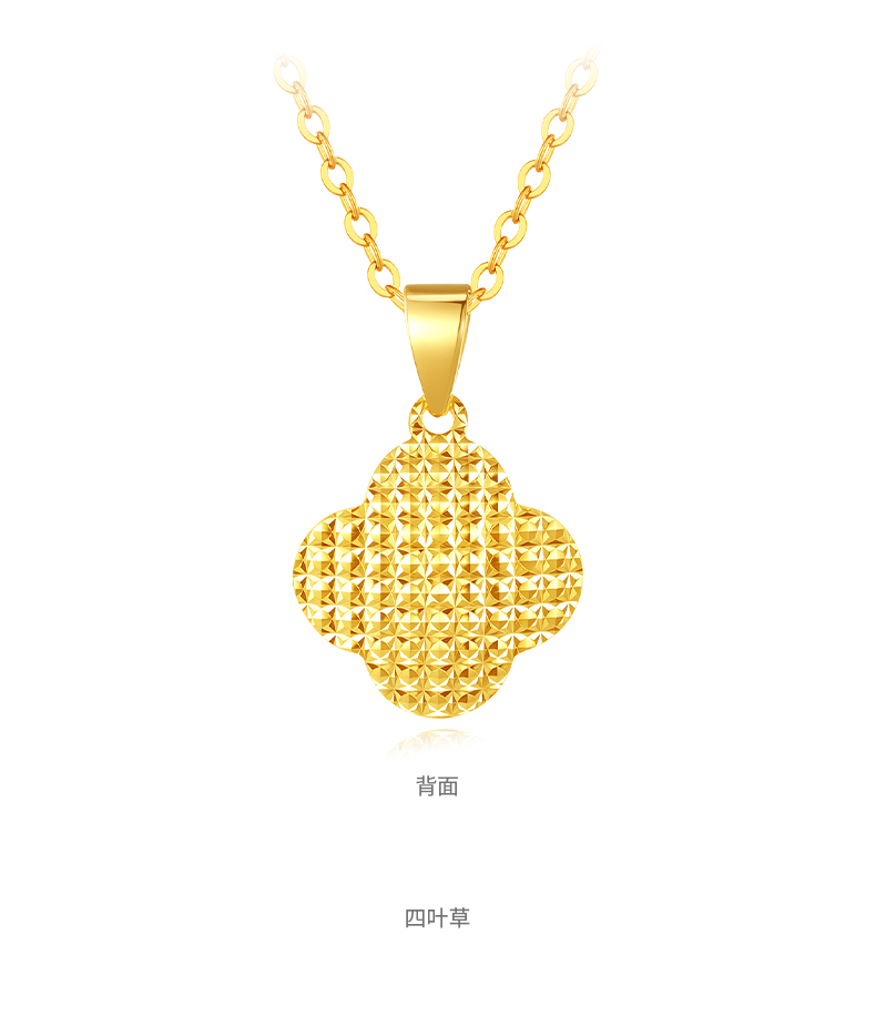周大生黄金吊坠女足金爆闪拉丝小方糖四叶草挂坠生日礼物送女生