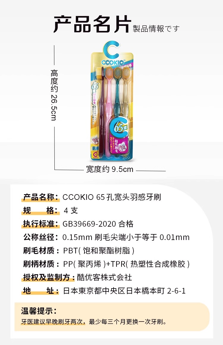 CCOKIO酷优客65束软包宽头牙刷(单支便携装)颜色随机