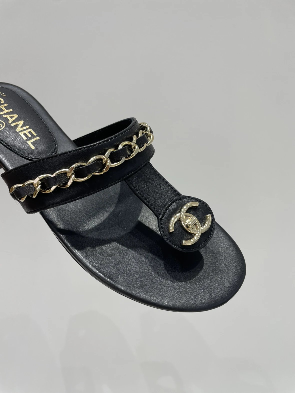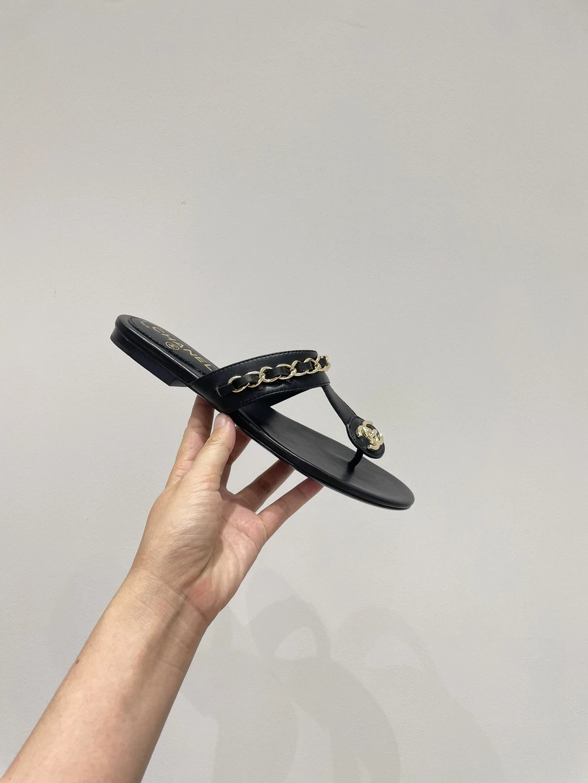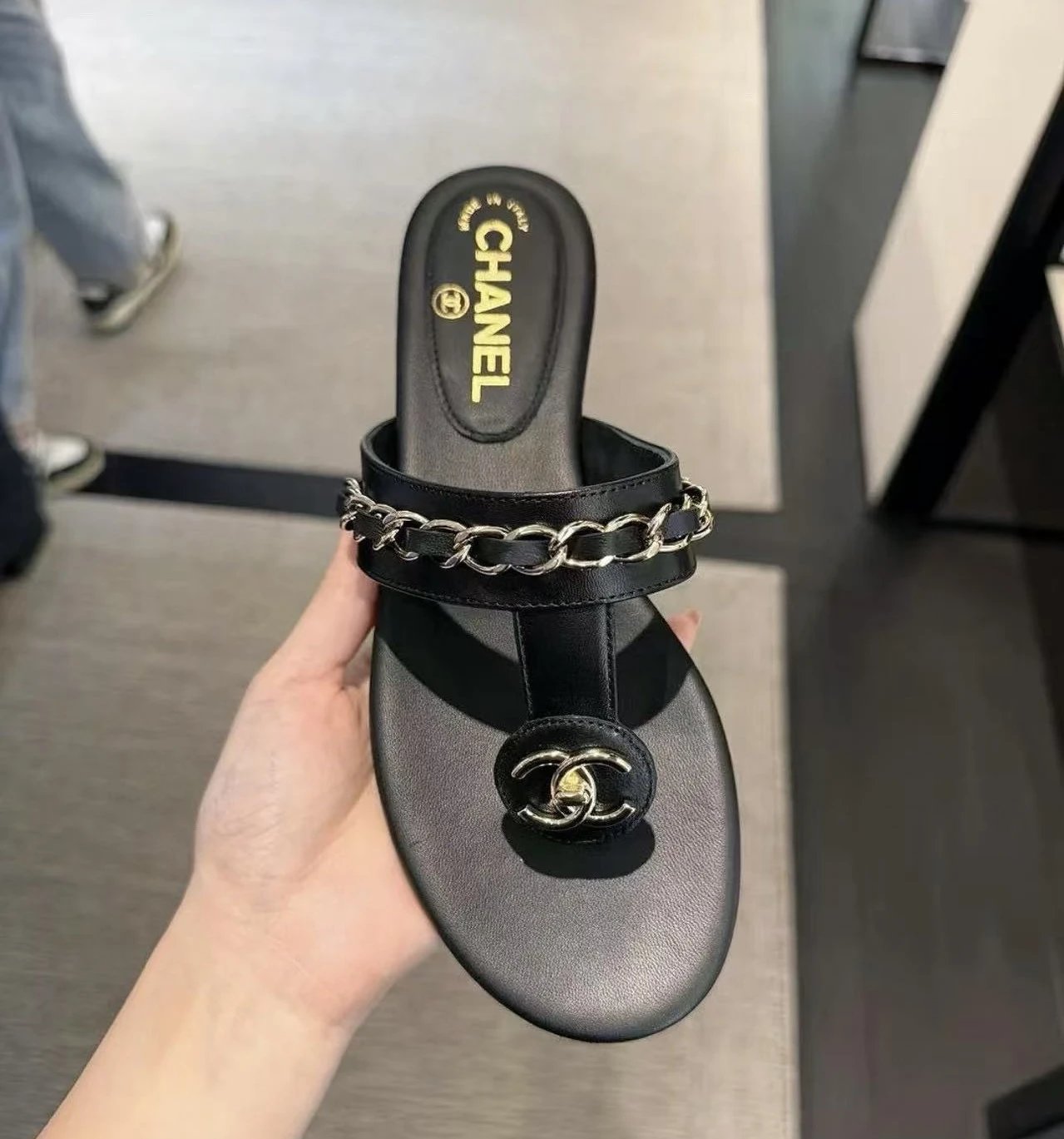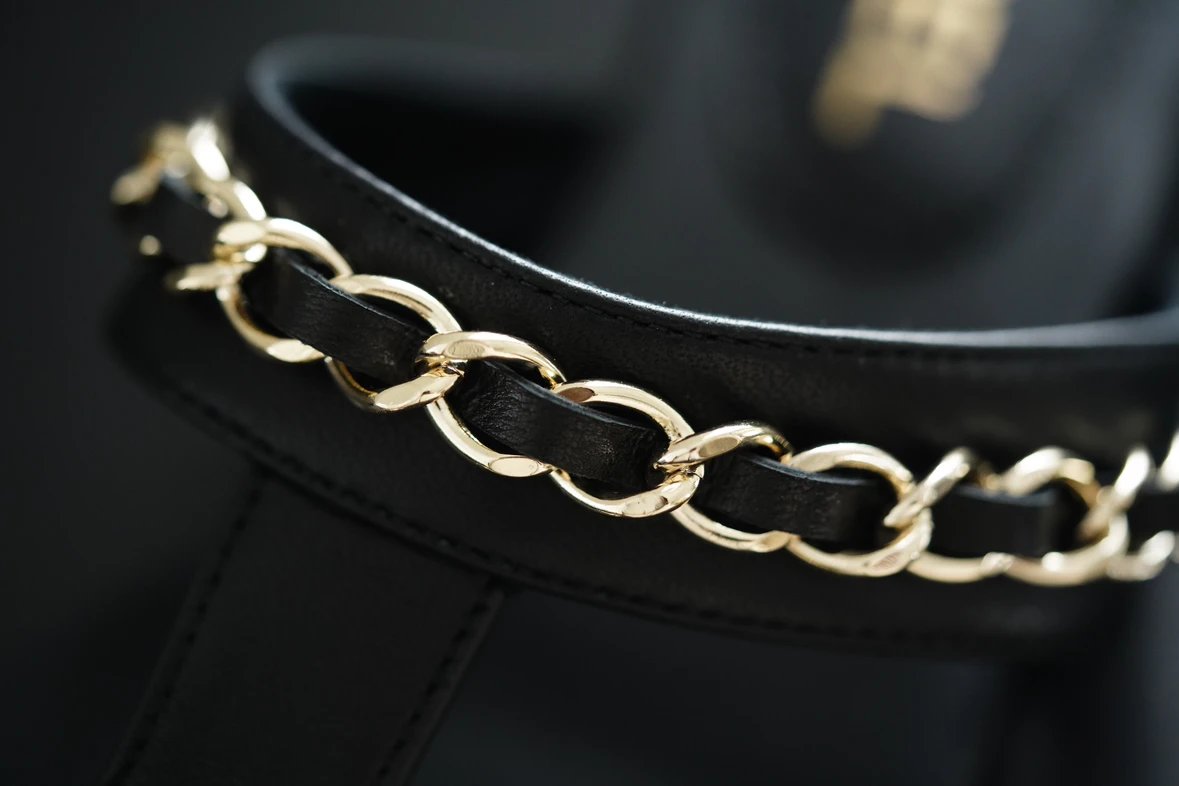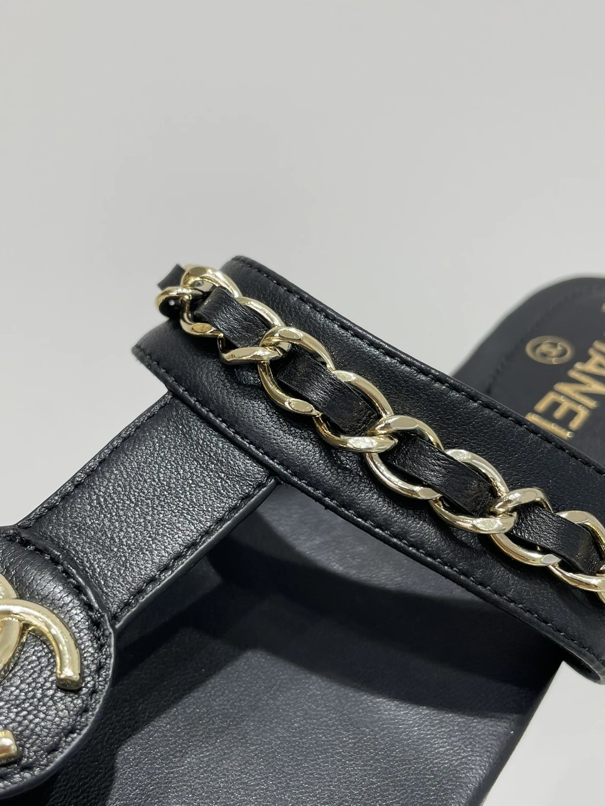 重磅推荐 25P链条夹脚拖鞋 黑金羊皮复古链条拖鞋