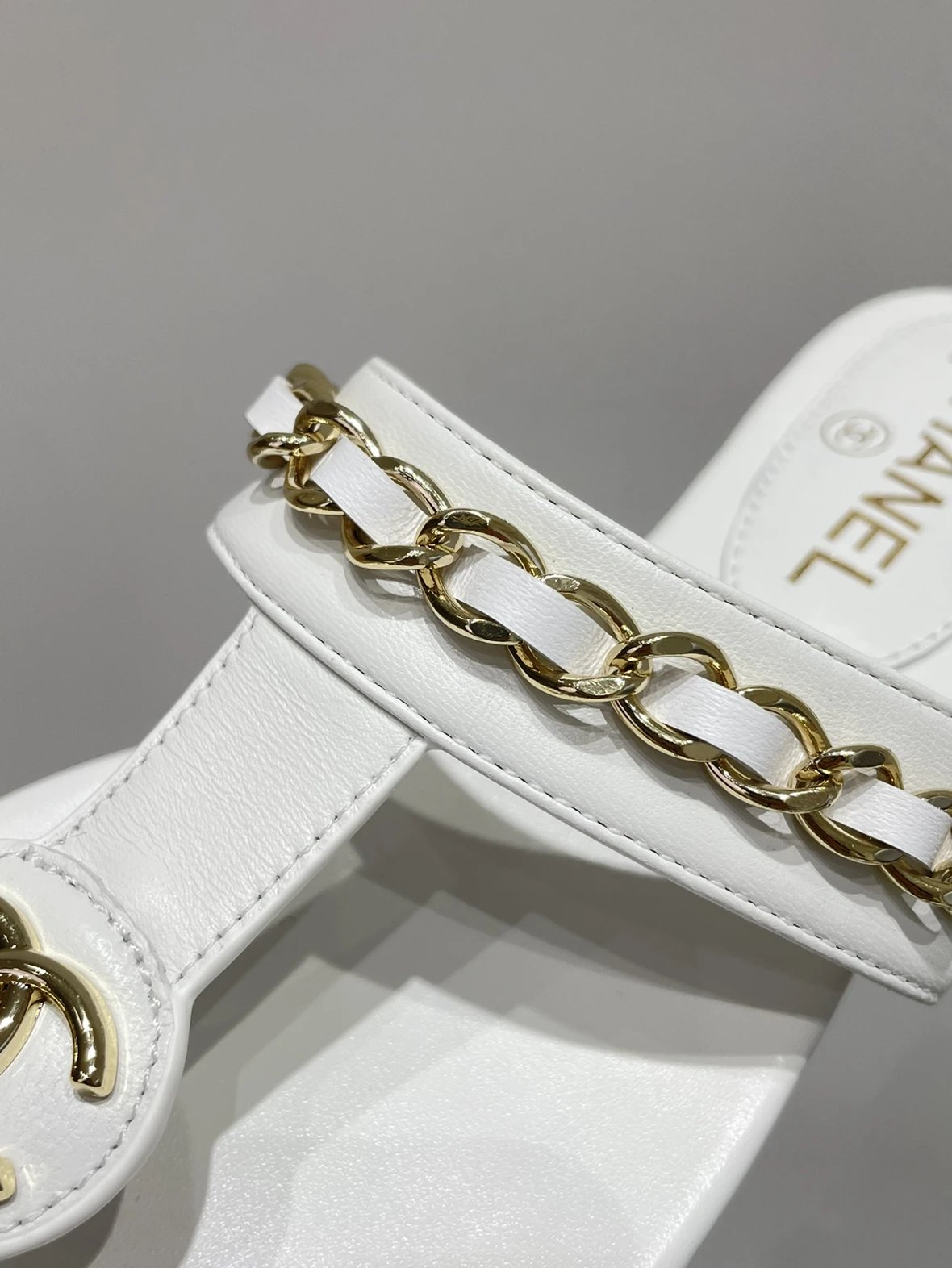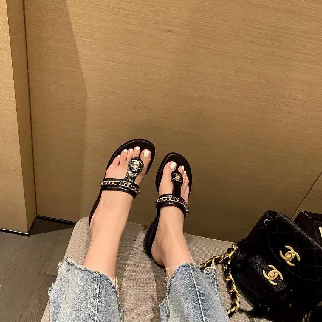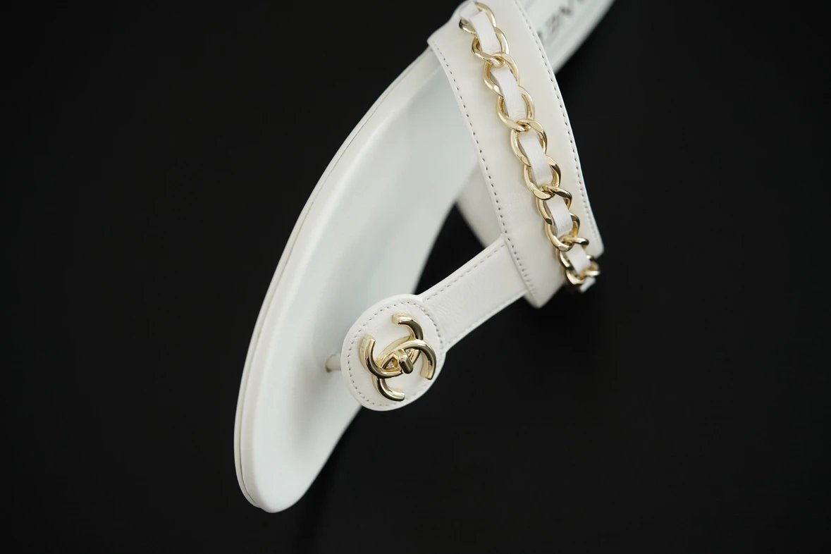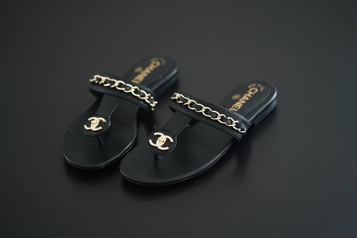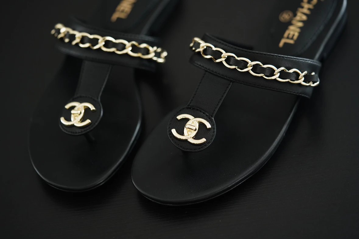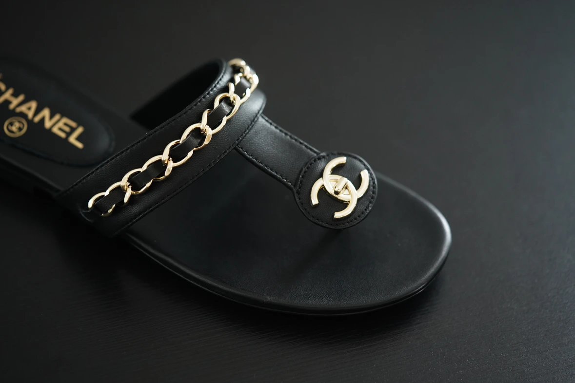 重磅推荐 25P链条夹脚拖鞋 黑金羊皮复古链条拖鞋