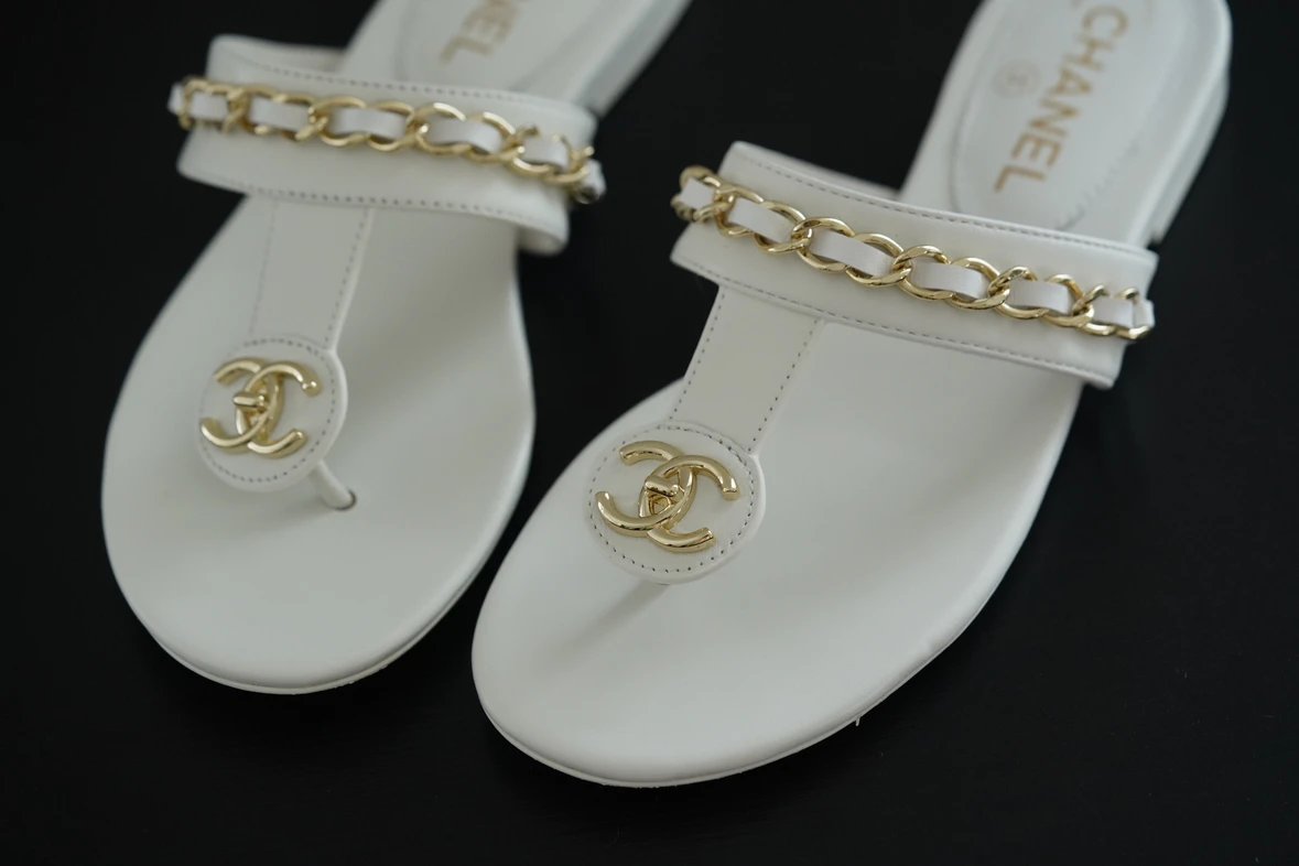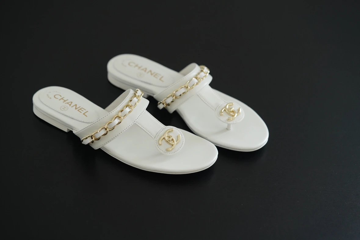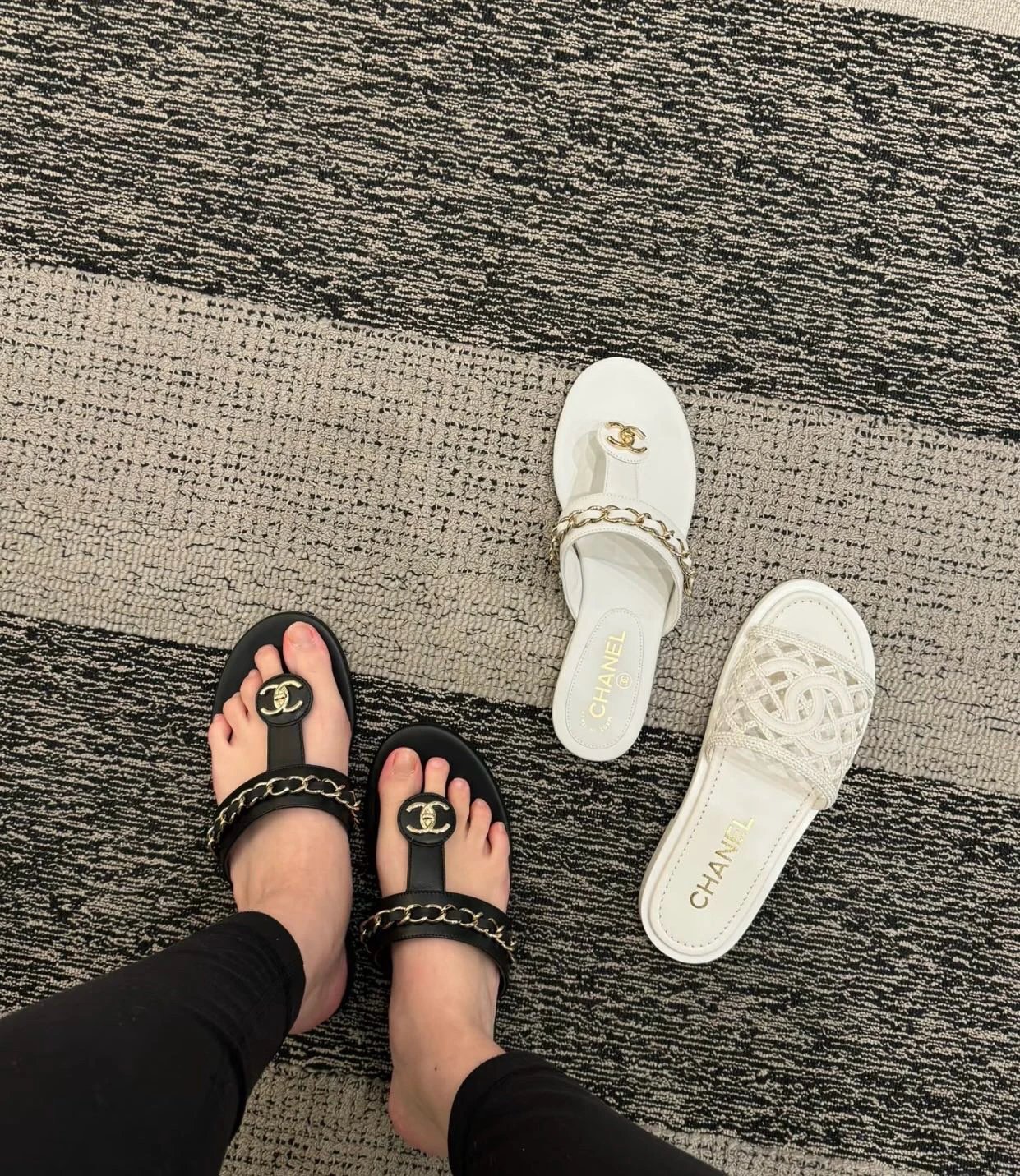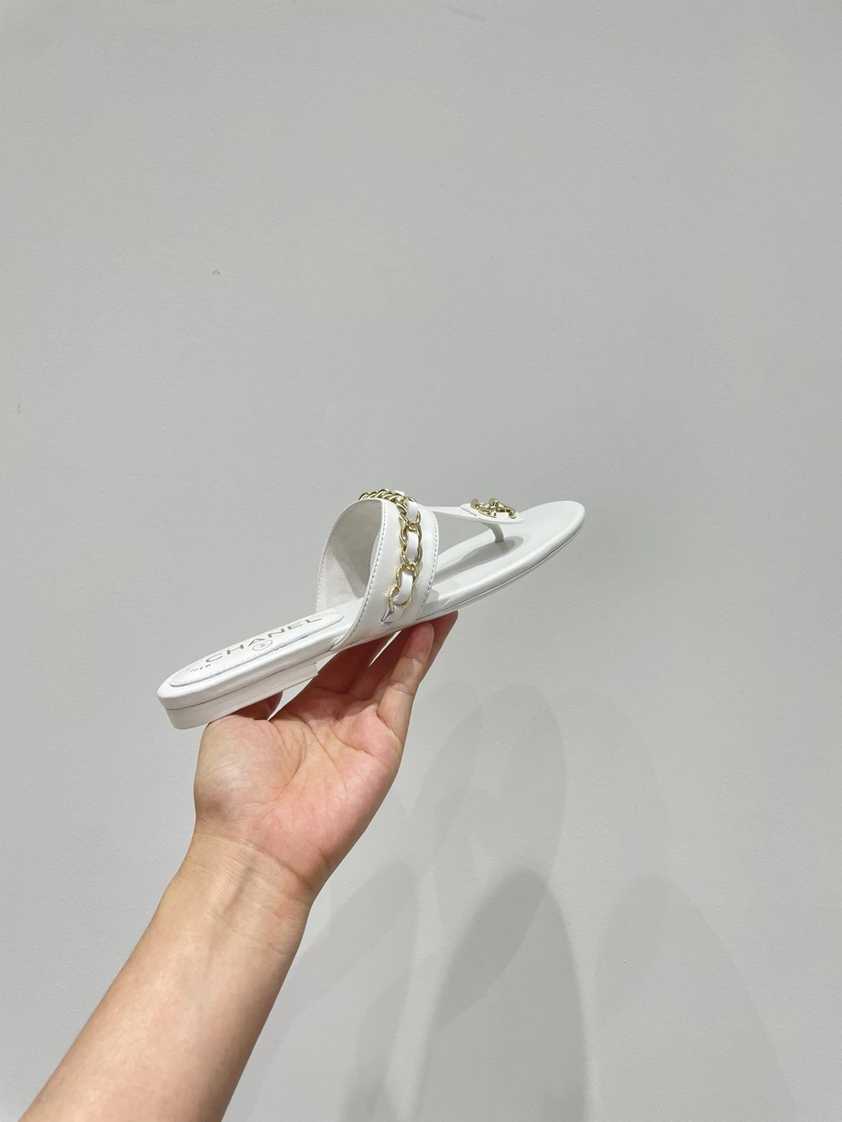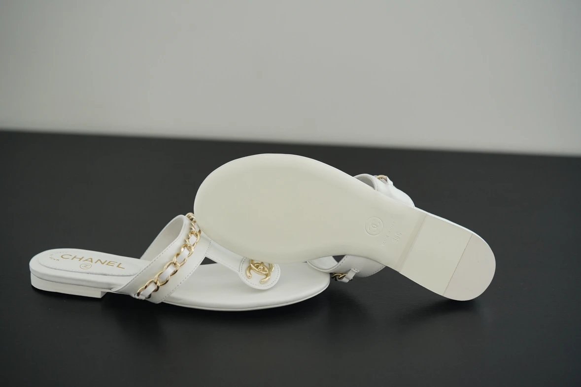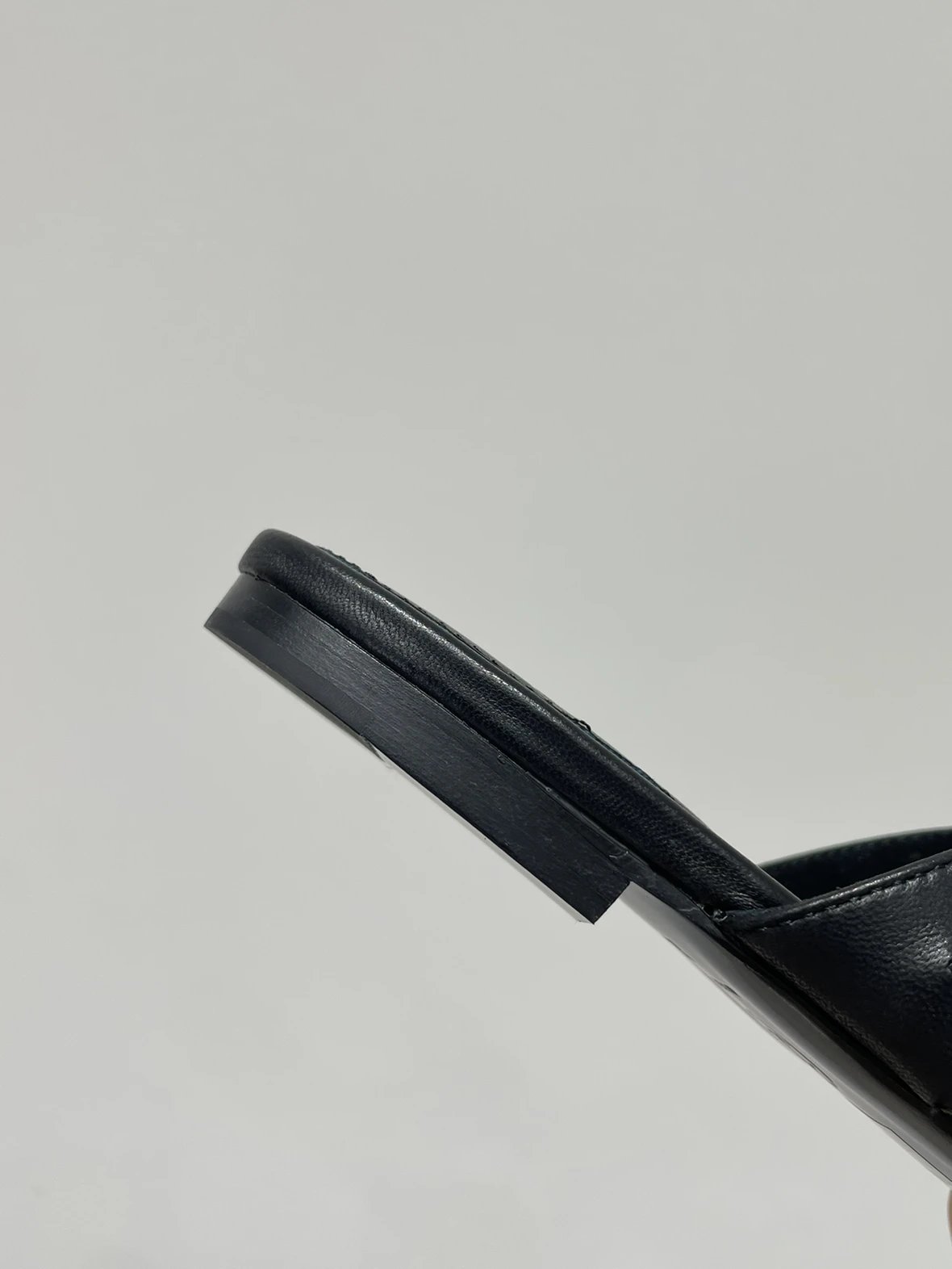 重磅推荐 25P链条夹脚拖鞋 黑金羊皮复古链条拖鞋