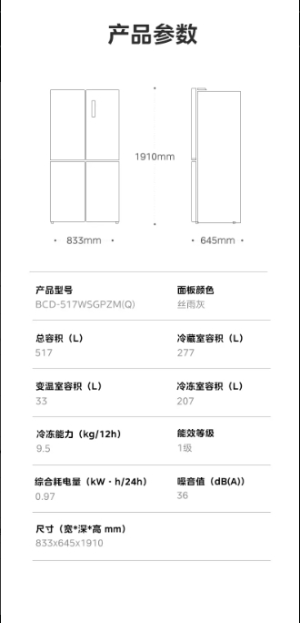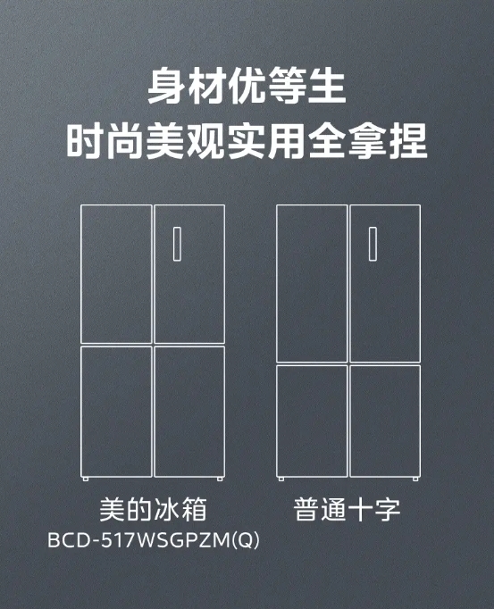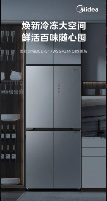美的冰箱(202789)四门风冷无霜一级能效双变频超薄净味大容量家用电冰箱 纯平全嵌BCD-517WSGPZM(Q)