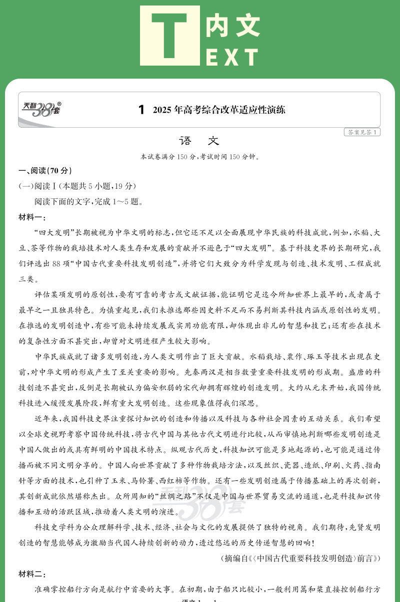 天利38套 2026高考模拟试题汇编 (新课标一卷)物理 化学 生物 政治 历史 地理