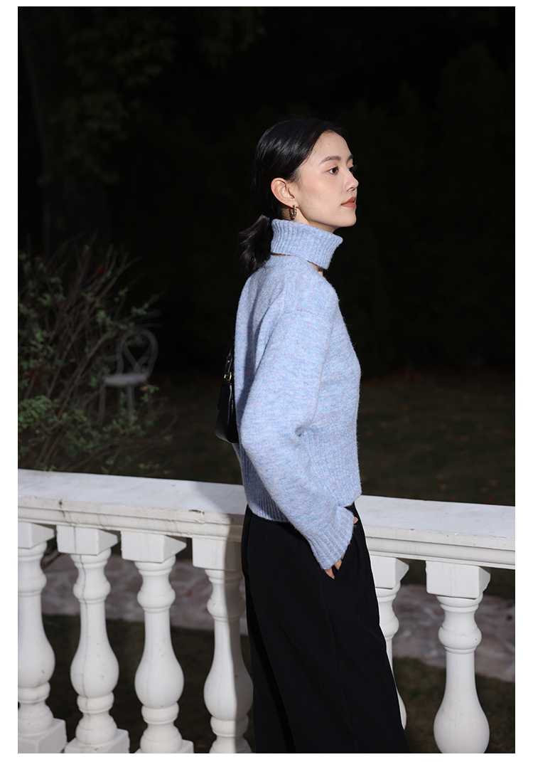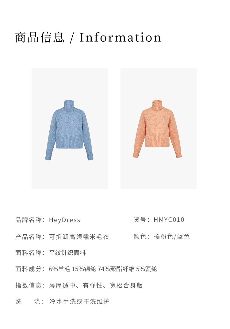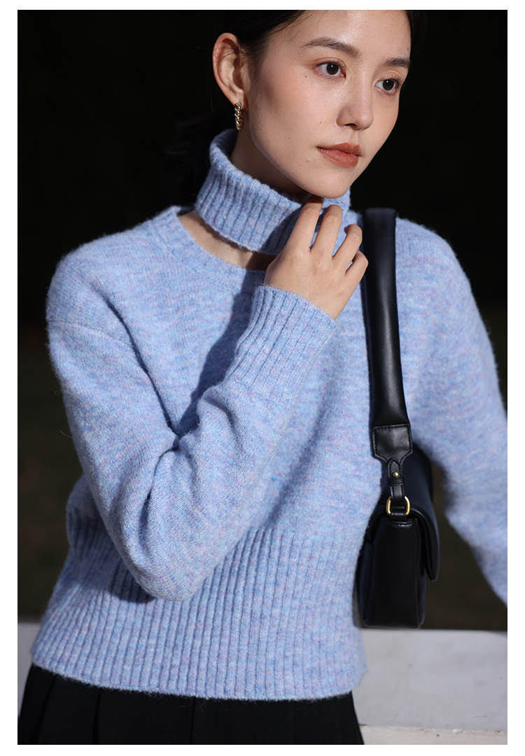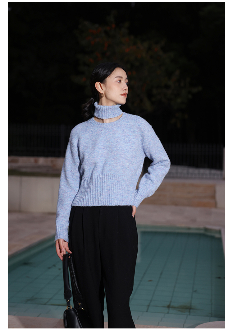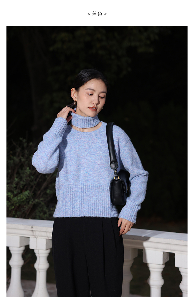 HeyDress法式高领毛衣女秋冬保暖针织衫可拆卸小众软糯短款上衣