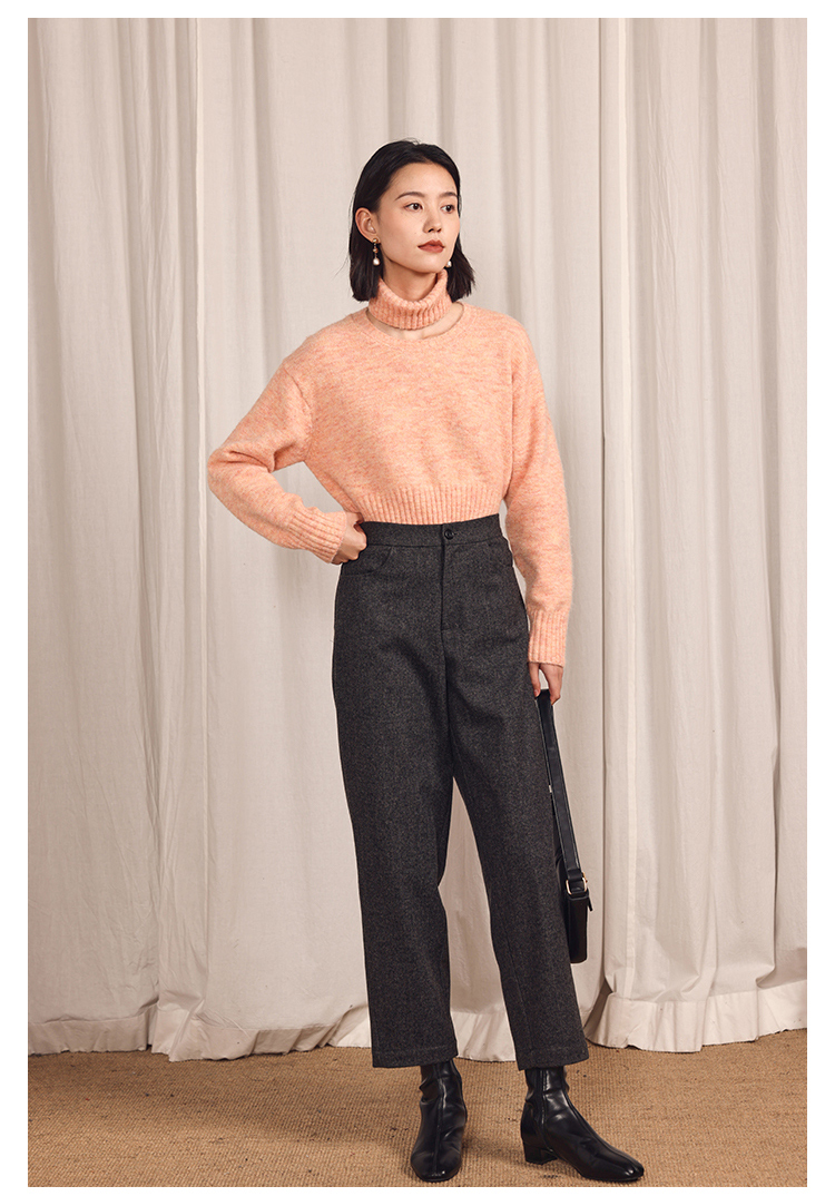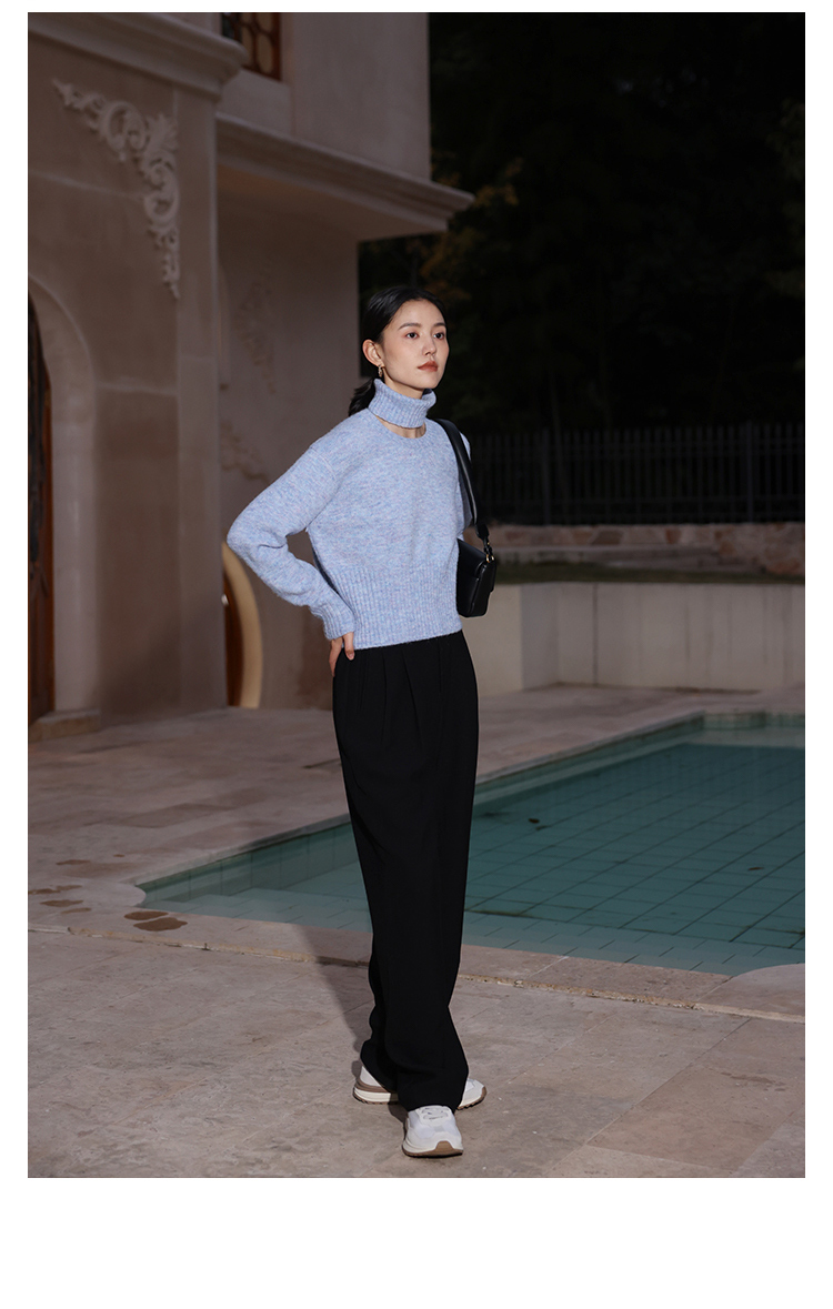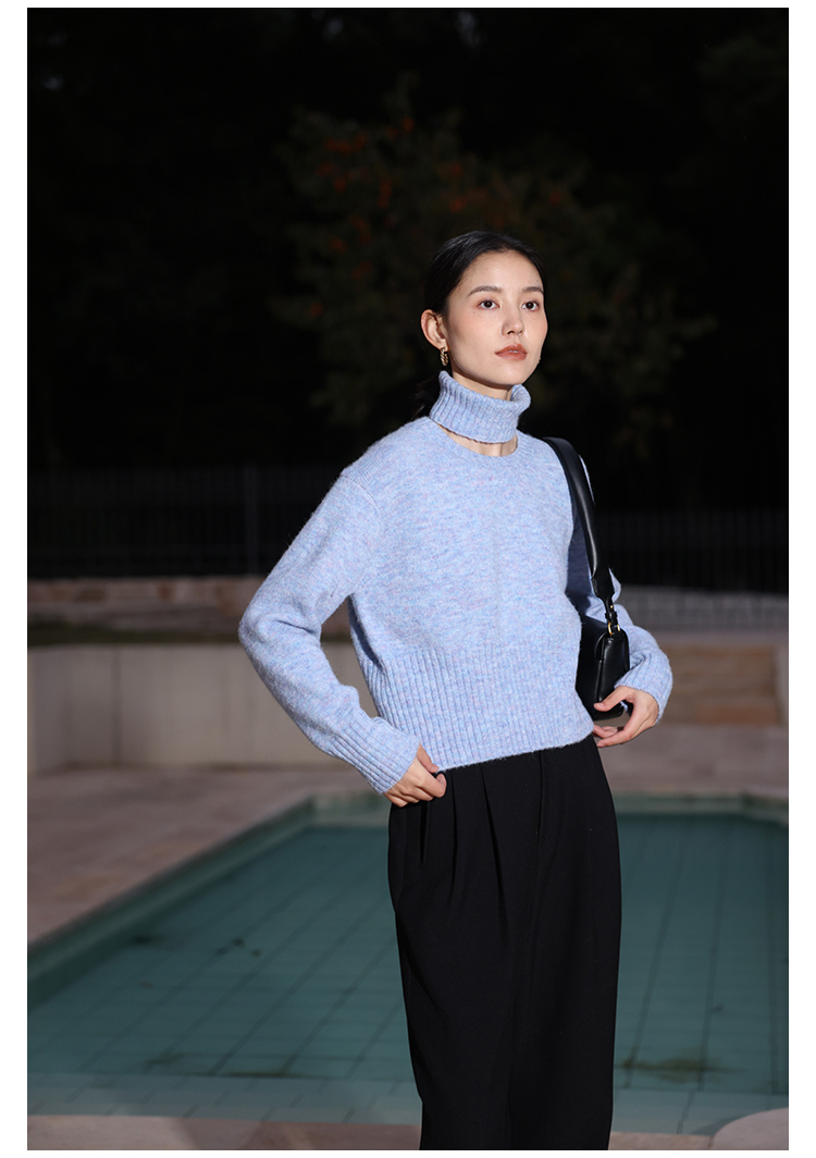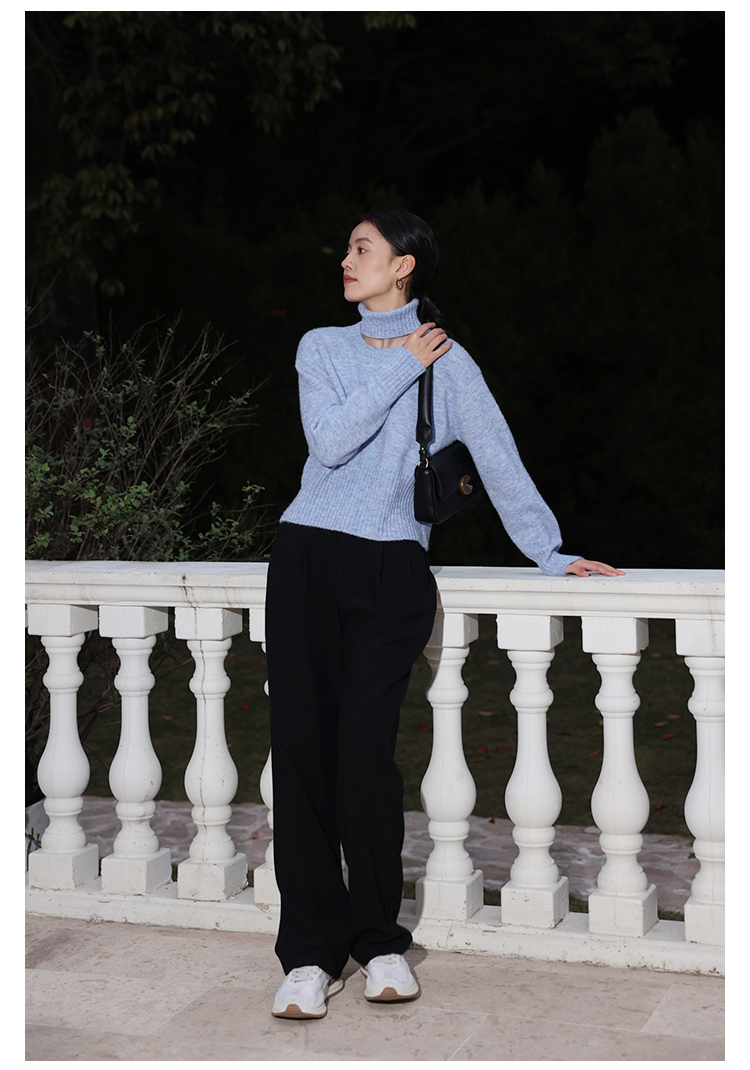 HeyDress法式高领毛衣女秋冬保暖针织衫可拆卸小众软糯短款上衣