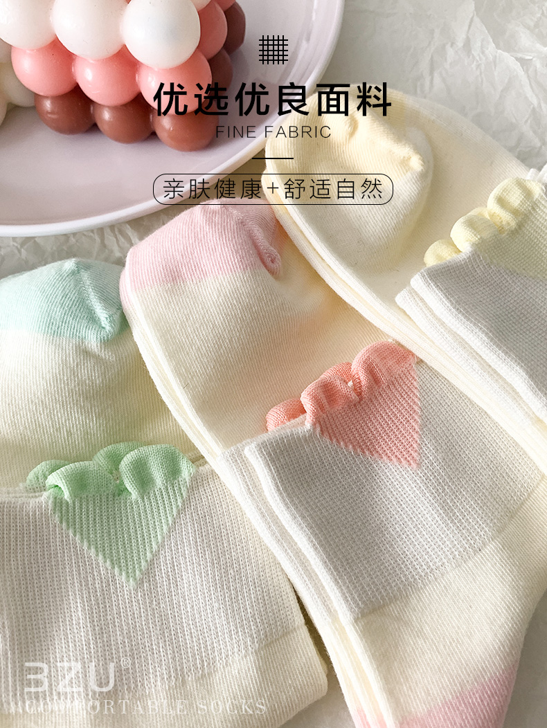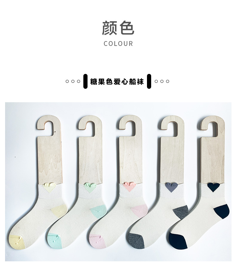足装秀24新品夏季女短袜棉质柔软透气糖果色爱心袜女短邦袜子潮袜