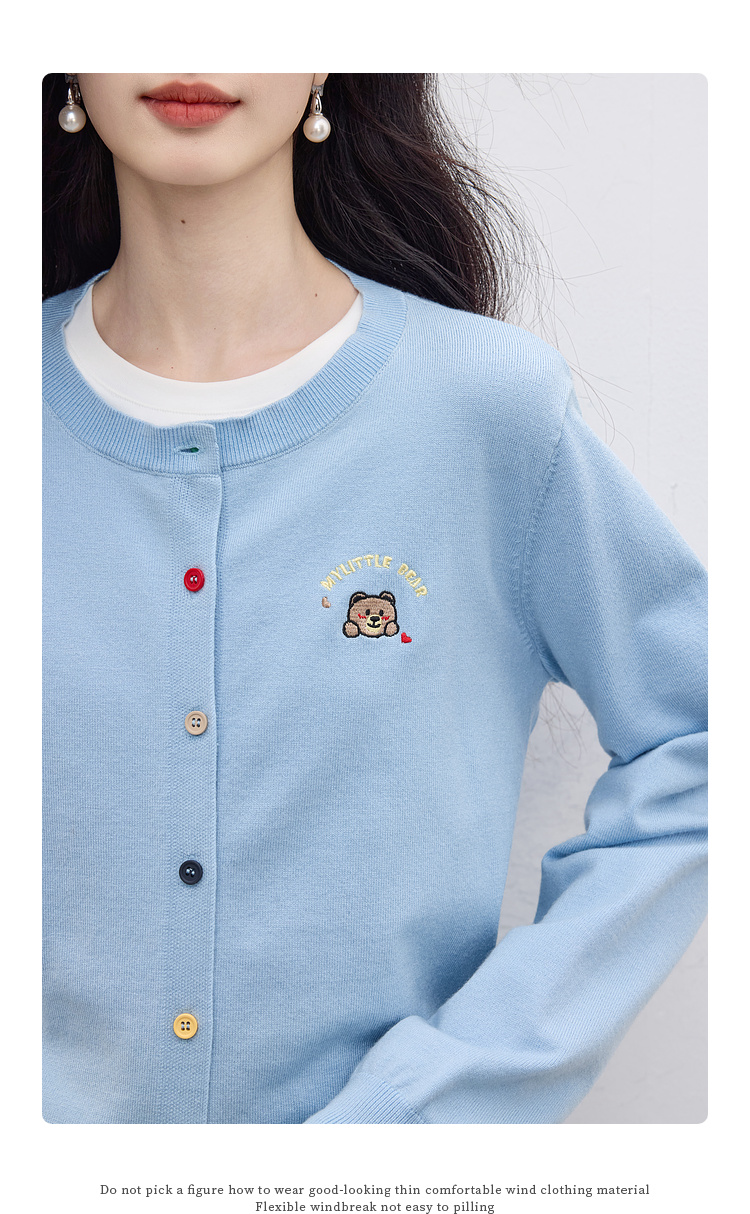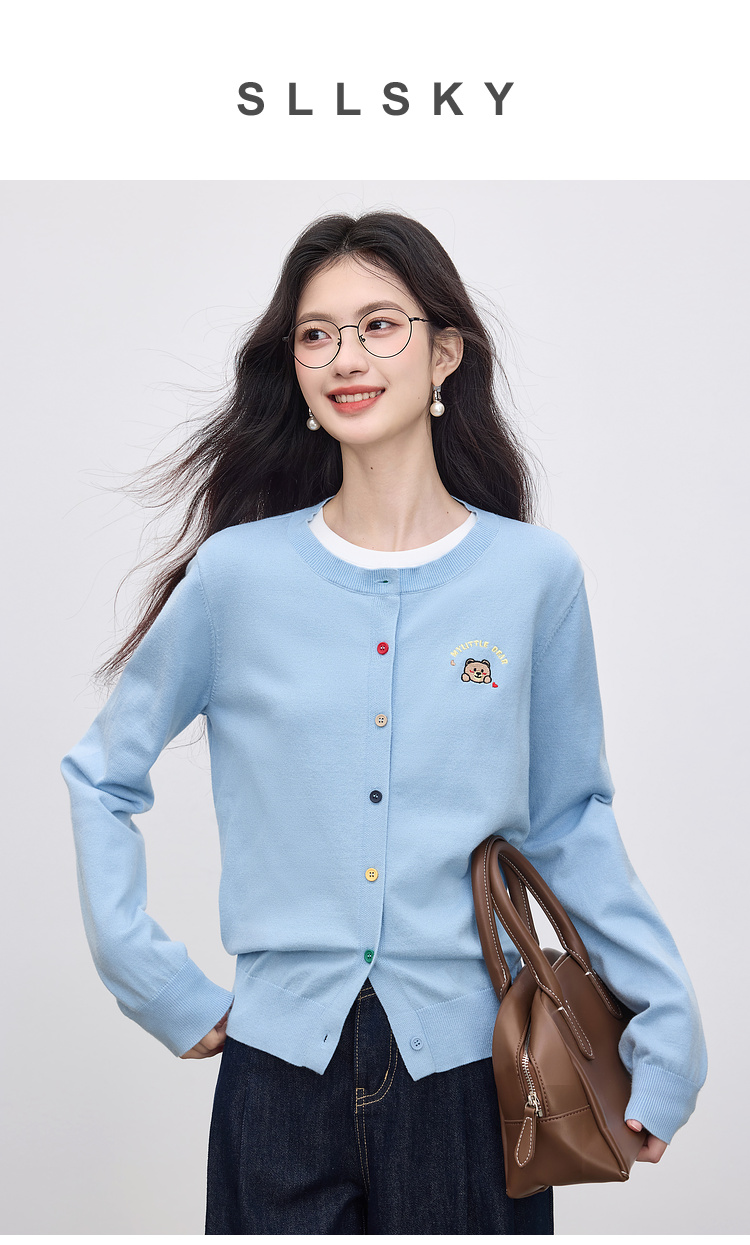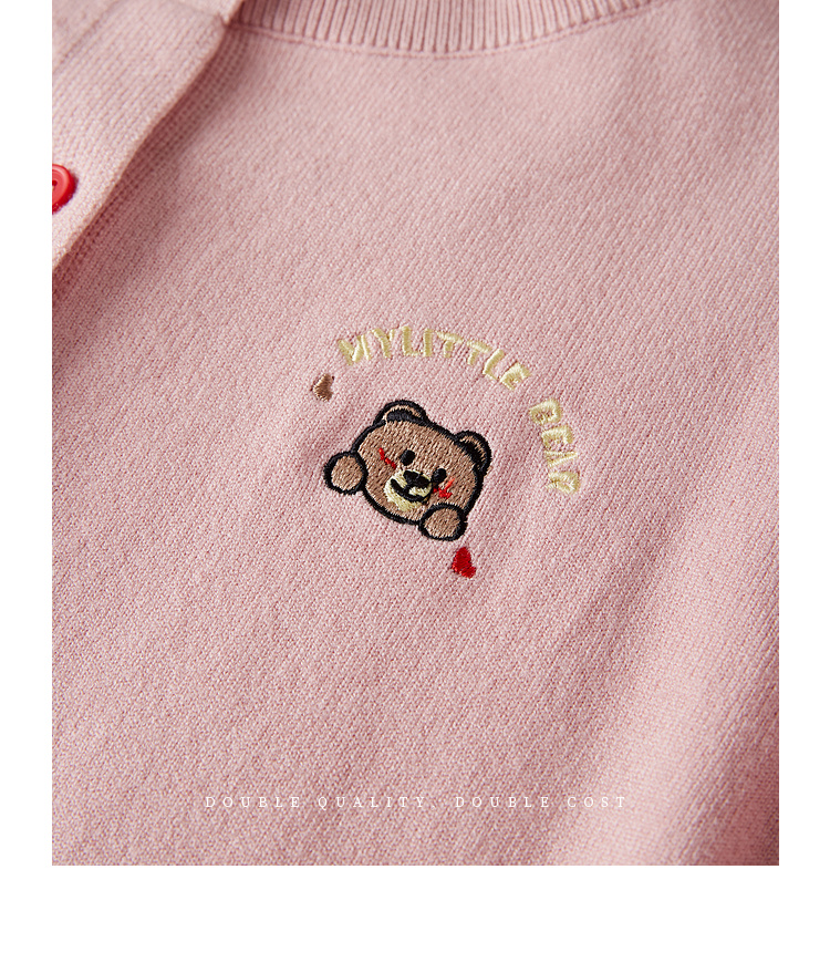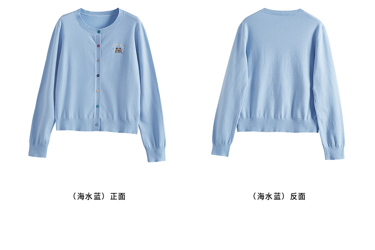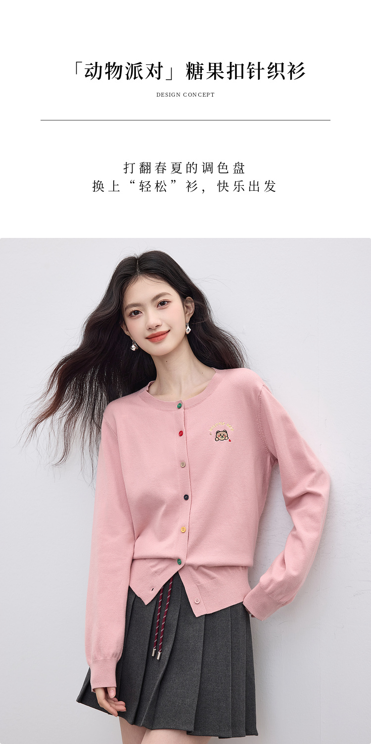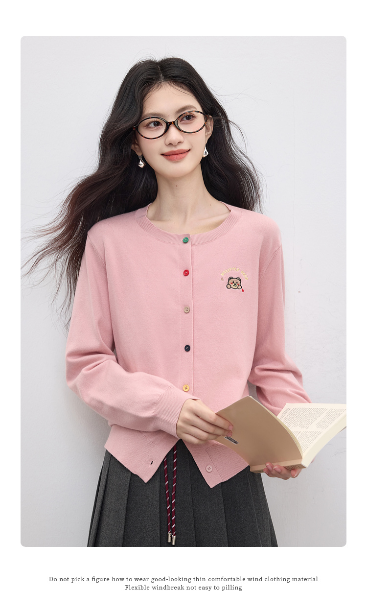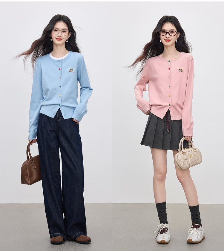 【专属特价】熙世界2025年秋季新款圆领针织开衫女长袖学院风卡通刺绣软糯上衣