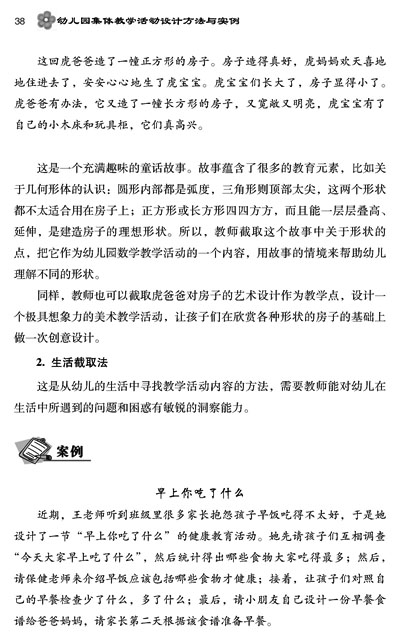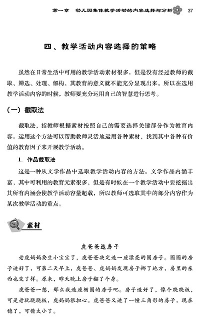 这本书展现了幼儿园集体教学活动设计的基本程序和有效方法,可以帮助新手幼儿教师尽快入门,也可以帮助老教师梳理固有的经验,提升教学技巧。