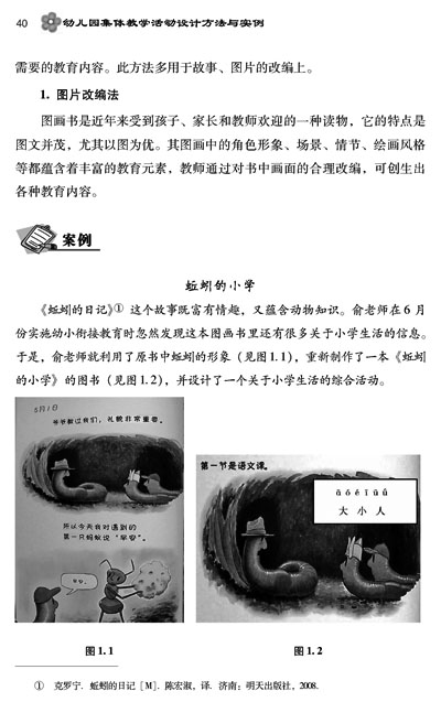这是一本给幼儿教师看的书。作者结合多年的一线教学经验,按照教学活动的构成要素阐述了幼儿园集体教学活动的设计技巧,包括教学活动的内容如何选择、目标如何定位、情境和材料如何设计、环节如何安排、指导策略有哪些等。说理加上大量的案例辅助说明,使这本书具有很强的实践指导价值。