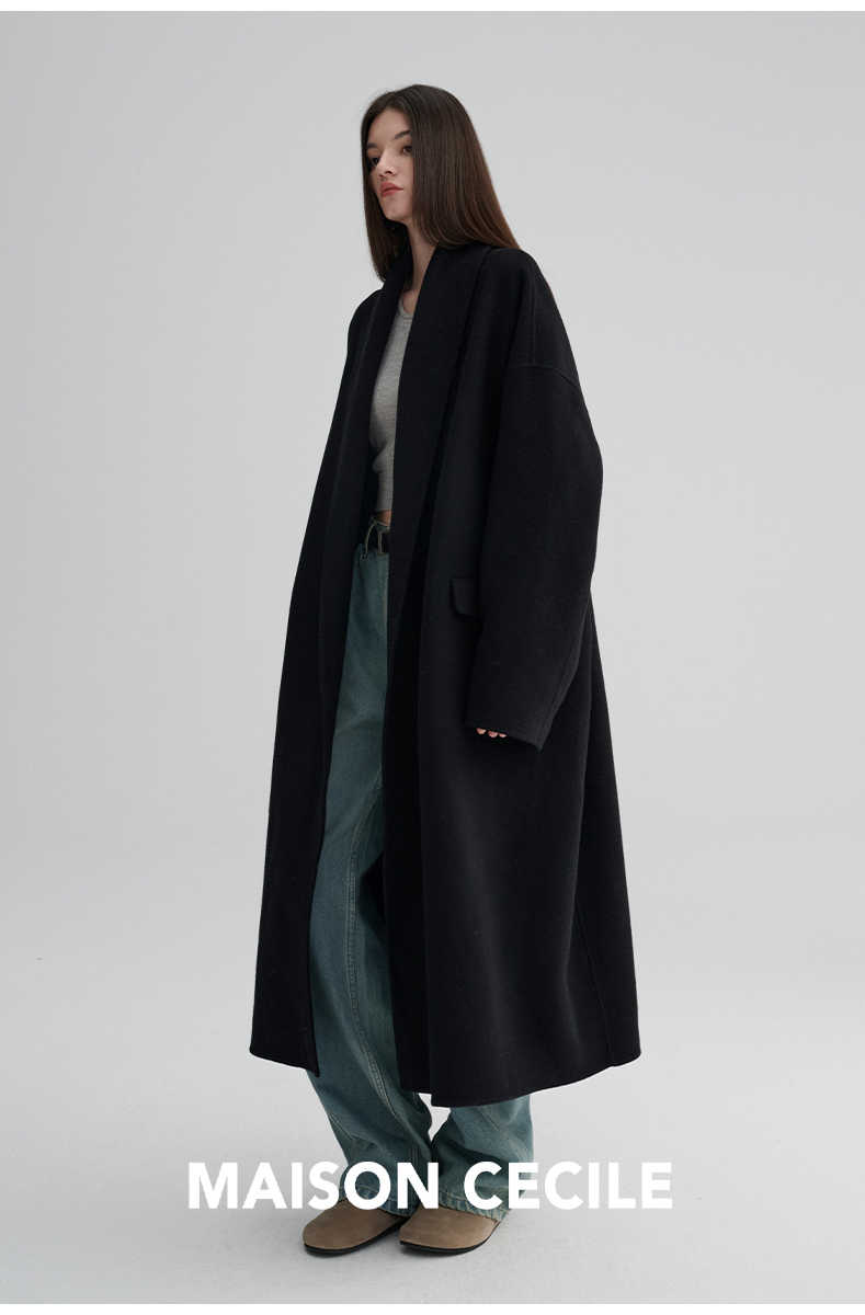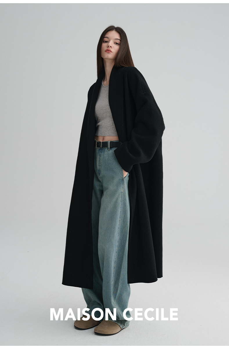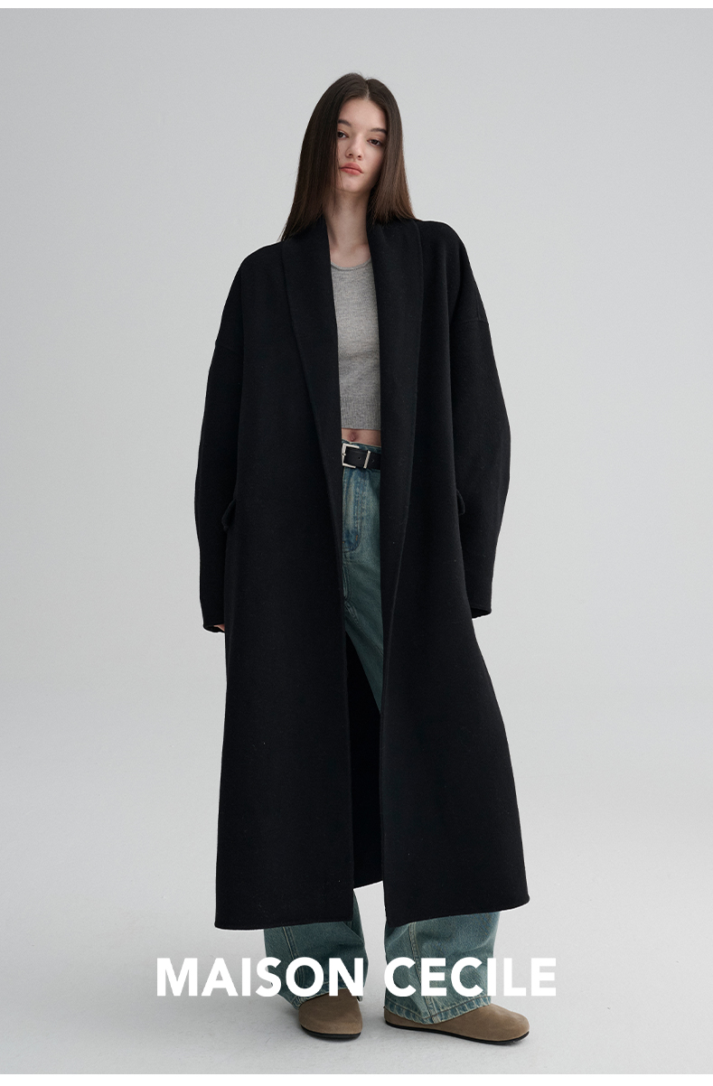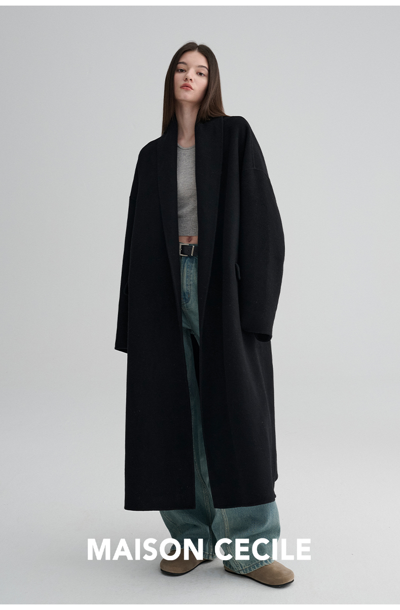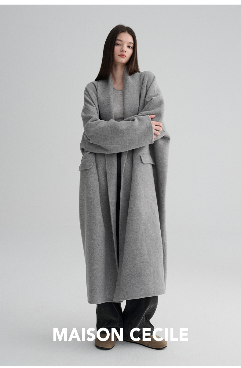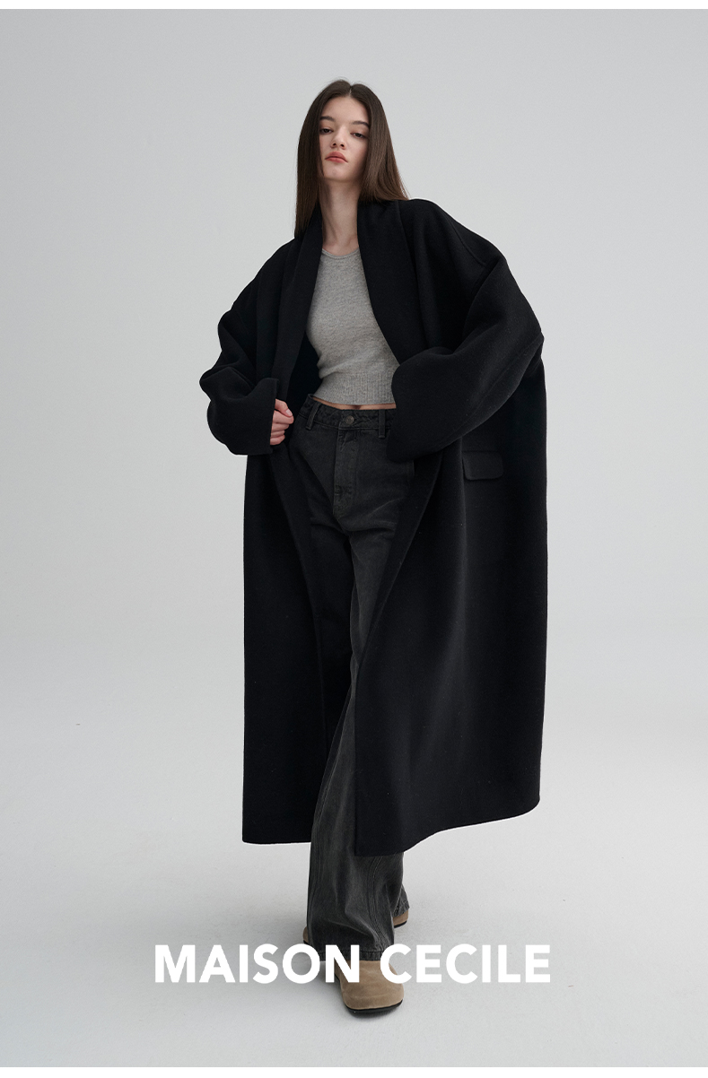 MAISON CECILE 两色|羊绒羊毛双面呢极简翻领茧型廓形长款大衣