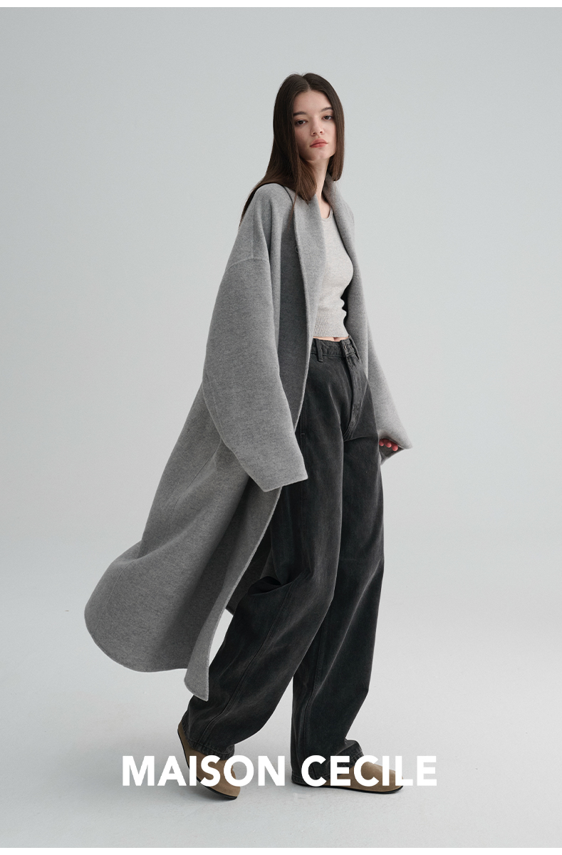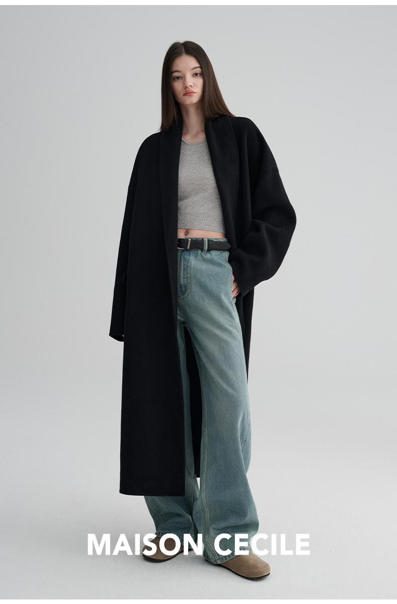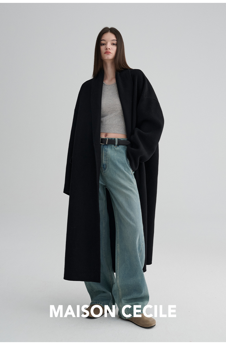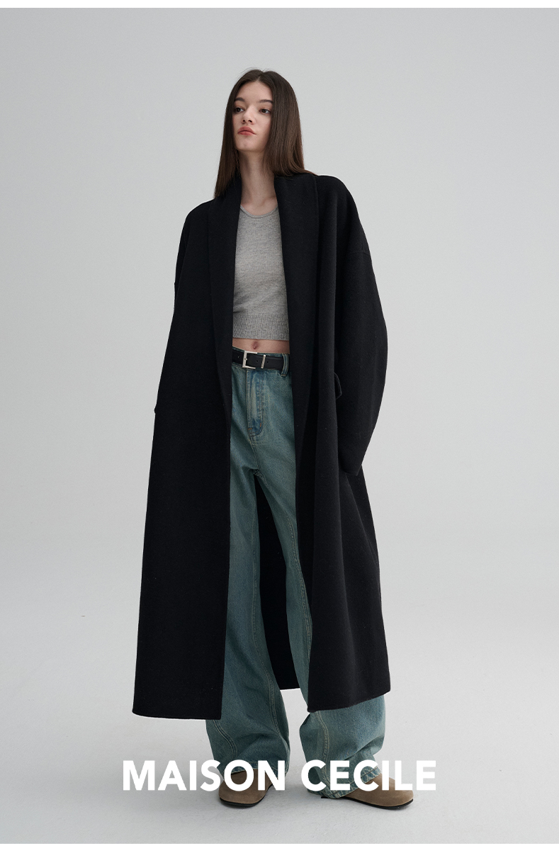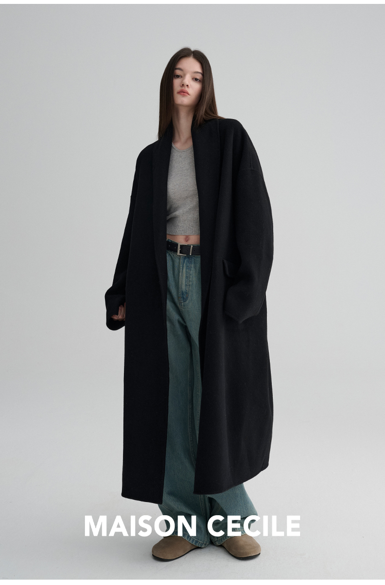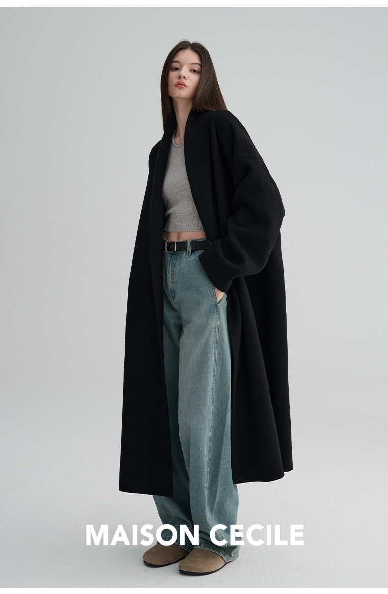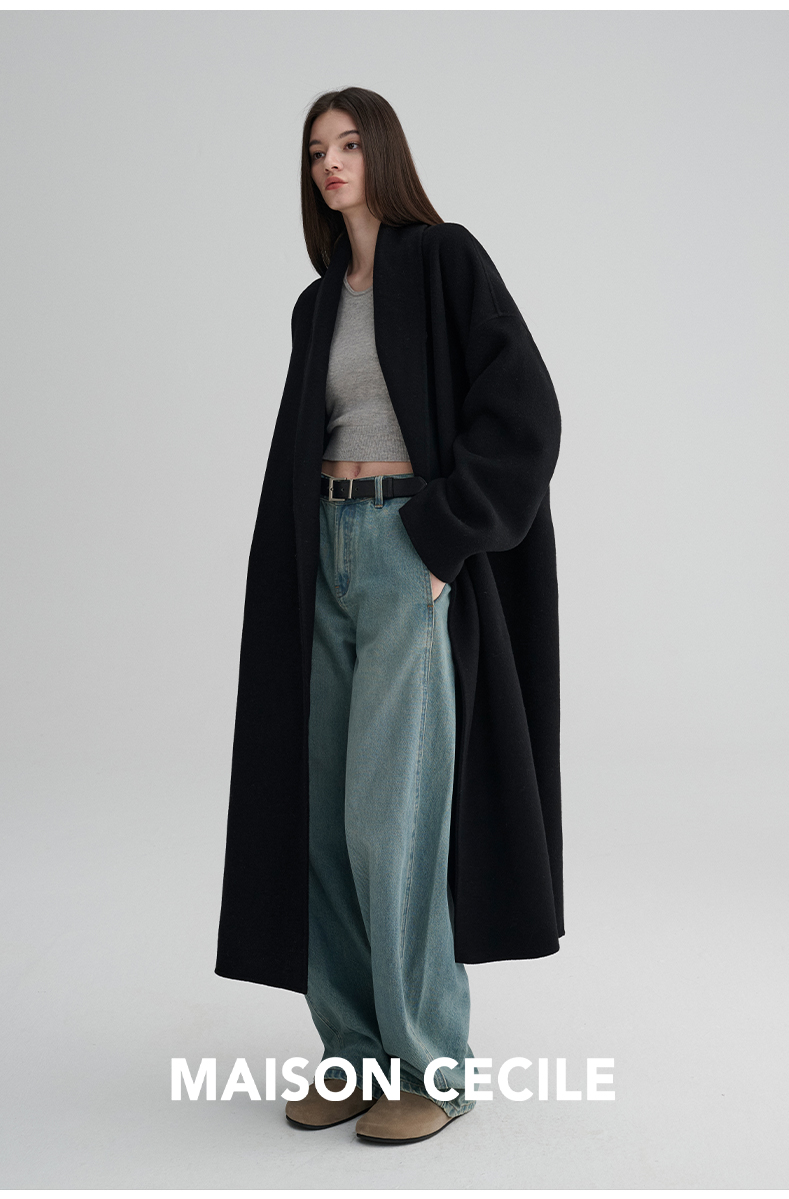 MAISON CECILE 两色|羊绒羊毛双面呢极简翻领茧型廓形长款大衣