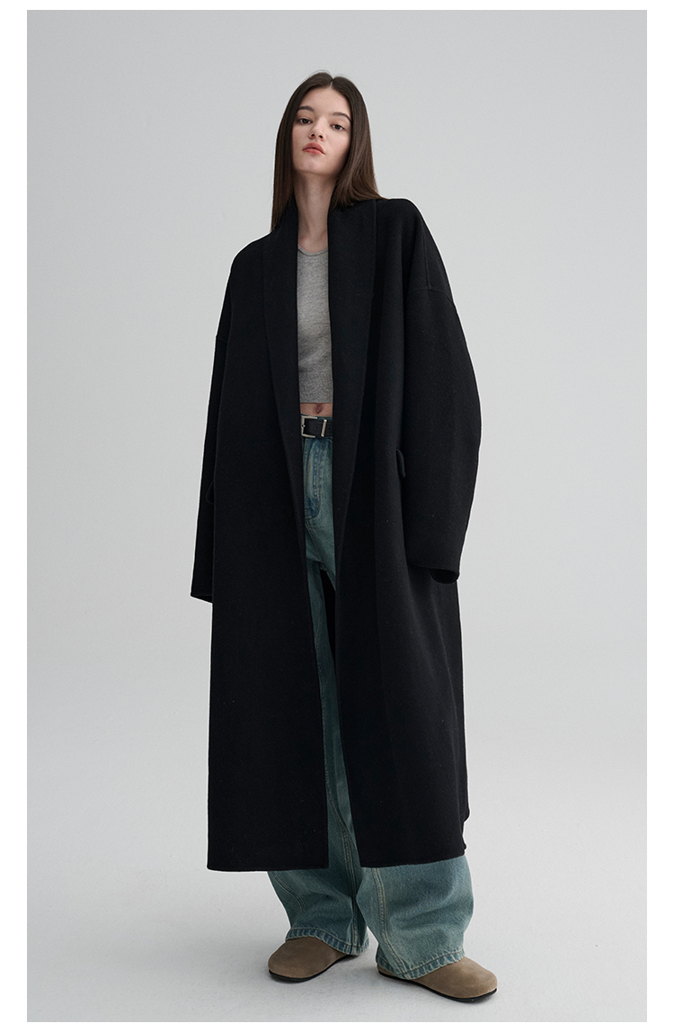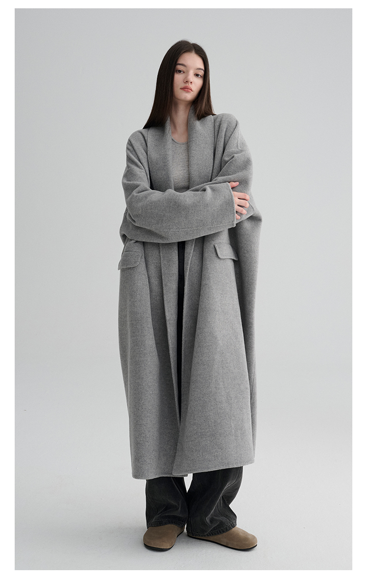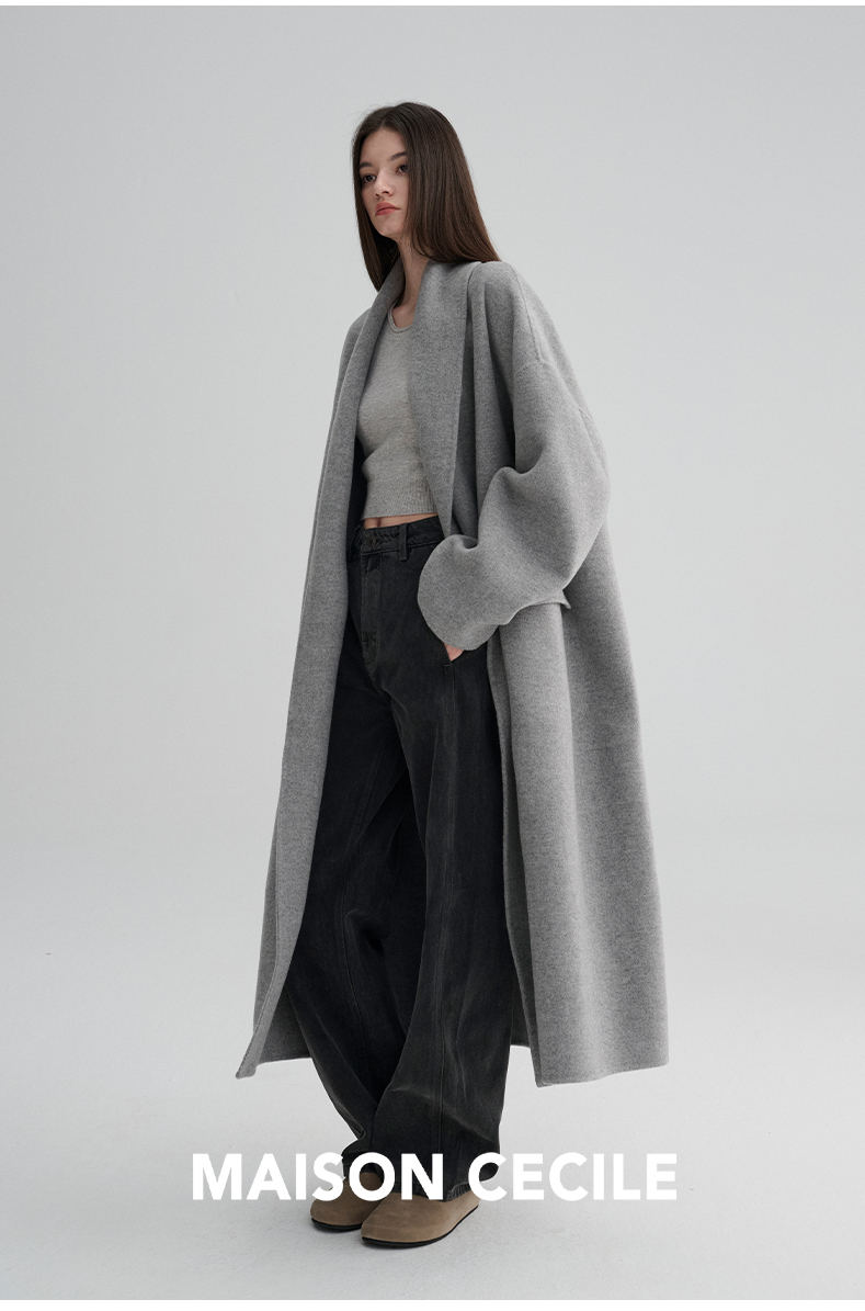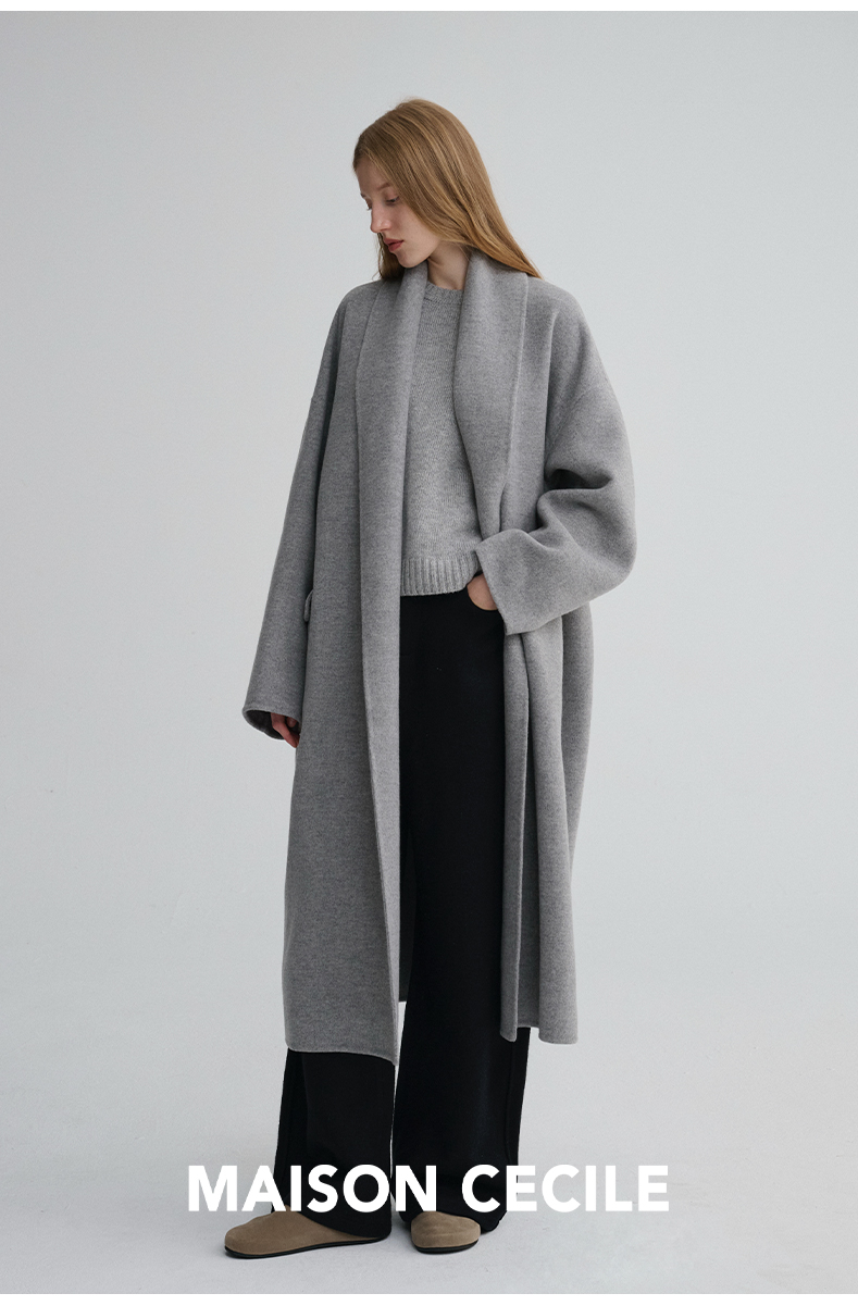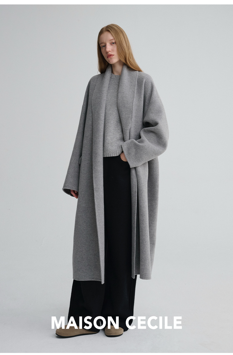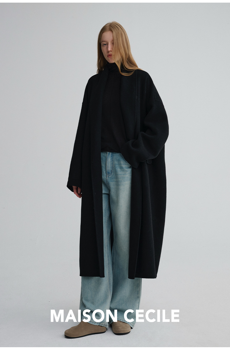 MAISON CECILE 两色|羊绒羊毛双面呢极简翻领茧型廓形长款大衣