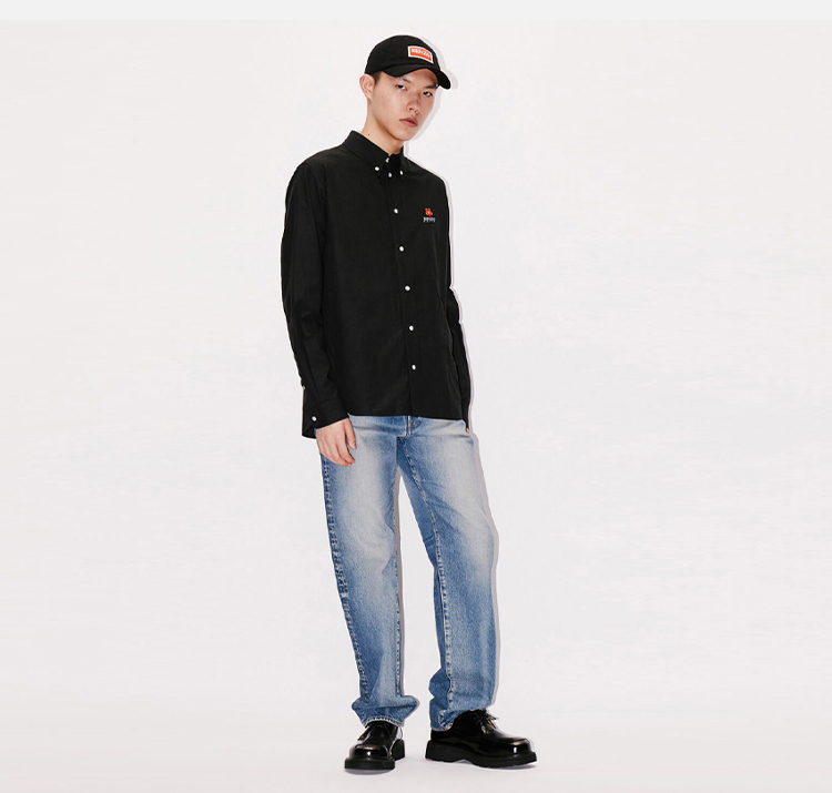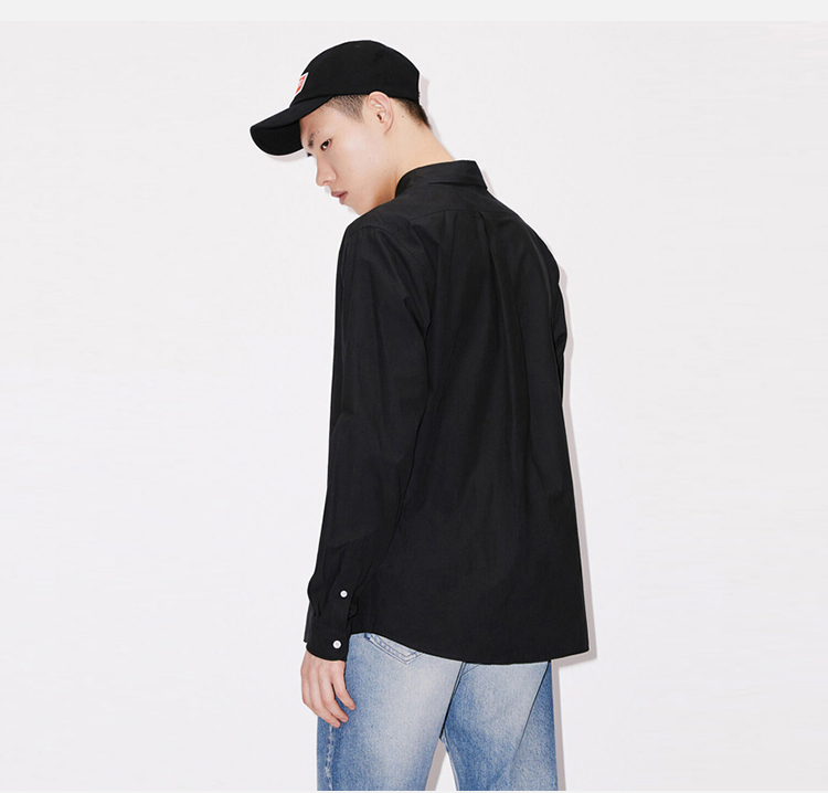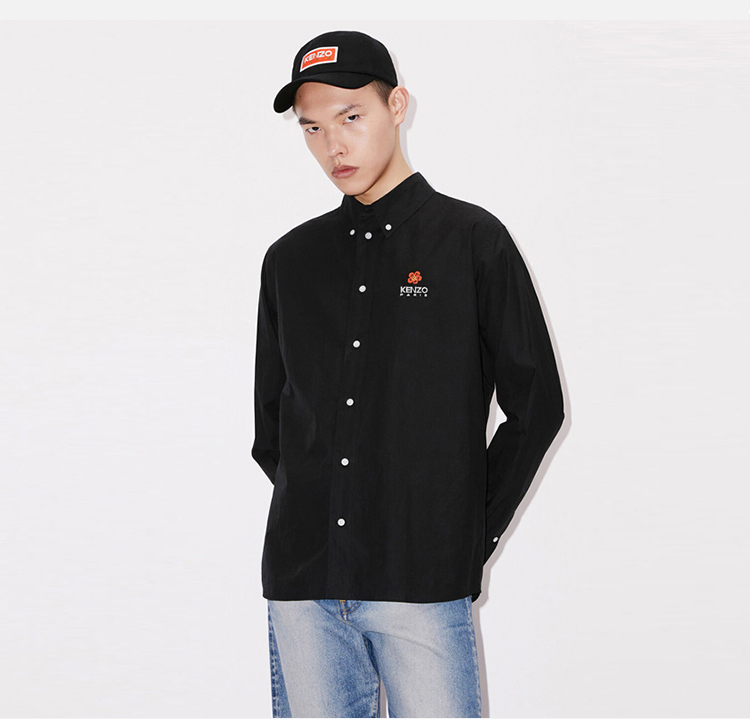 【一】KENZO 高田贤三 男士棉质BOKE花朵刺绣徽标系列长袖衬衫 黑色 FD55 CH410 9LH 99