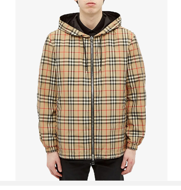 【一】BURBERRY 巴宝莉 男士双面复古格纹连帽夹克 格子/黑色 8027097 A7028
