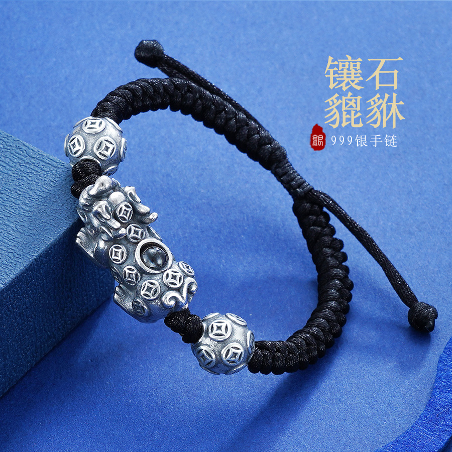 子佩集S999银【镶石貔貅】银手链【CS0101】仿古2201